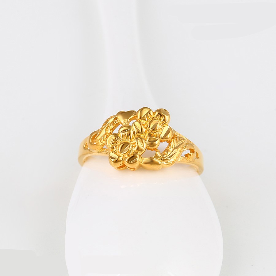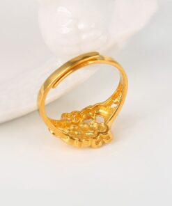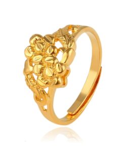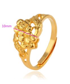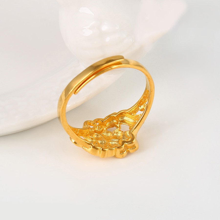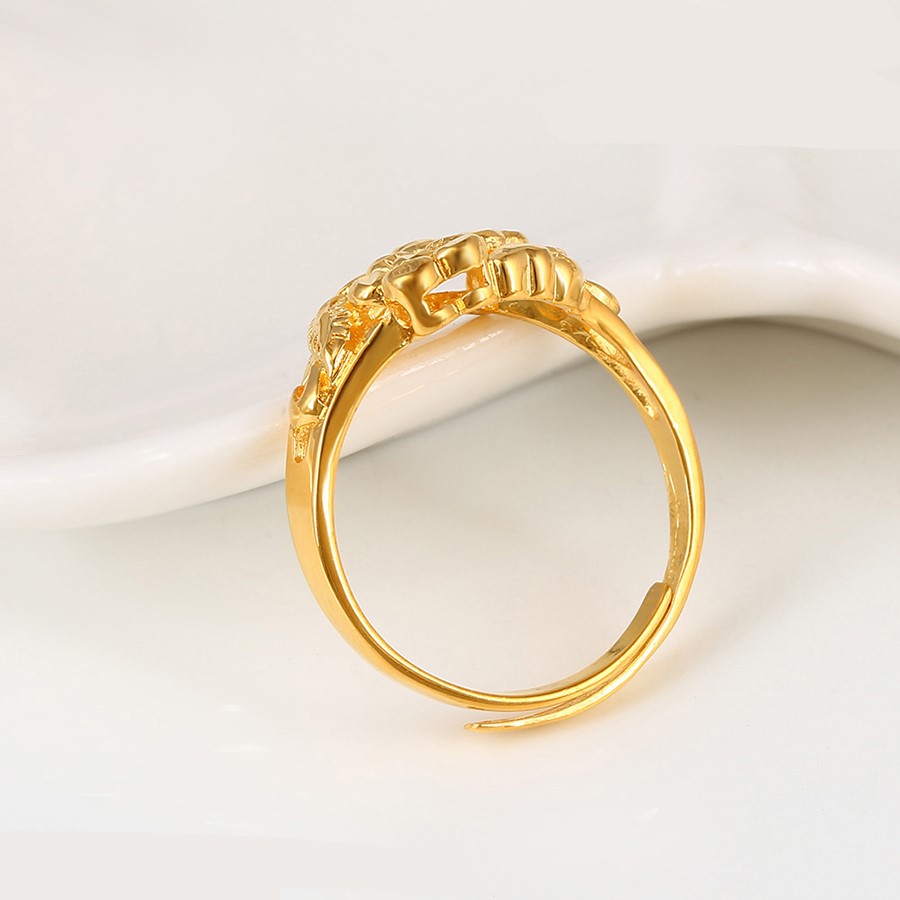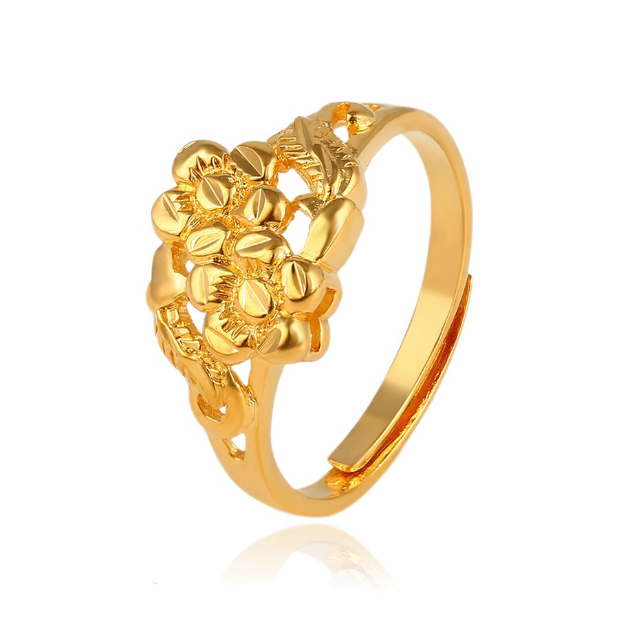 Elegante anillo elaborado en aleación de Cu, con doble enchapado de oro de 24k, lindo diseño floral tallado, anillo graduable para talla 17,18 y 19..