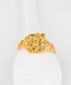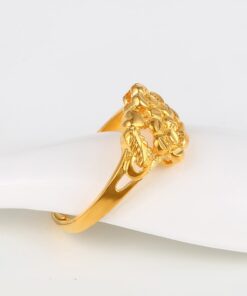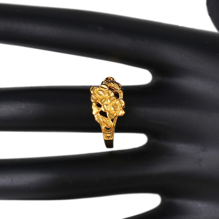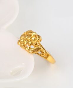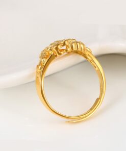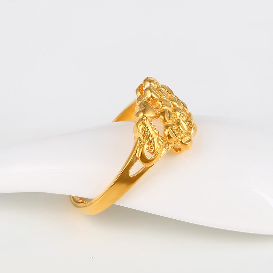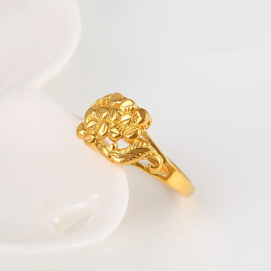 Elegante anillo elaborado en aleación de Cu, con doble enchapado de oro de 24k, lindo diseño floral tallado, anillo graduable para talla 17,18 y 19..