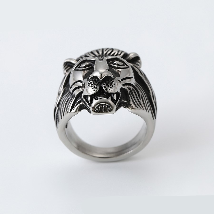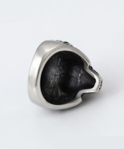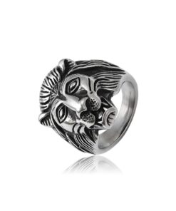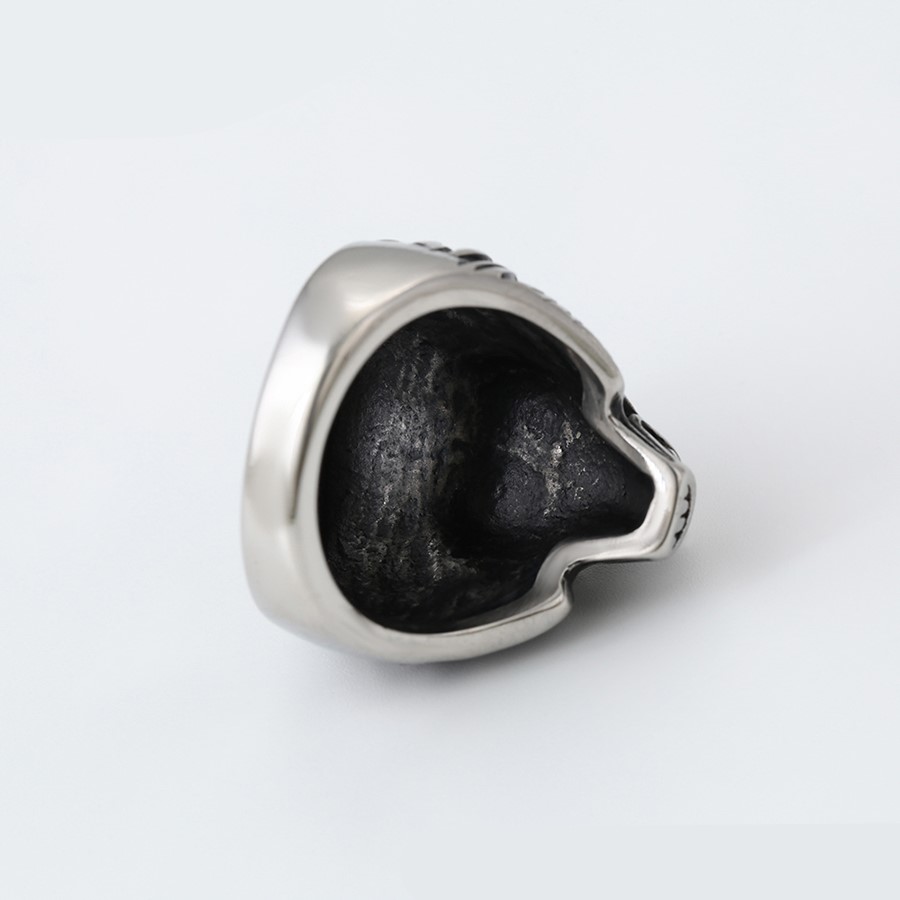 Robusto anillo aro para varón, elaborado en acero quirúrgico, chapado en plata de ley 925, diseño tallado exclusivo.