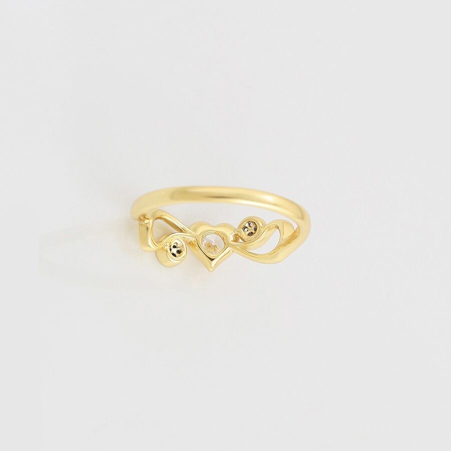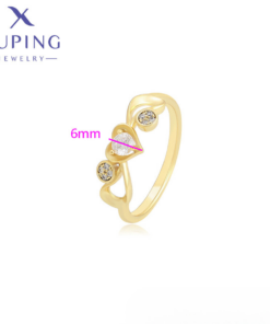 Lindo anillo elaborado en acero, con doble enchape de oro dorado de 18k, e incrustación de cristal.