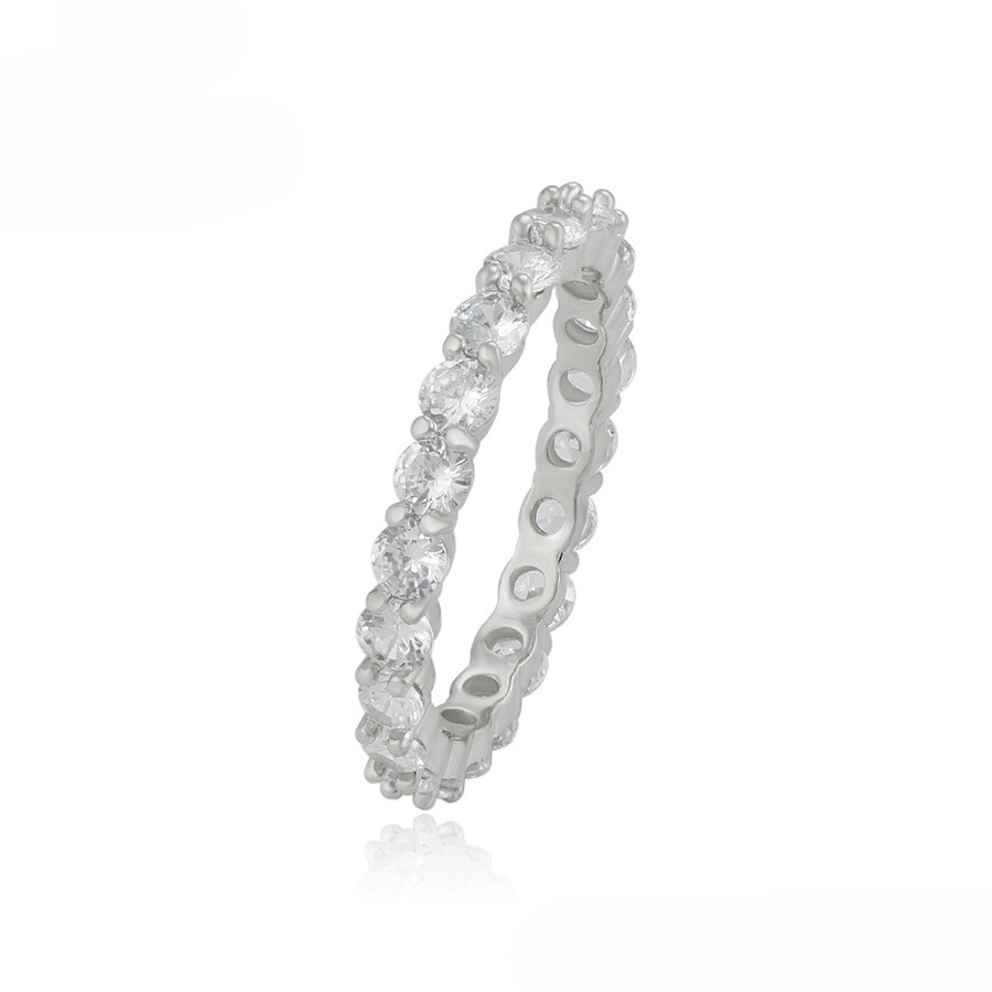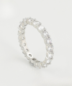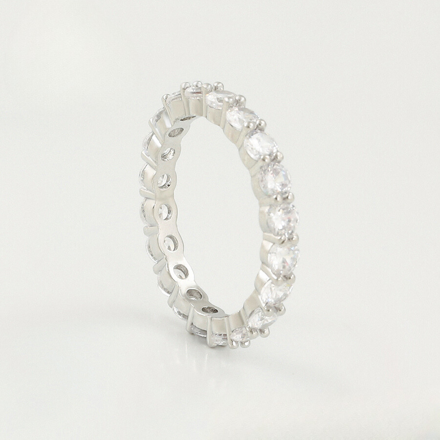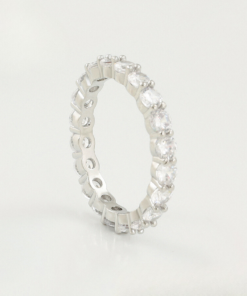 Elegante anillo, elaborado en acero, con doble enchape de plata 925, e incrustación de cristal.