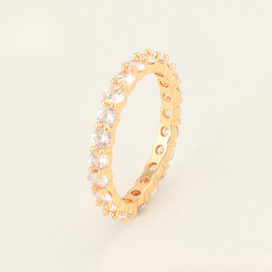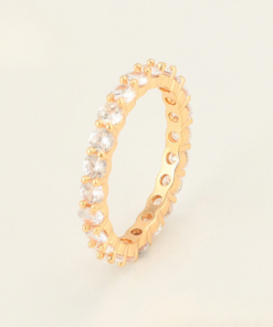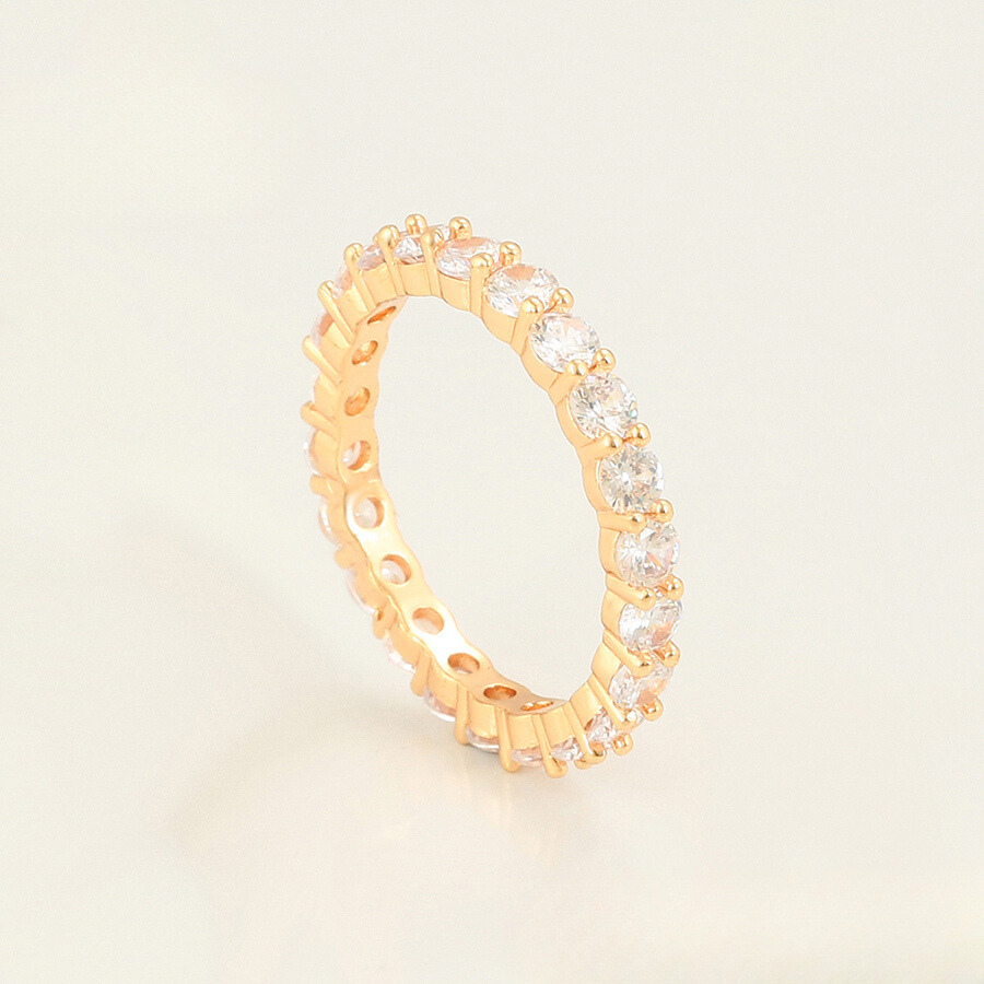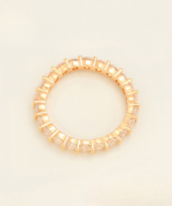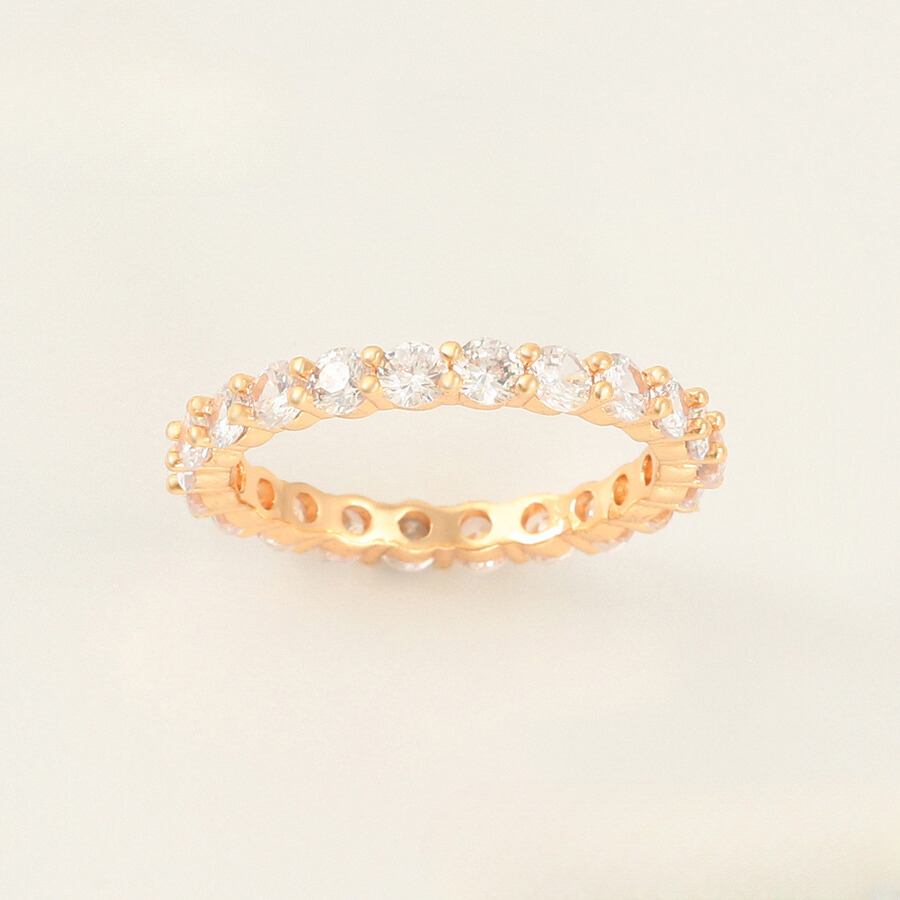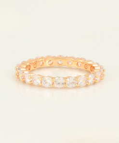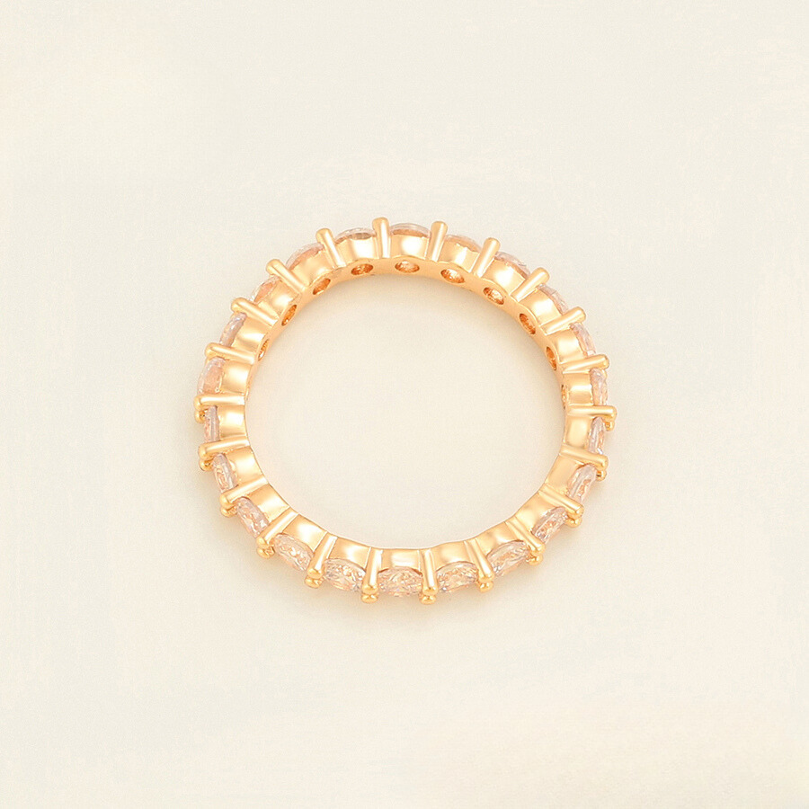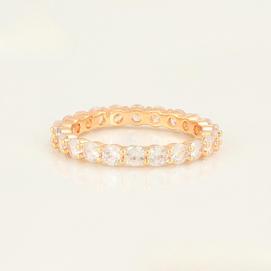 Elegante anillo, elaborado en acero quirúrgico, con doble enchape de oro rosé de 18k,e incrustación de cristal.