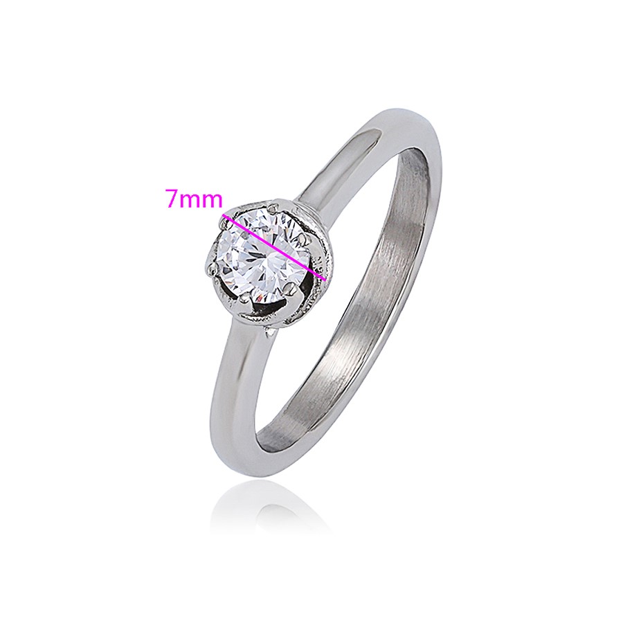 Elegante anillo elaborado en acero quirúrgico 316L, con doble baño de plata de ley 925, e incrustación de cristal swarovski.