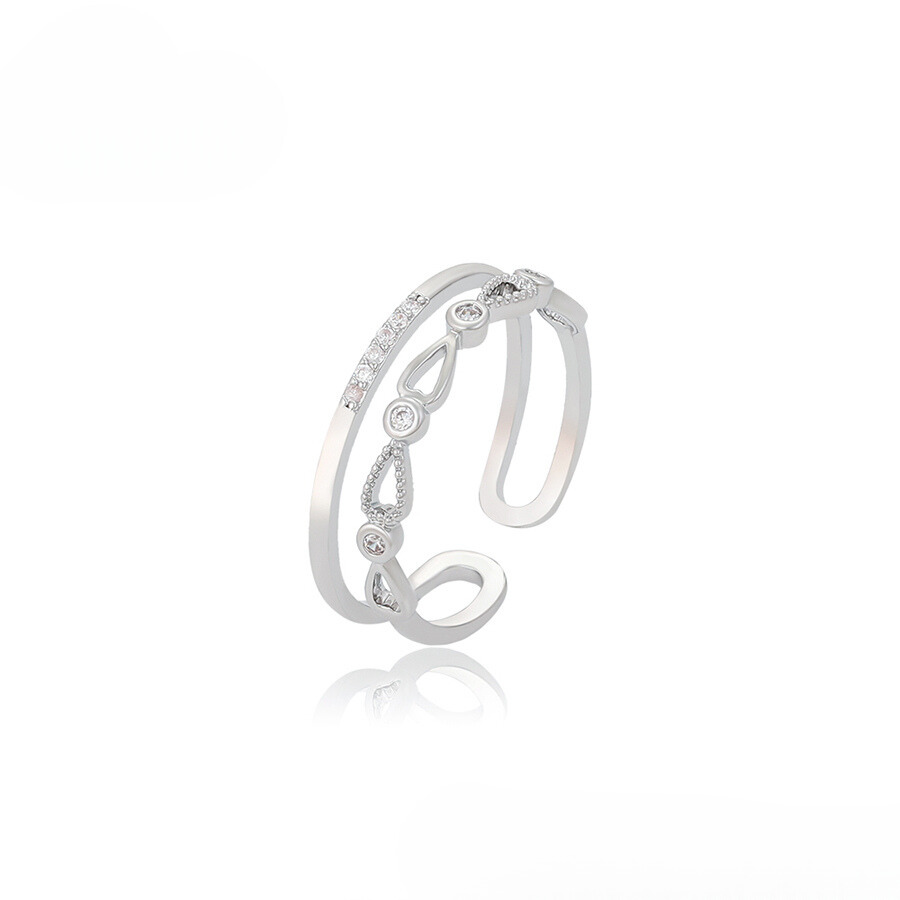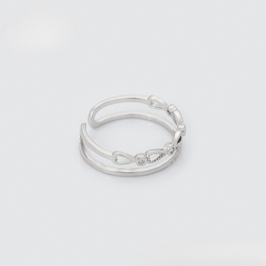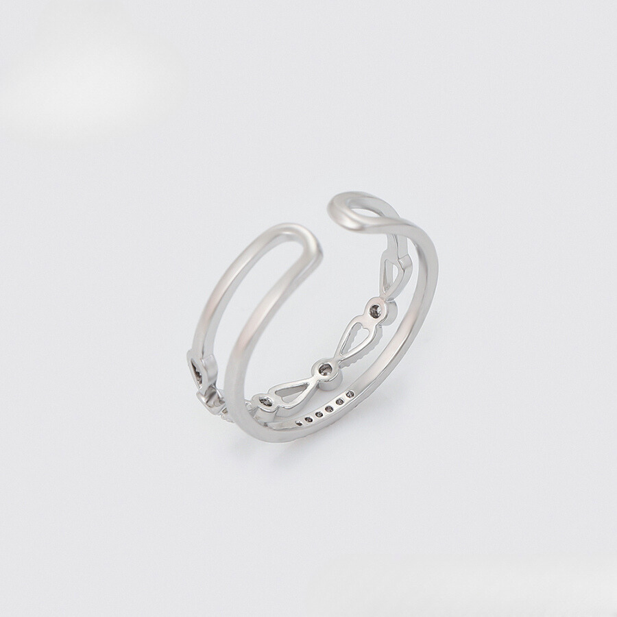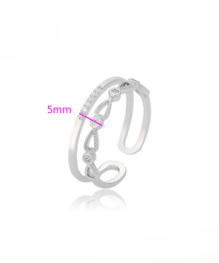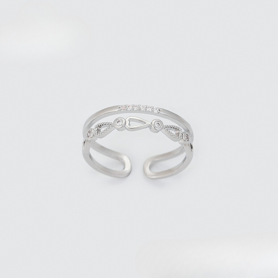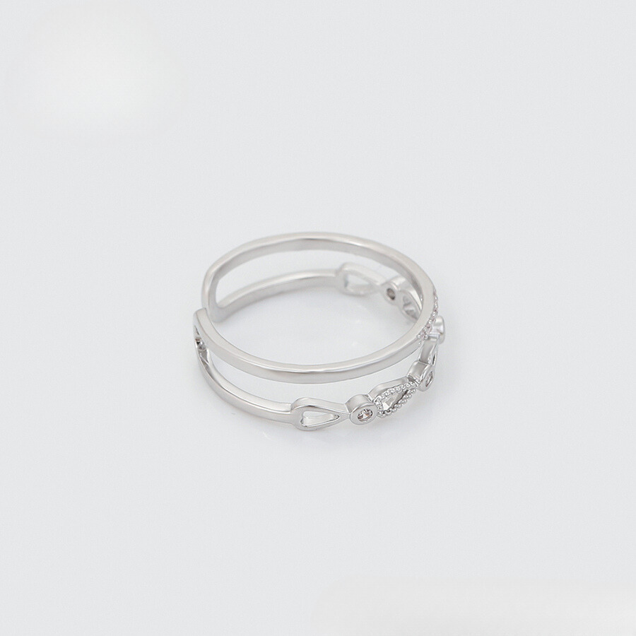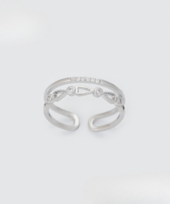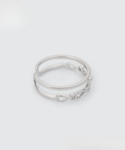 Elegante, fino y delicado anillo doble, elaborado en acero, con doble enchape de plata 925, e incrustación de cristal.
