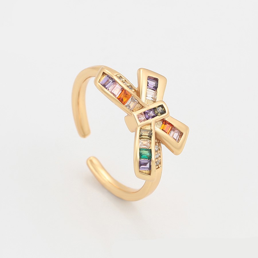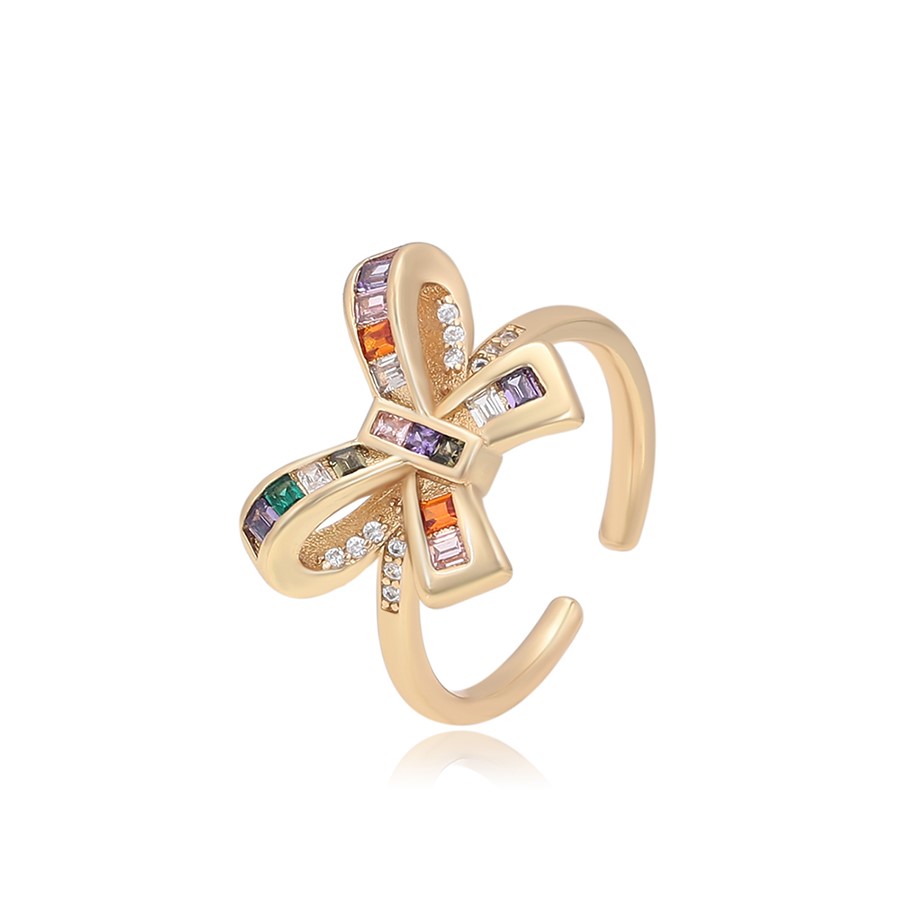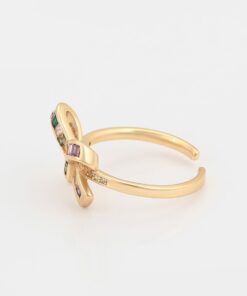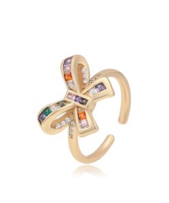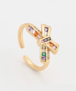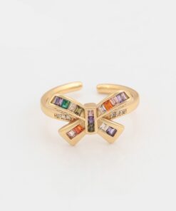 Precioso anillo de tendencia, regulable, elaborado en acero quirúrgico 316l, con doble baño de oro de 18k, e incrustación de cristales swarovski de variados colores.