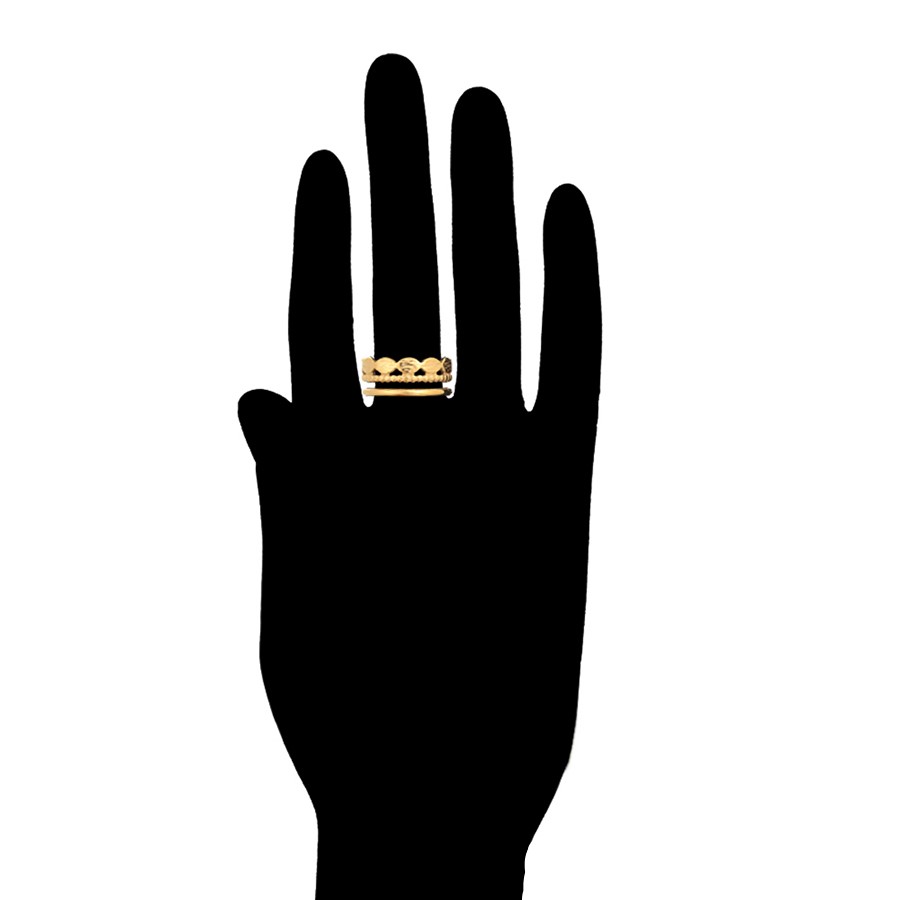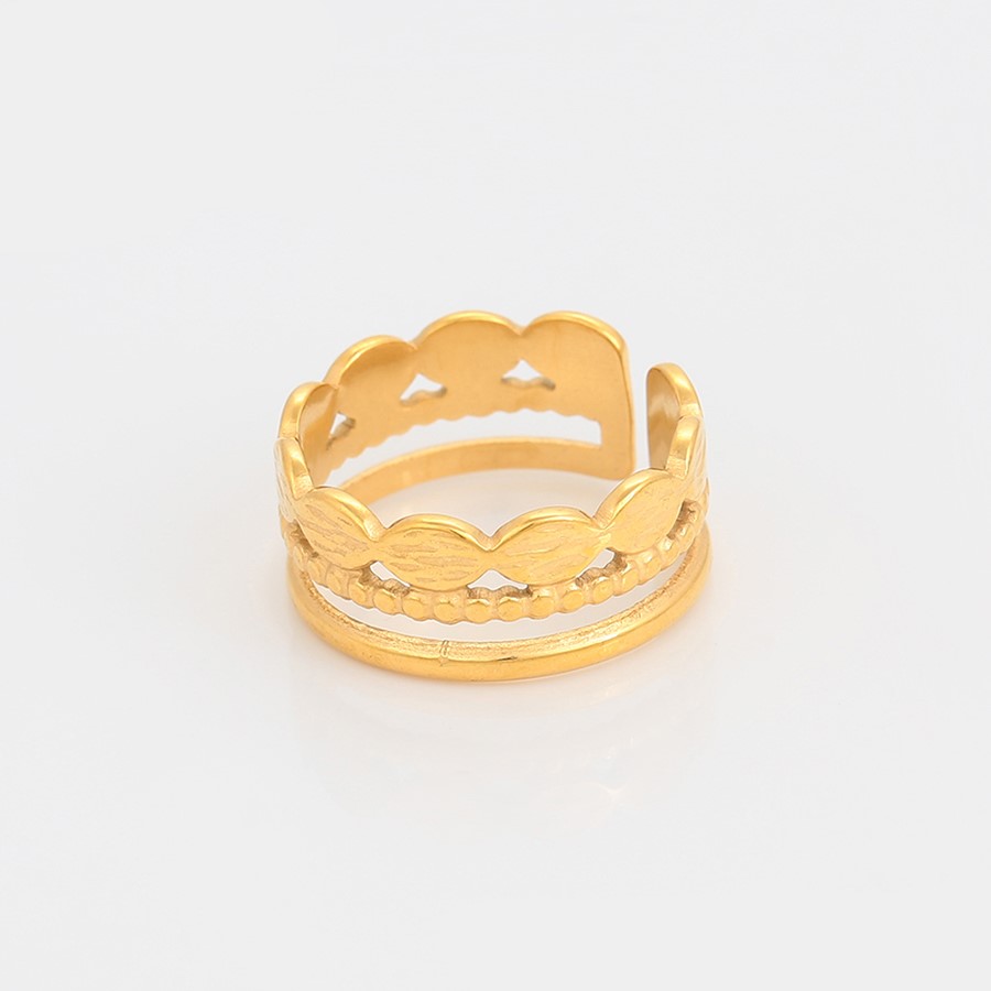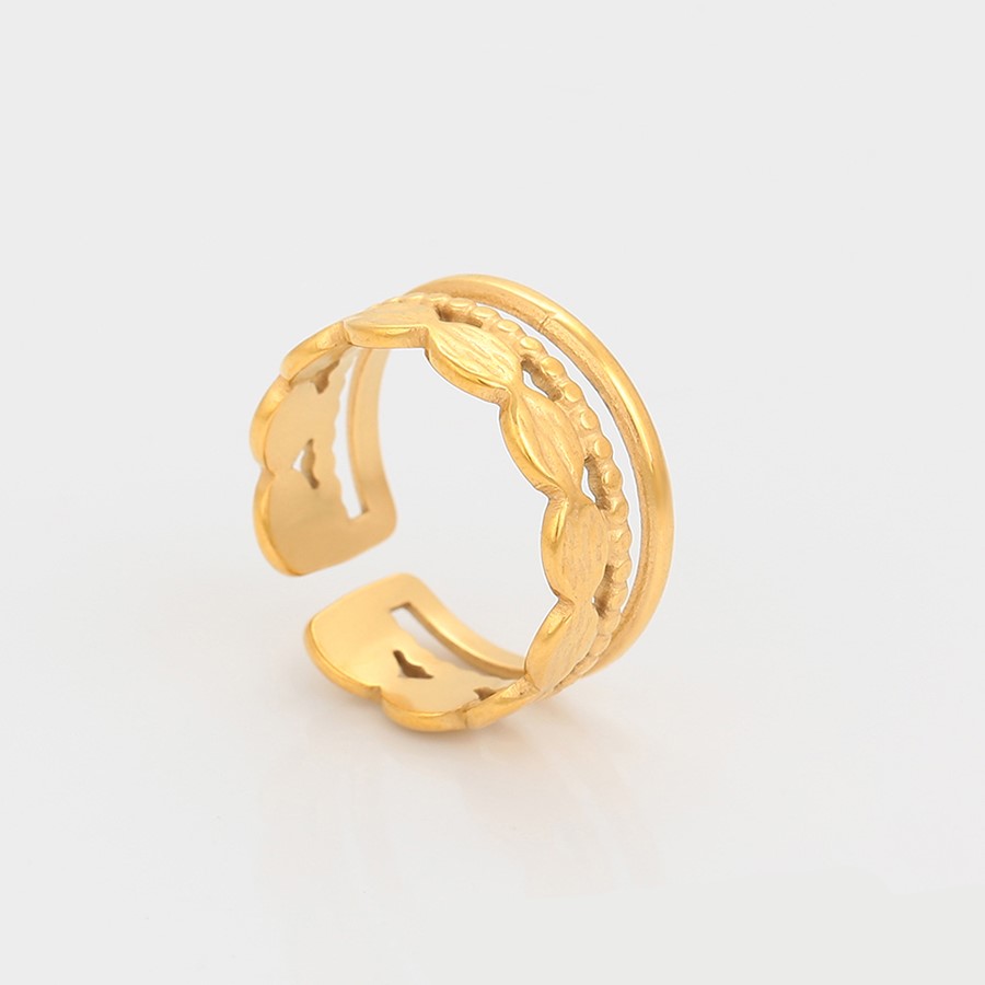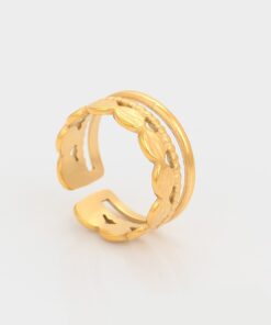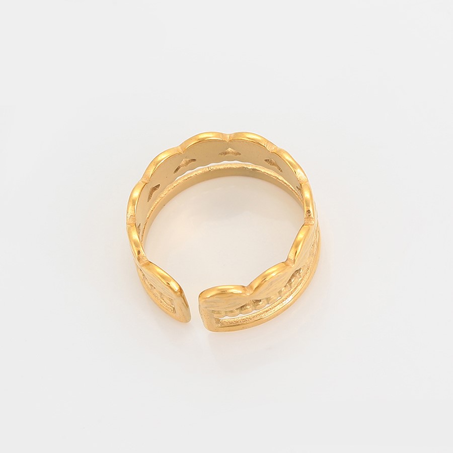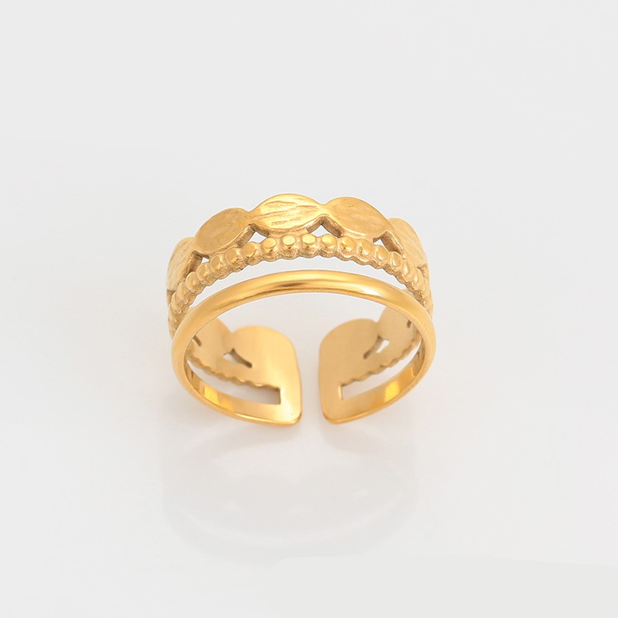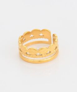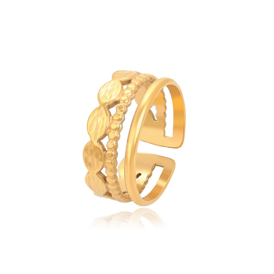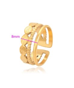 Elegante, delicado y fino anillo elaborado en acero quirúrgico 316l, doble baño de oro de 18k y plata de ley 925, acabado tallado, modelo exclusivo.