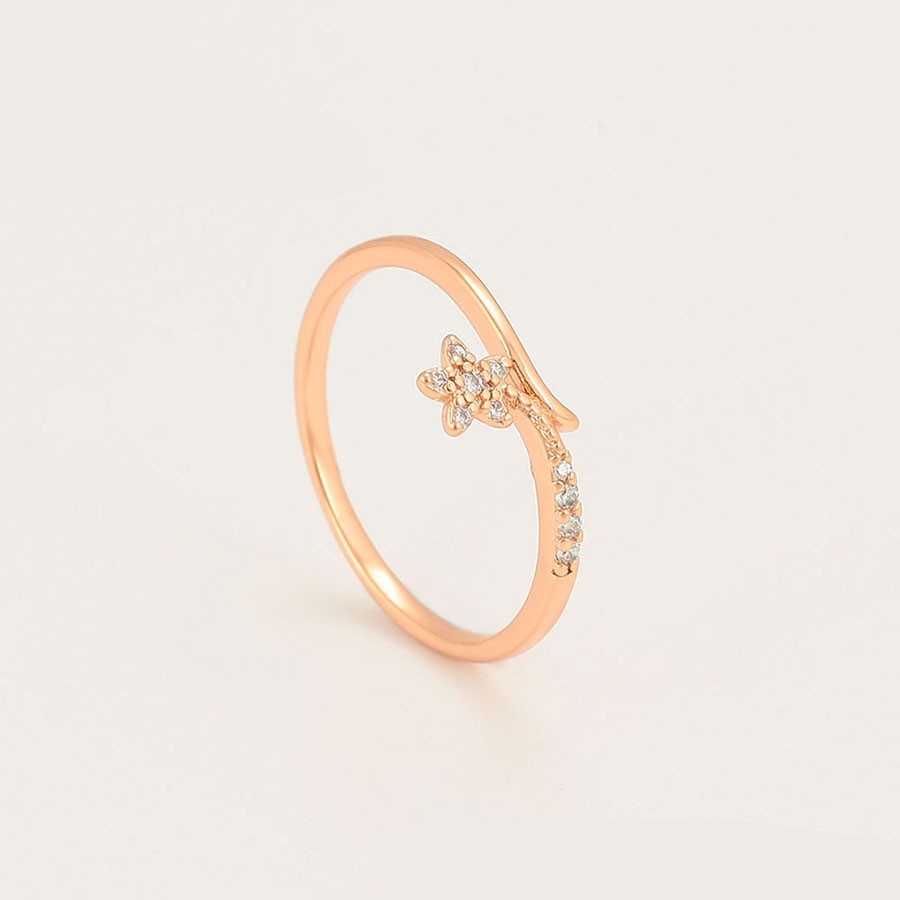 Bellísimo anillo elaborado en Acero Quirúrgico 316L, con doble baño de oro rosa de 18K, e incrustación de cristales swarovski.