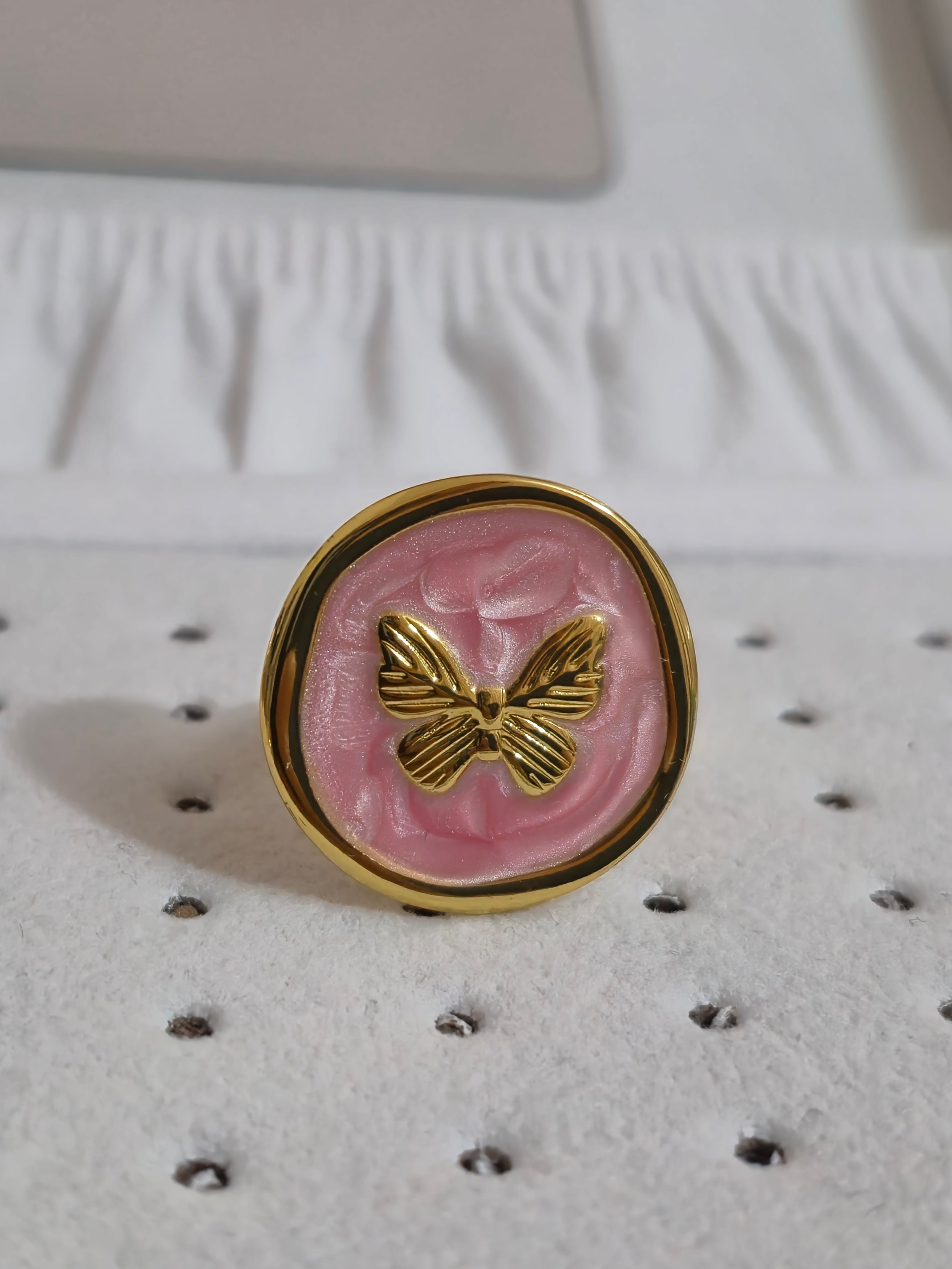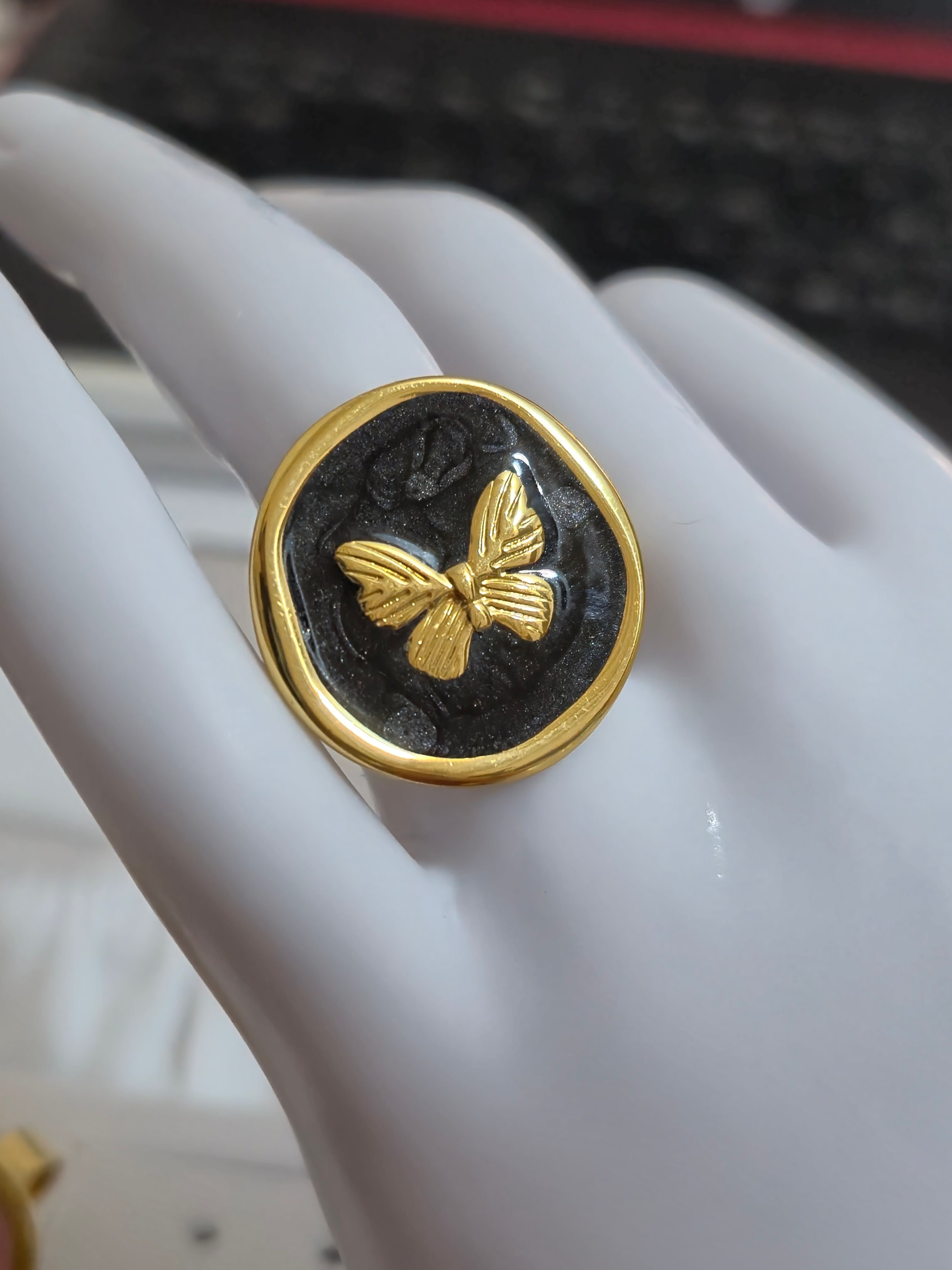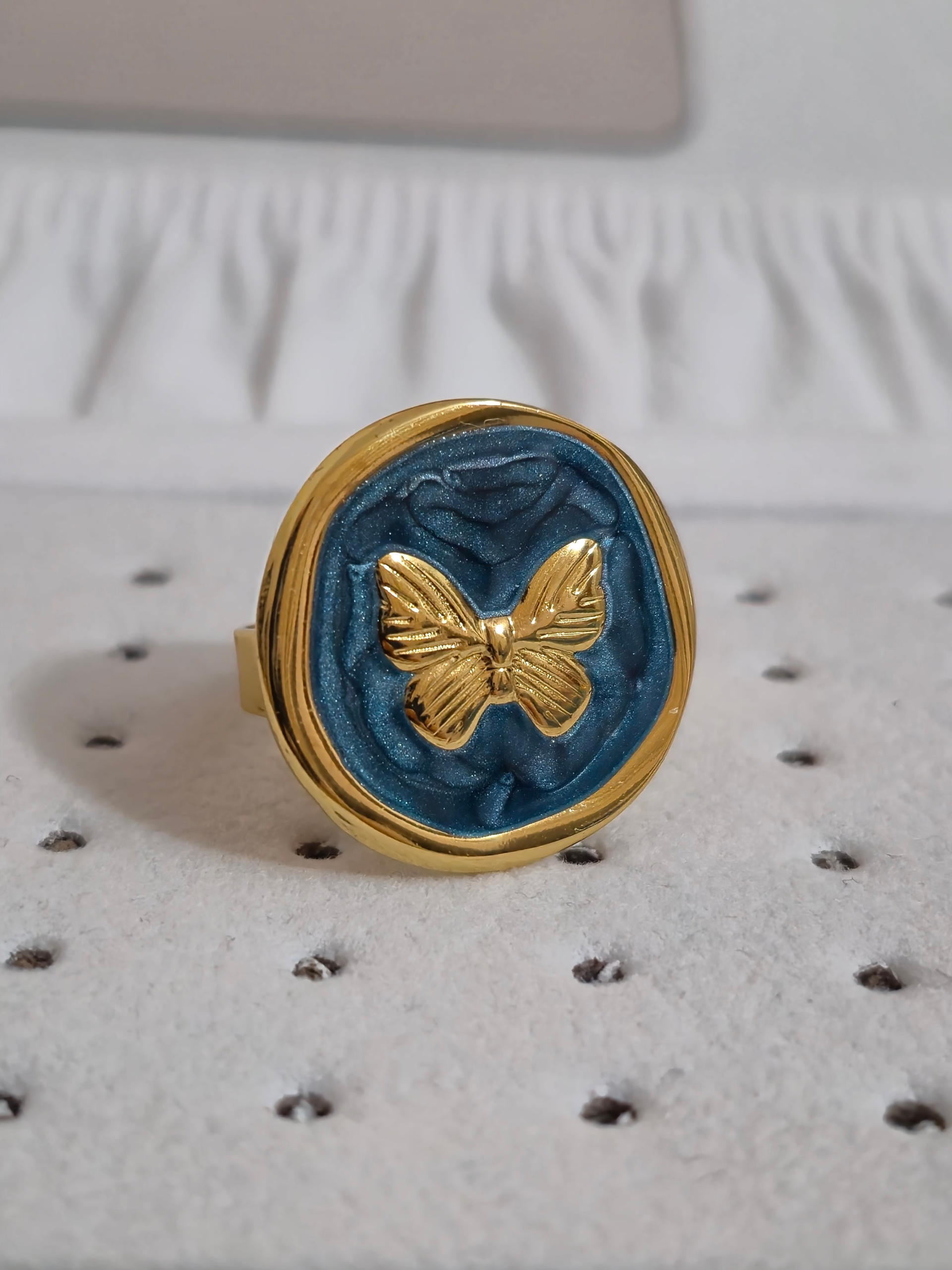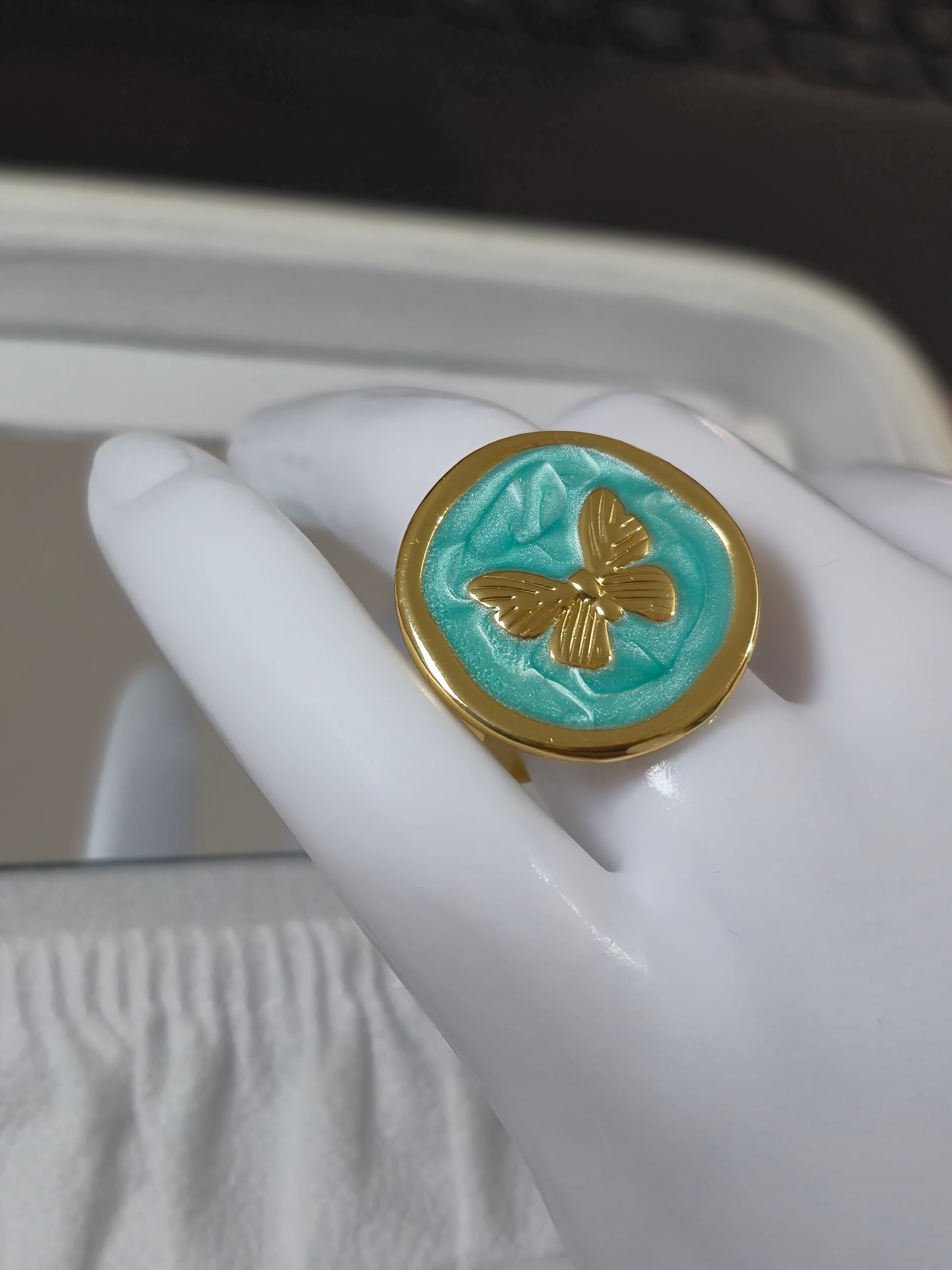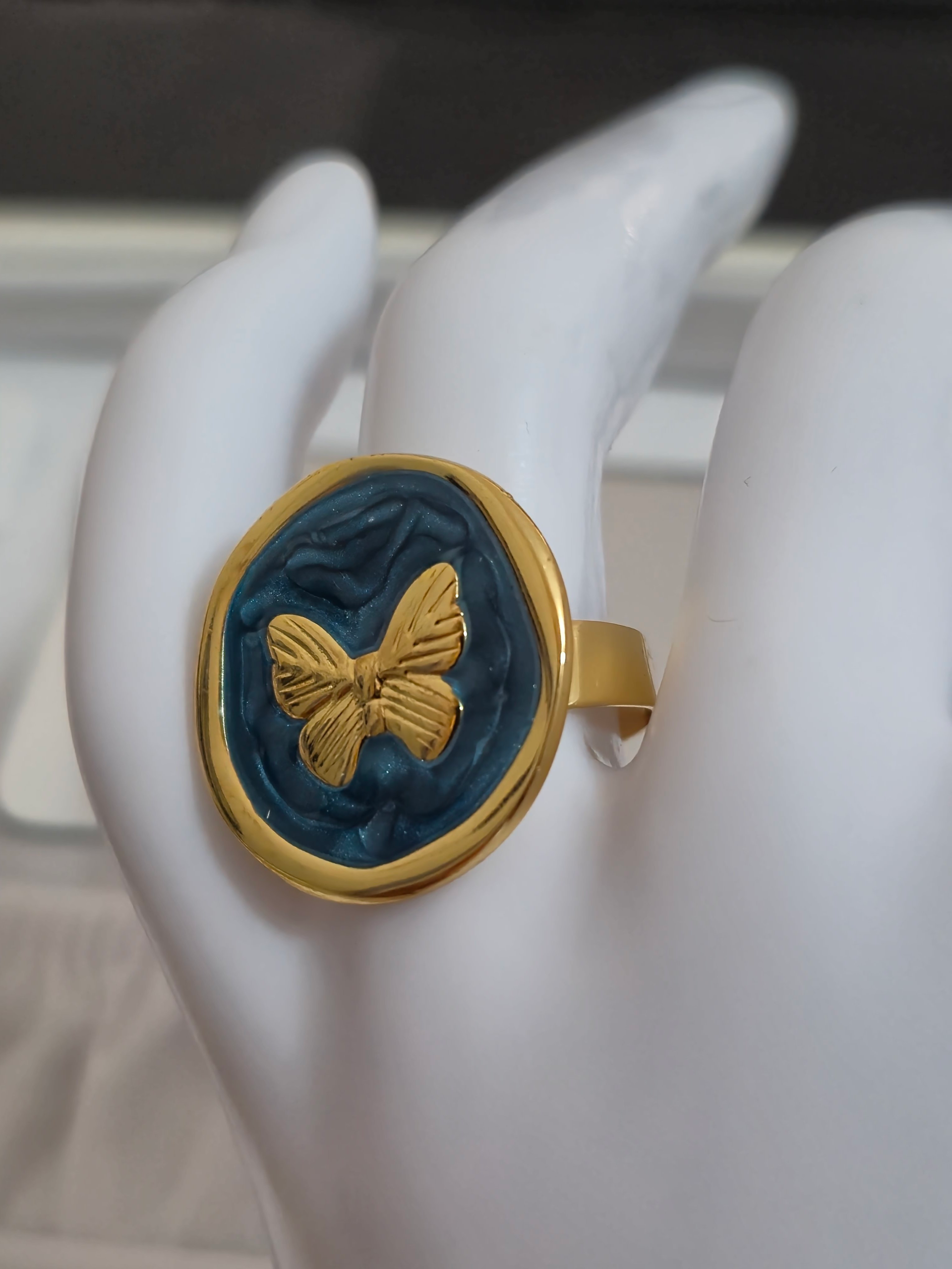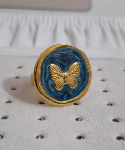 Bellísimos anillos elaborado en acero quirúrgico 316l con doble enchape de oro 18k, esmaltados graduables de variadas formas en tendencia, modelo 2026.