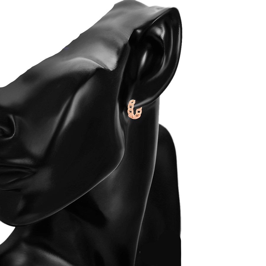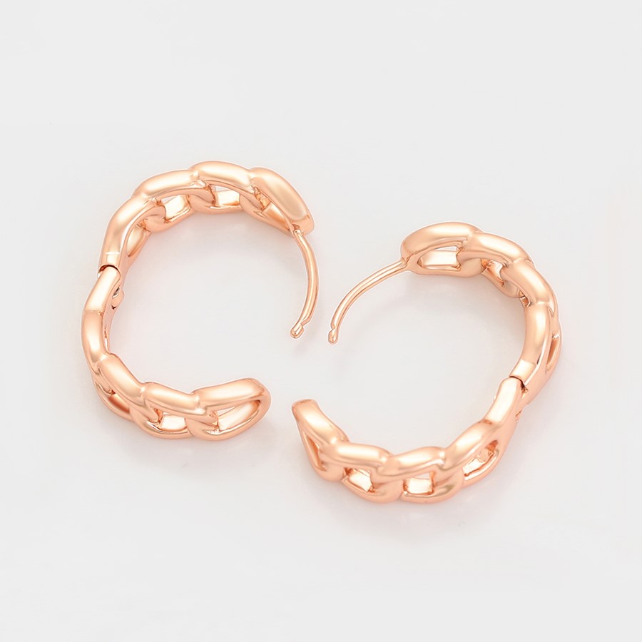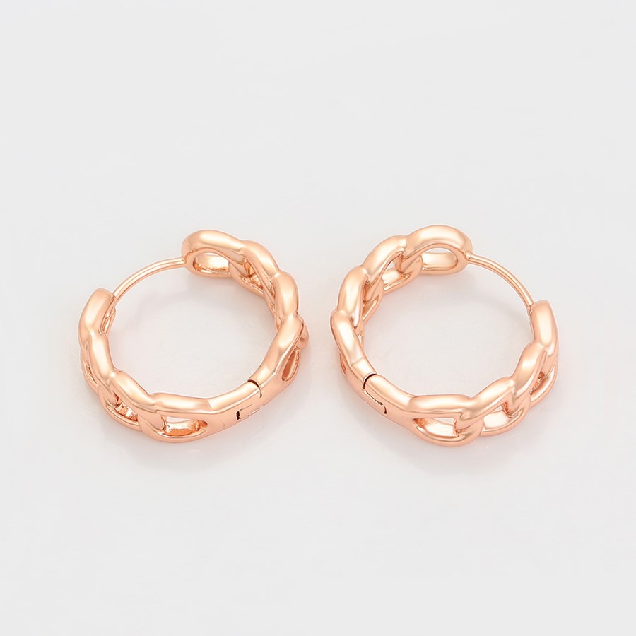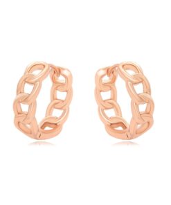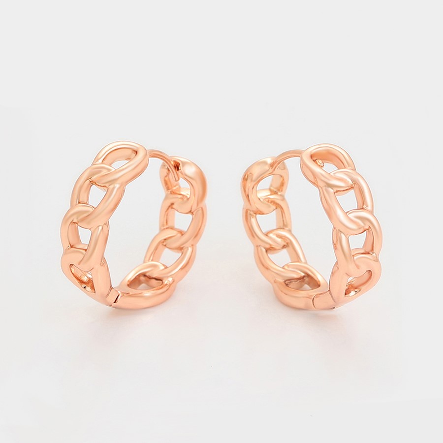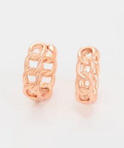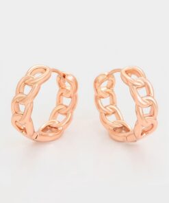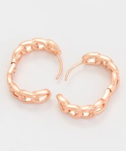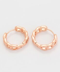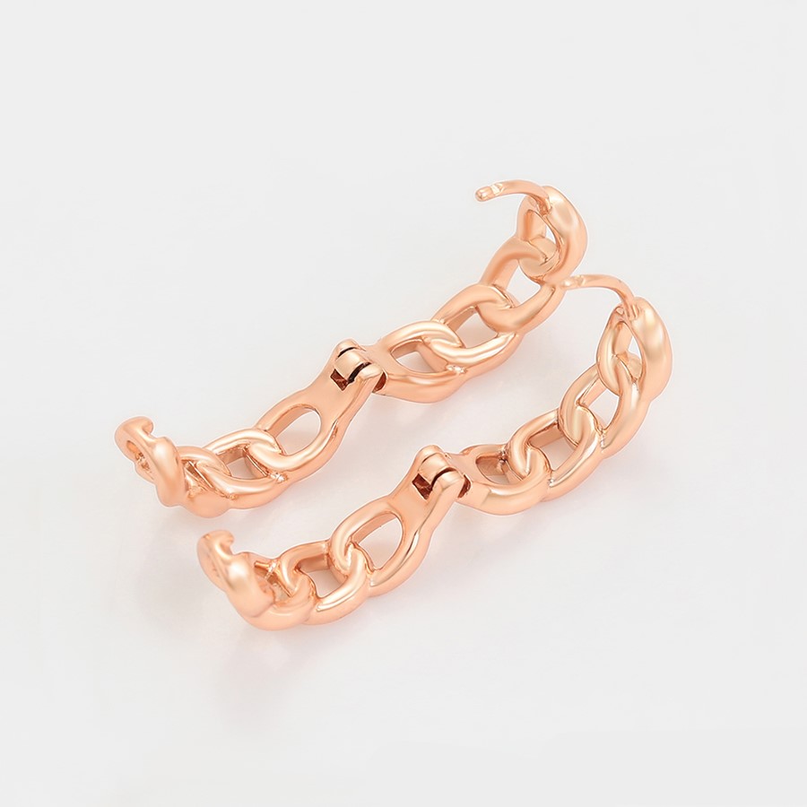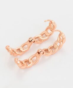 Elegantes aretes argolla elaborado en acero, con doble enchape de oro rosé de 18k, diseño exclusivo.