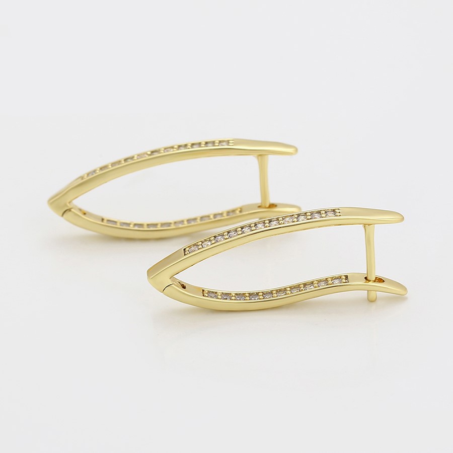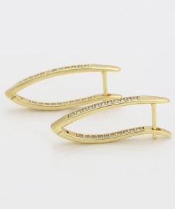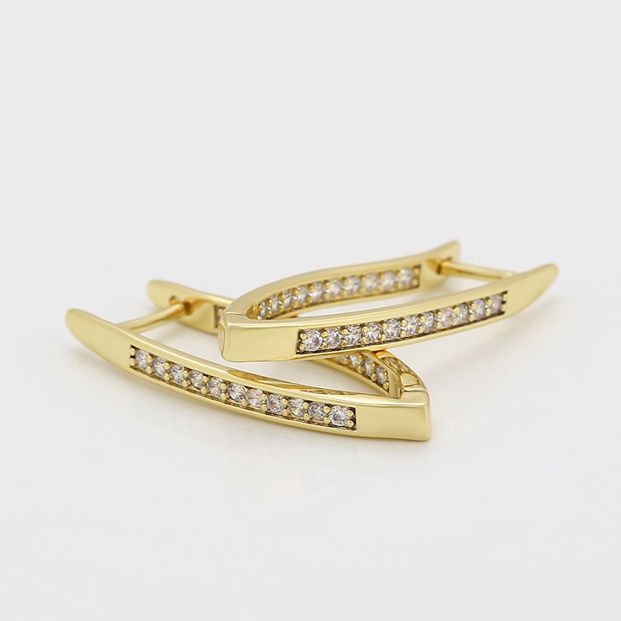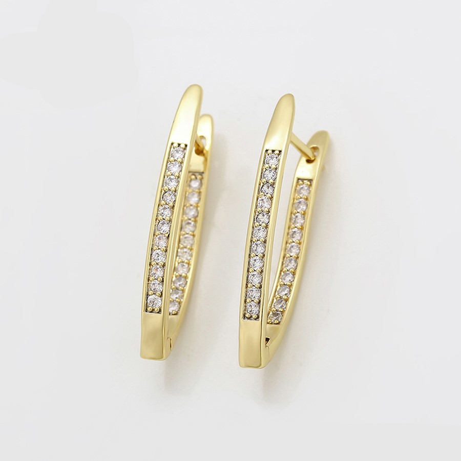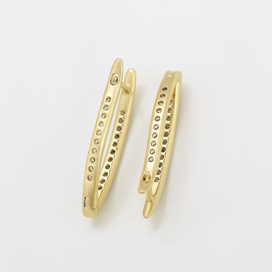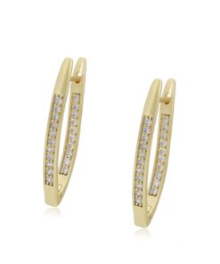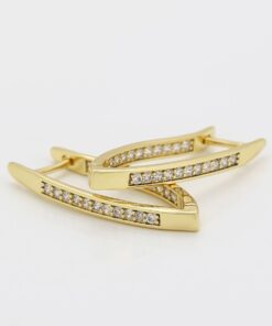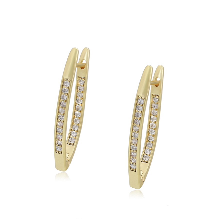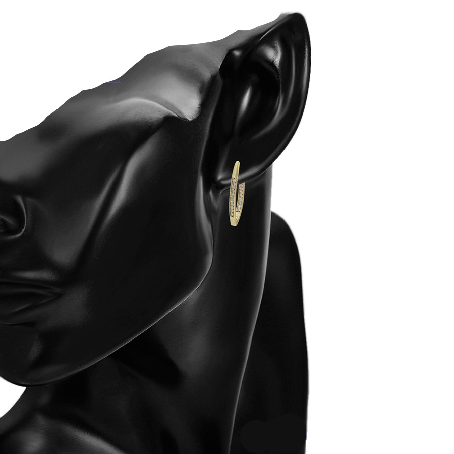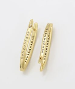 Finos y elegantes aretes argolla, elaborado en Acero 316L, con doble baño de oro de 18K, e incrustaciones de cristal swarovski en el lado frontal y posterior del arete.
