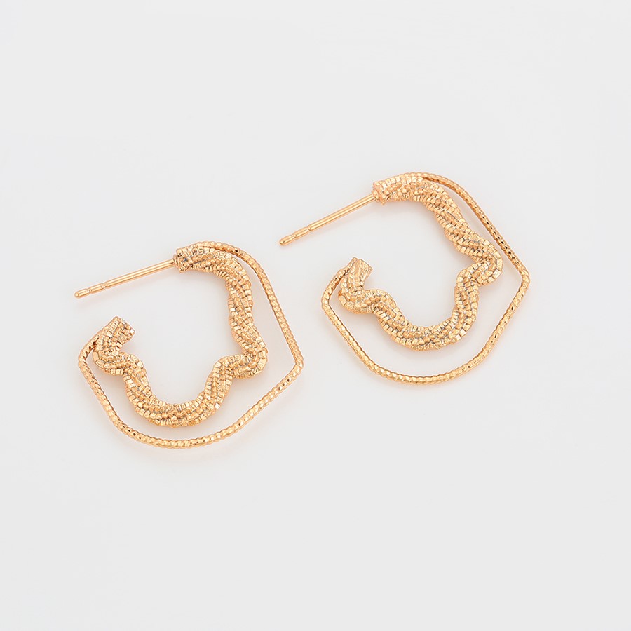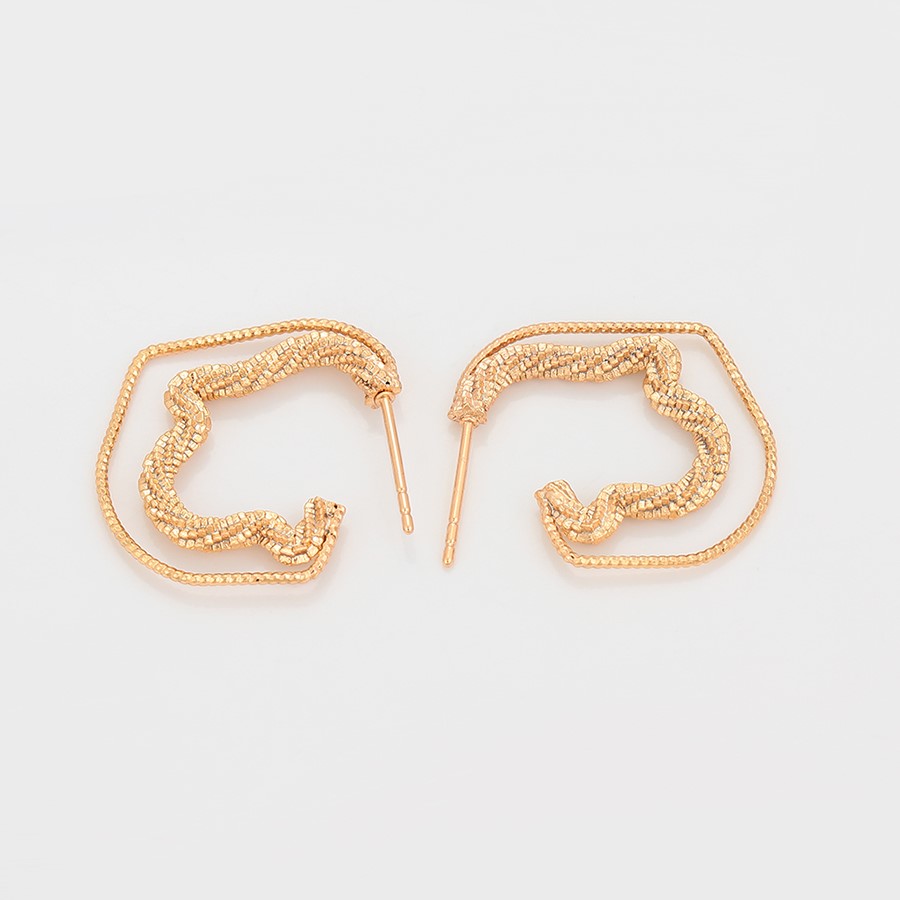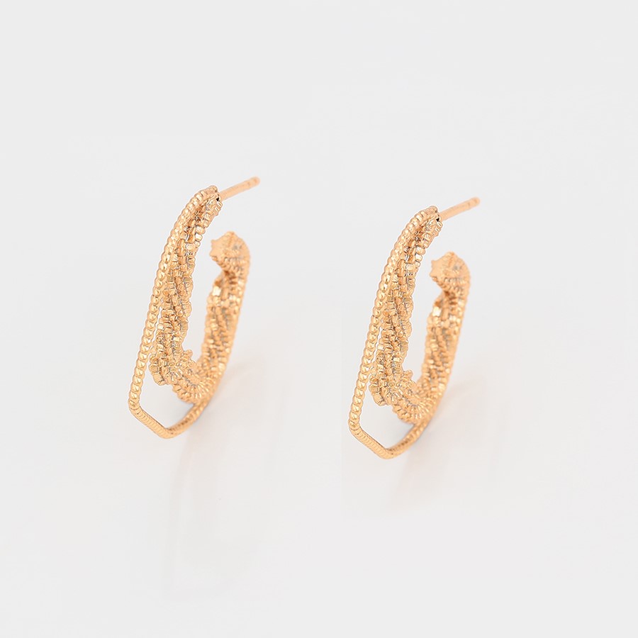 Hermosos, finos y delicados aretes, elaborado en acero quirúrgico 316l, con doble baño de oro de 18k, modelo entorchado y diamantado.