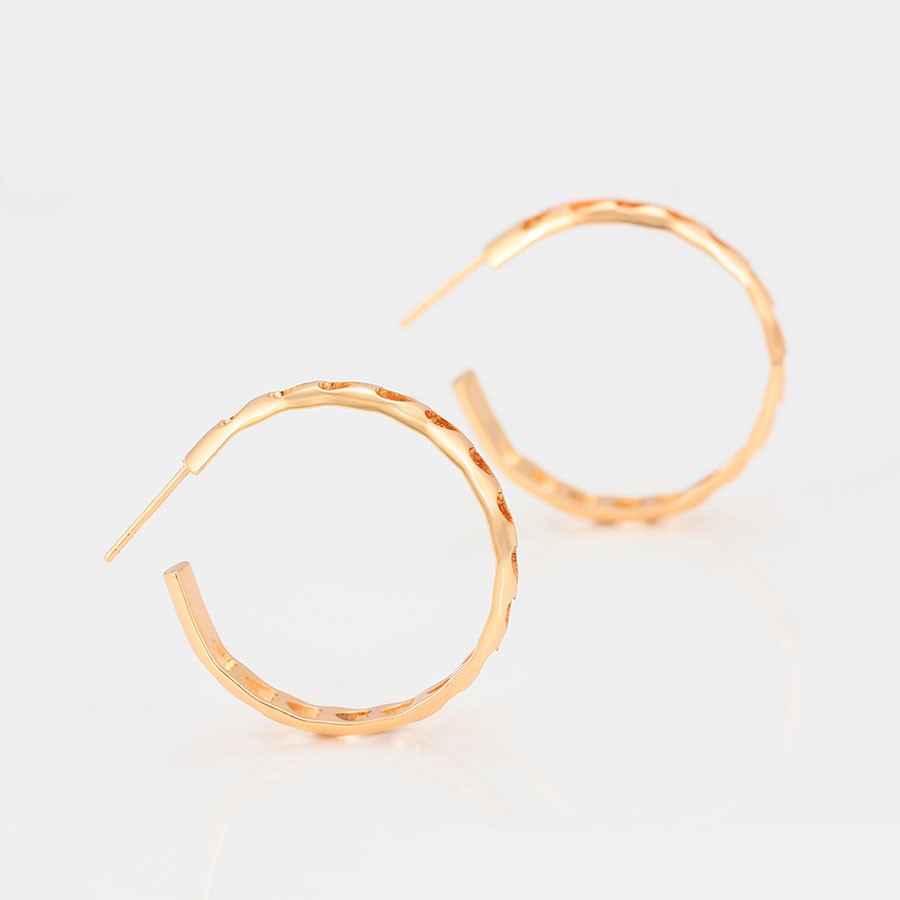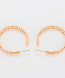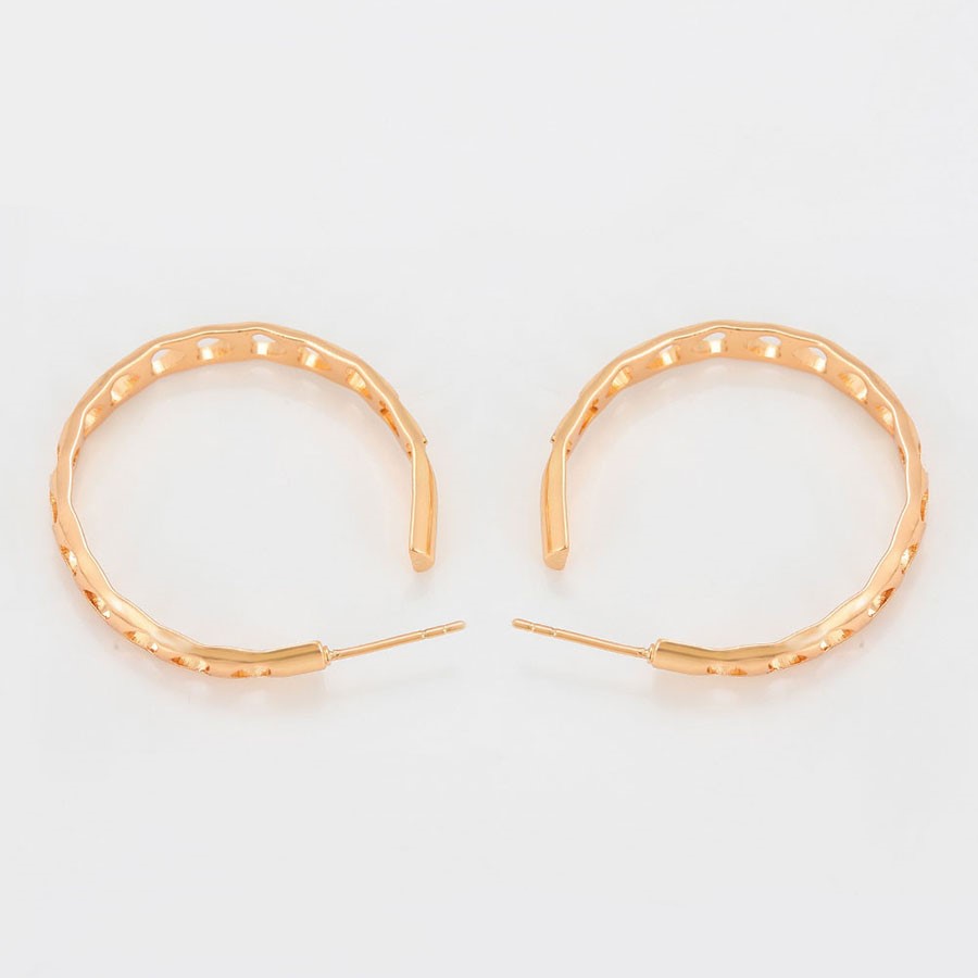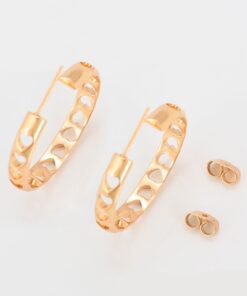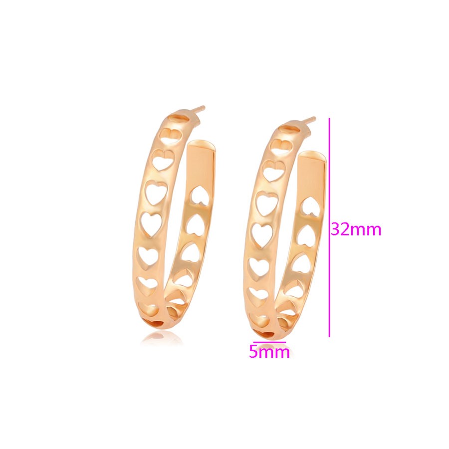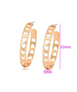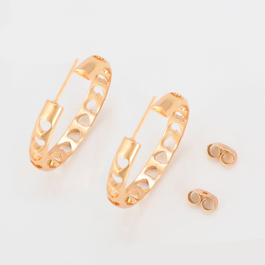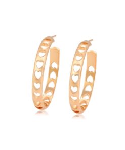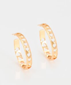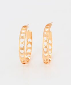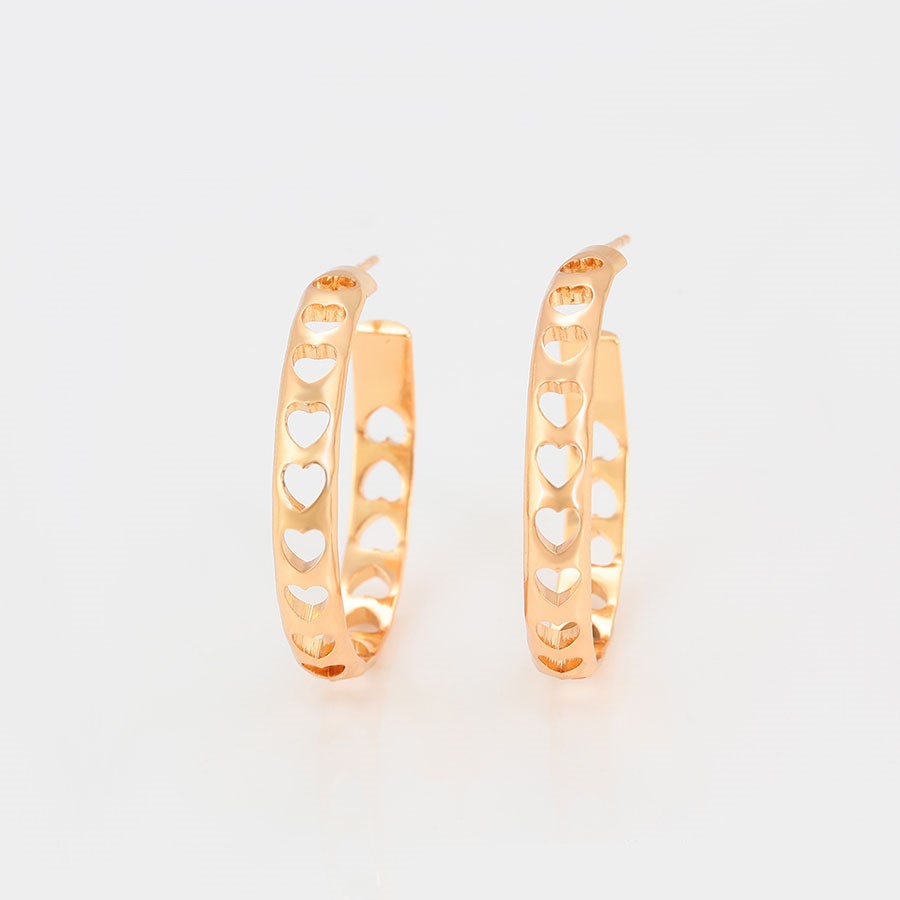 Bellos aretes elaborados en acero quirúrgico 316L, con doble baño de oro de 18K, diseño con corazones alrededor.