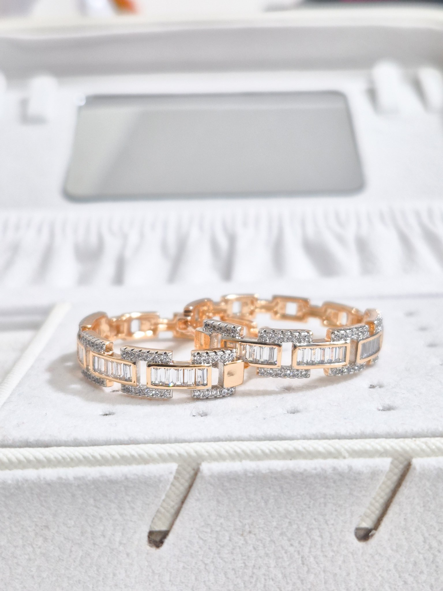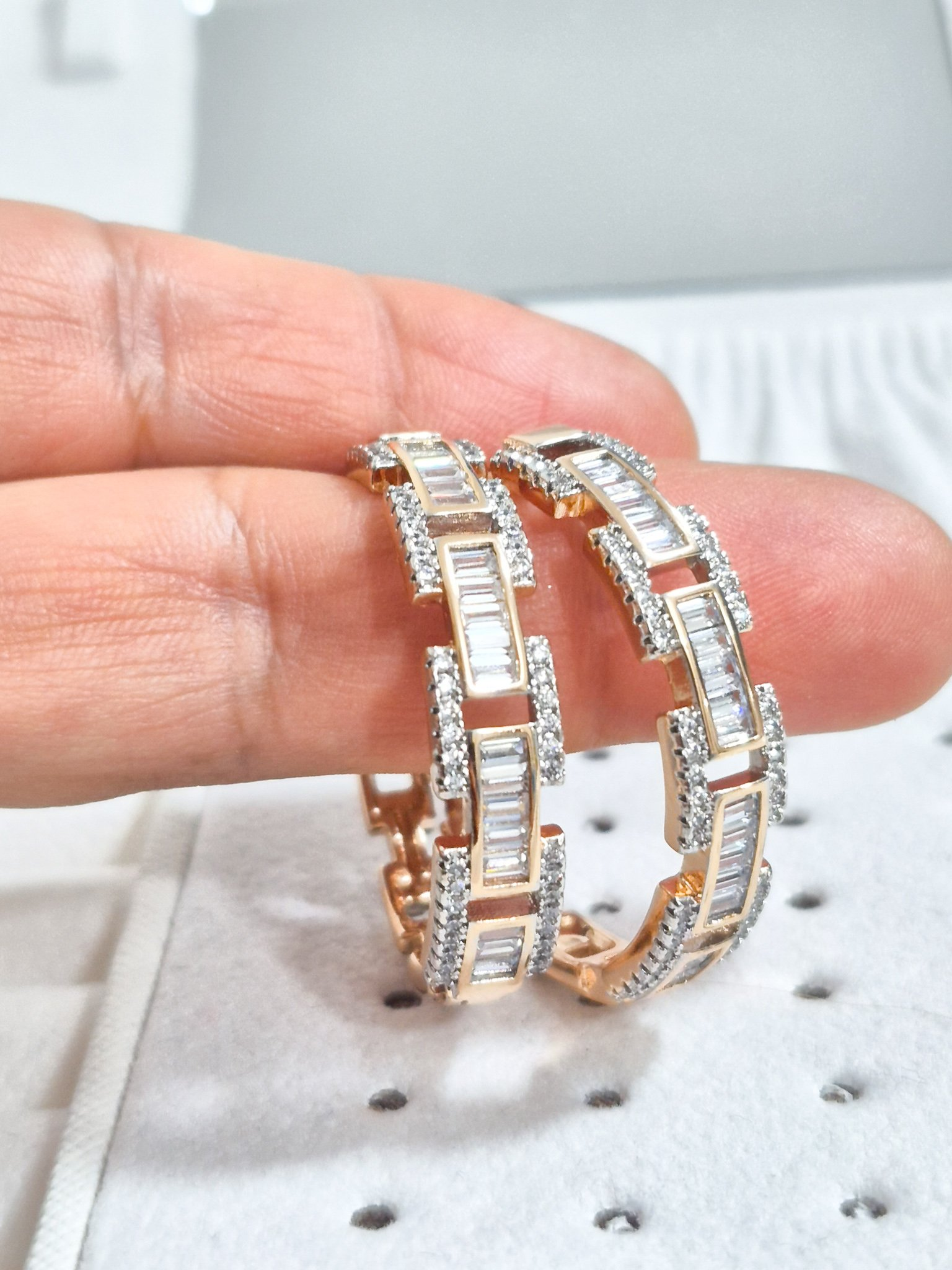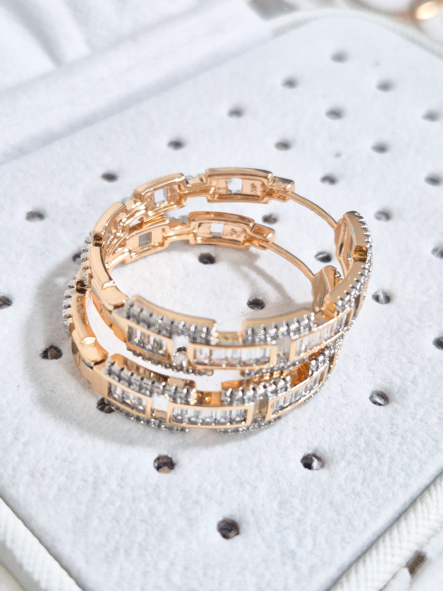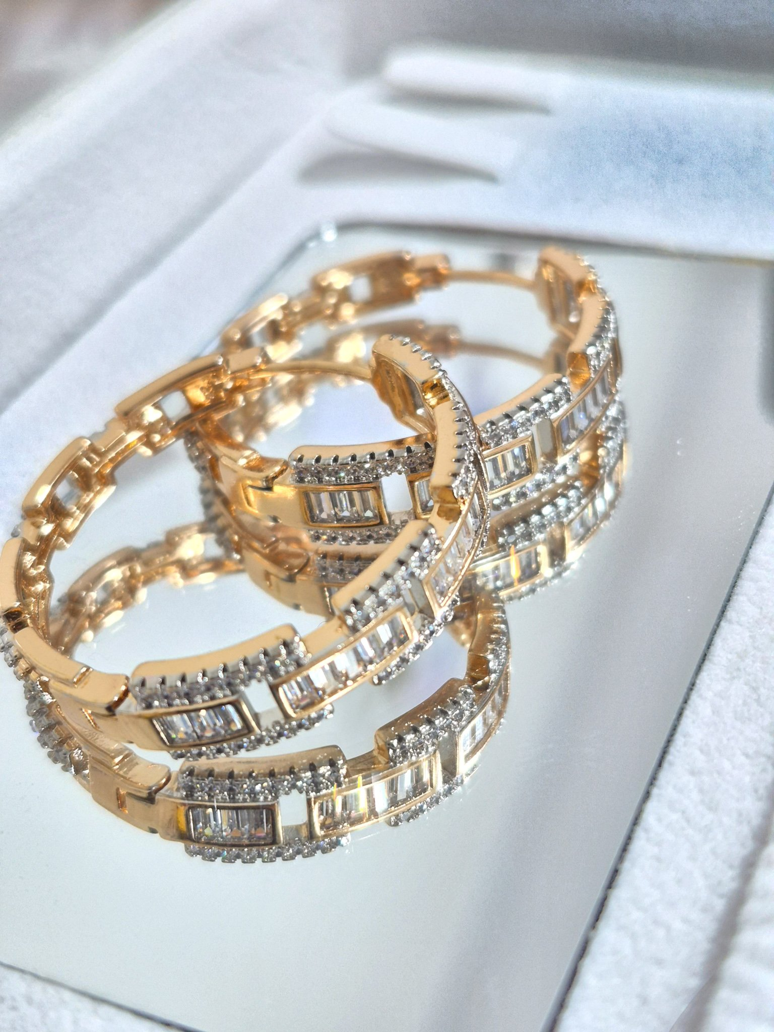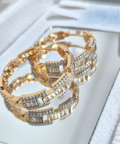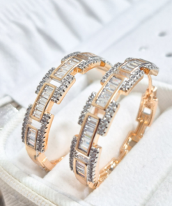 Hermosas argollas en aleación con doble enchape de oro de 24k, e incrustación de cristal Swarovski.
