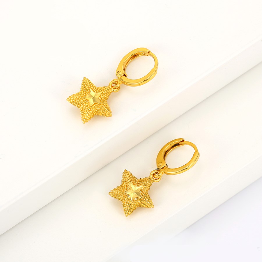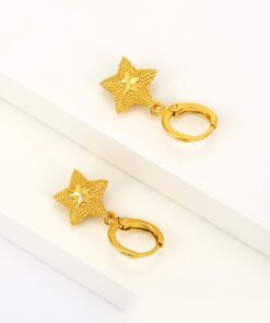 Lindos aretes elaborado en acero quirúrgico 316L, con doble baño de oro de 18K, diamantado en todo el cuerpo del arete.