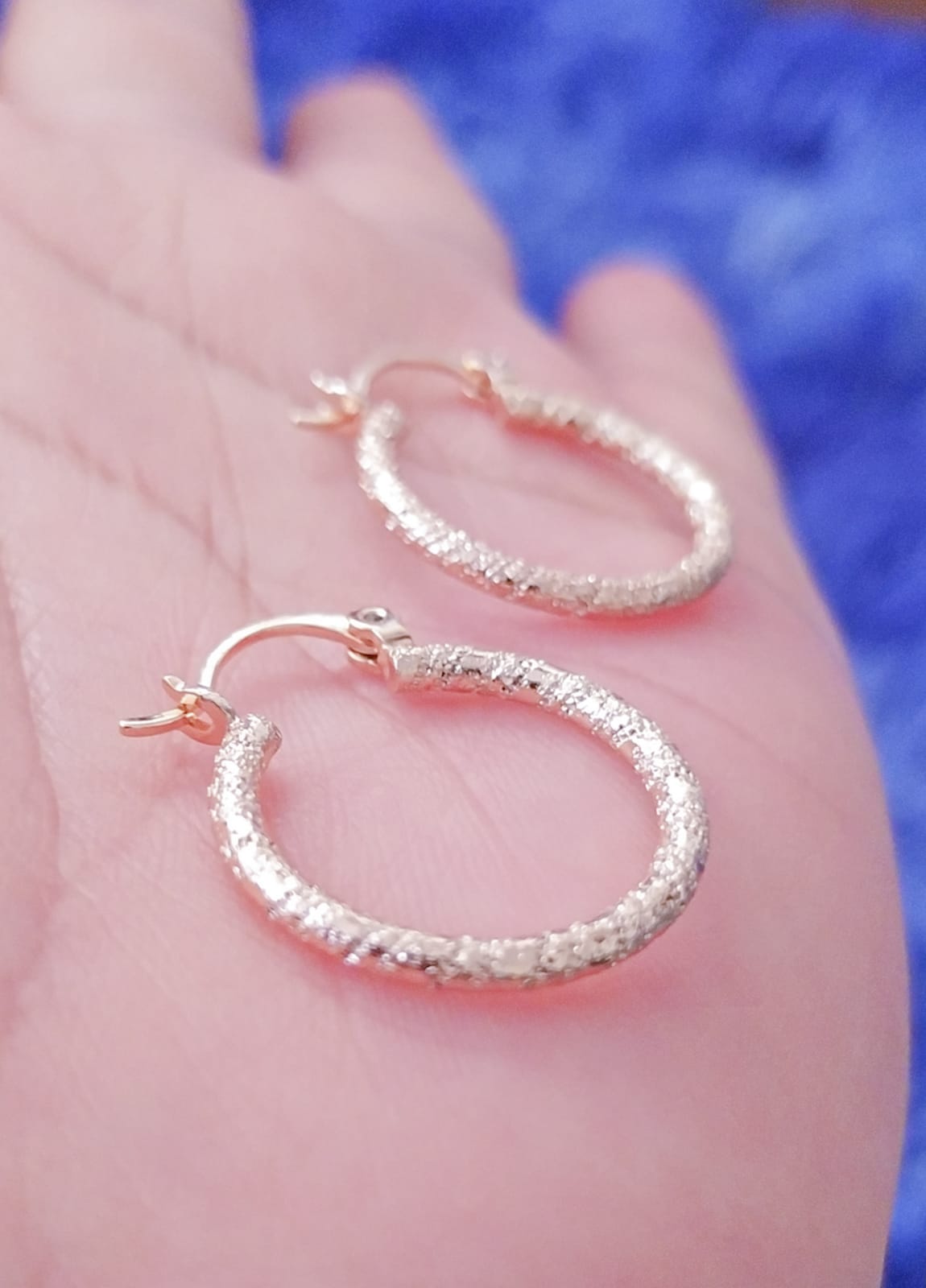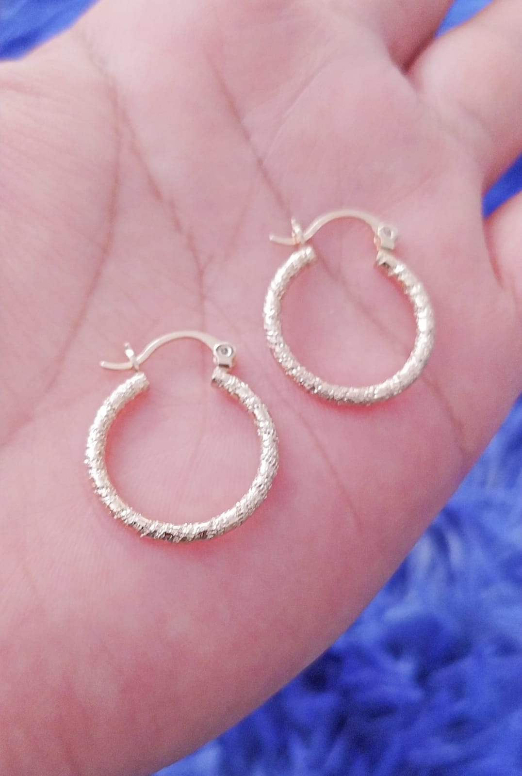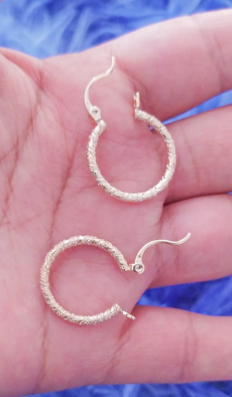 Hermosas argollas diamantadas con doble baño de oro dorado, y doble baño en oro de 24K.
