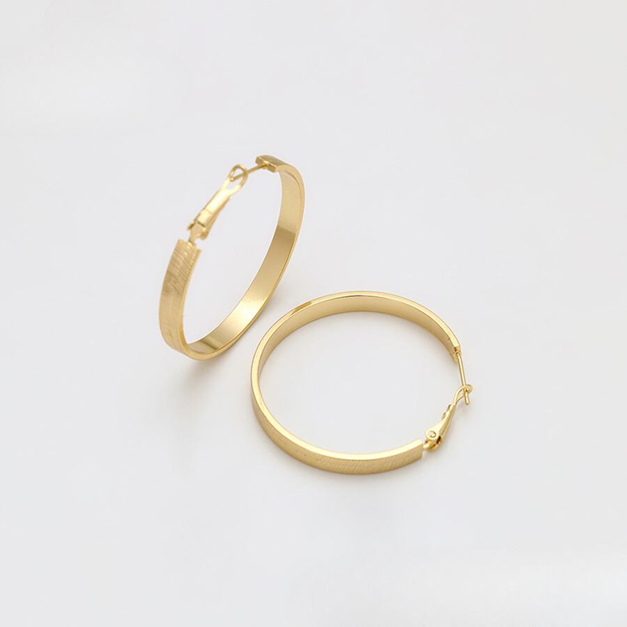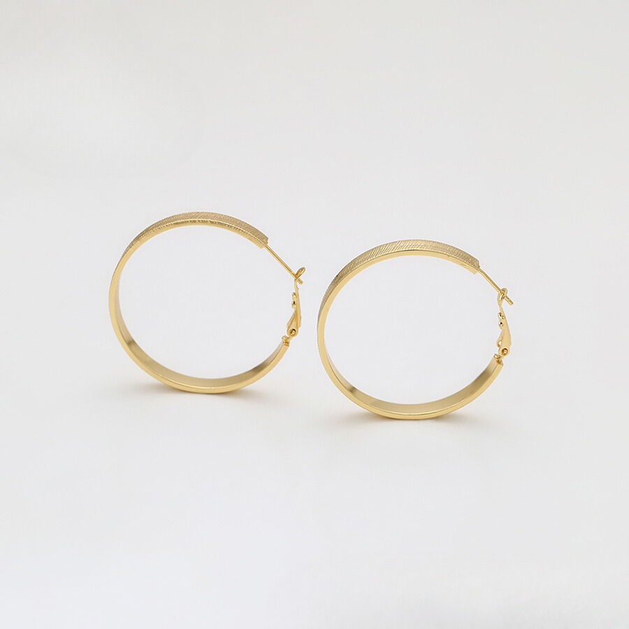 Bellos aretes argolla elaborado en acero, con doble enchape de oro dorado de 18k, diamantada.