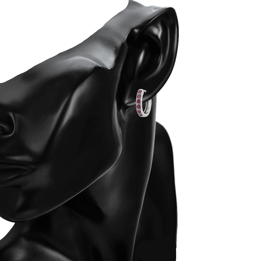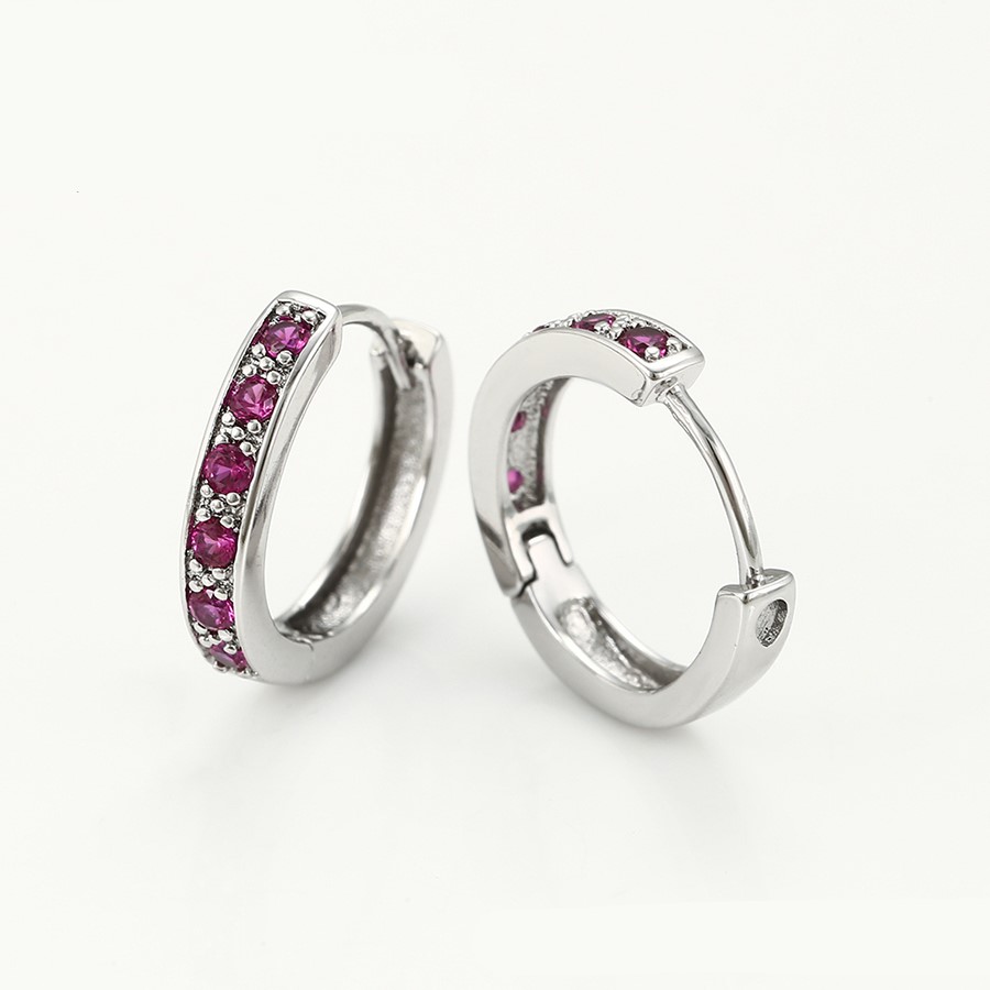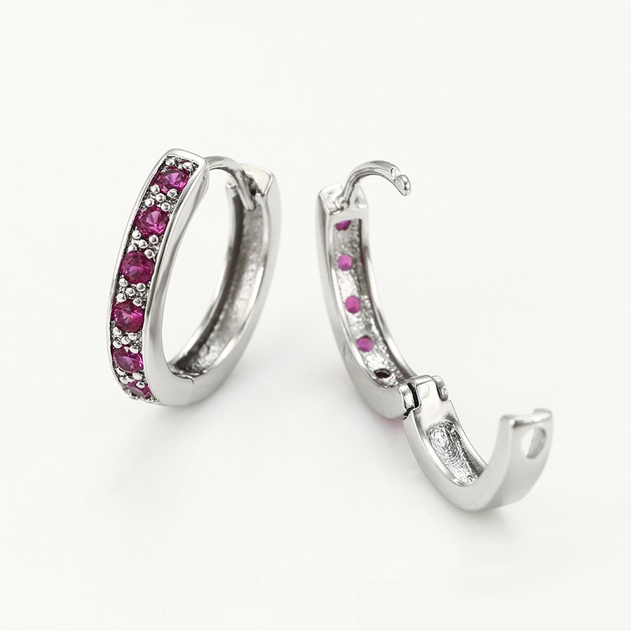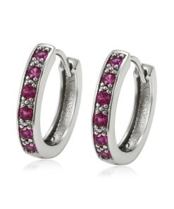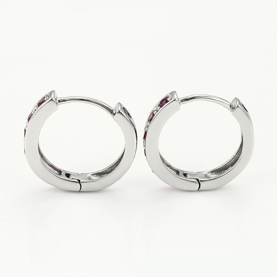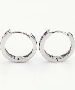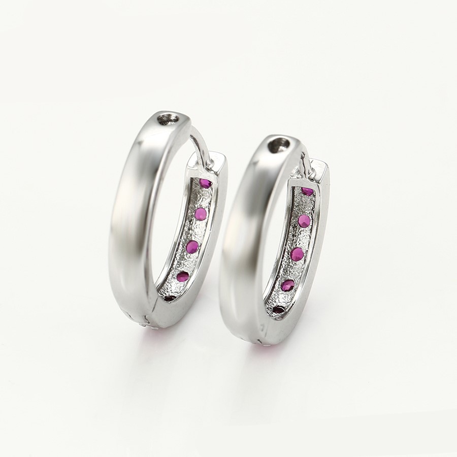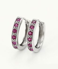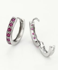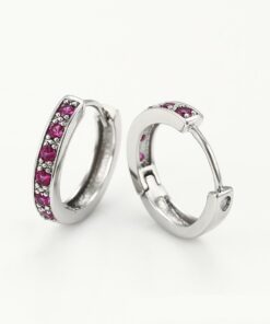 Bellos aretes argolla elaborado en acero, con doble enchape de plata 925, e incrustación de cristal.