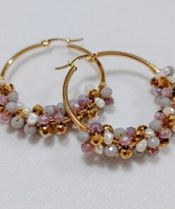 Lindas argollas elaboradas en acero quirúrgico hechas a mano, con piedras y perlas de río.