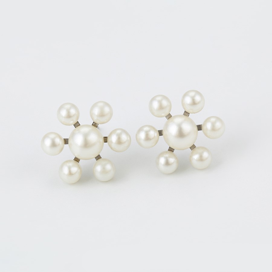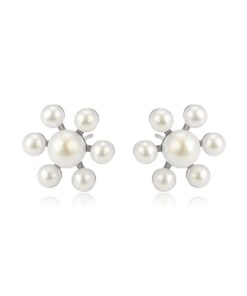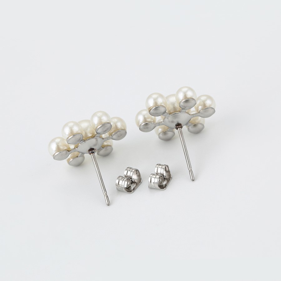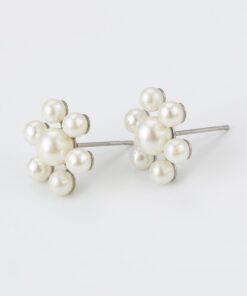 Hermosos aretes elaborado en acero quirúrgico 316l, con doble baño de plata de ley 925, e incrustación de miniperlas.