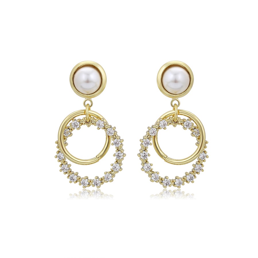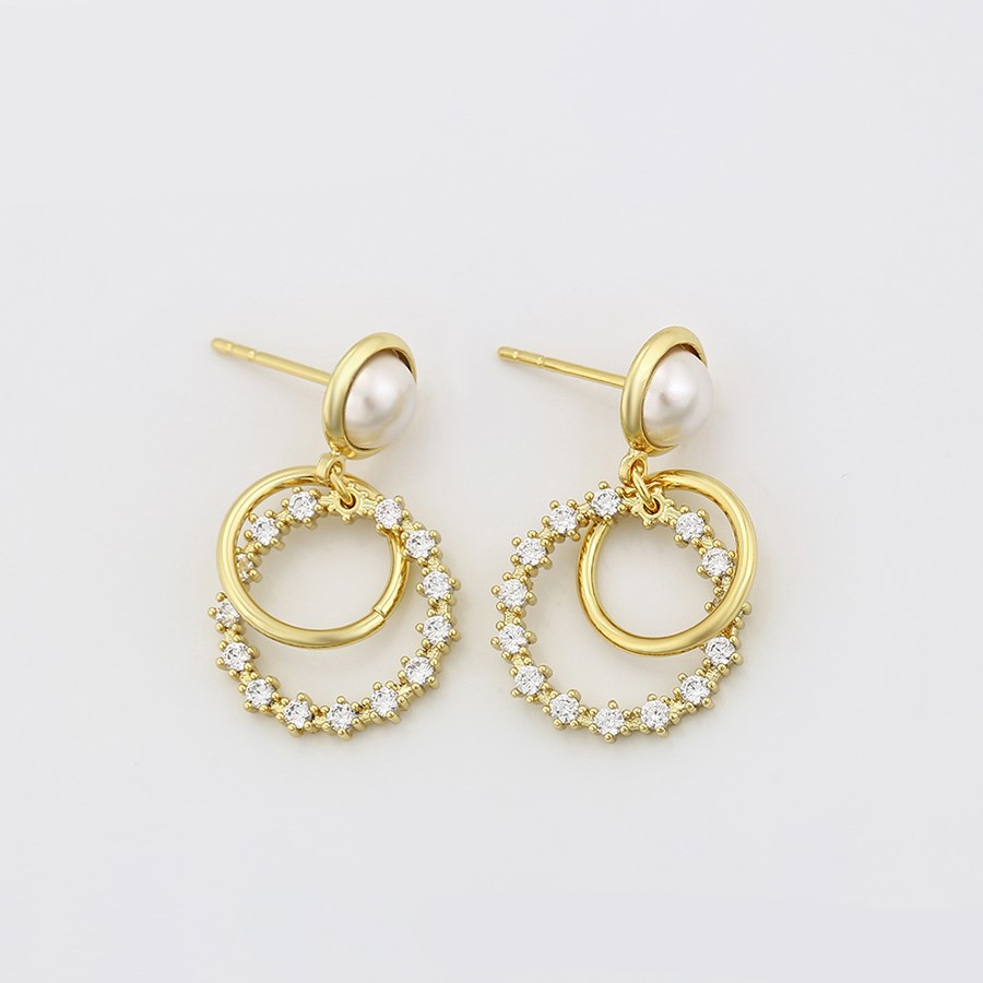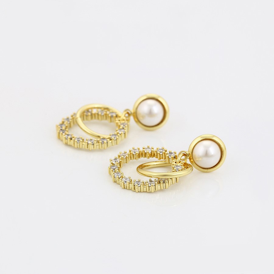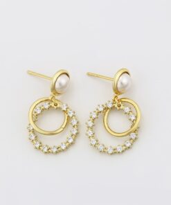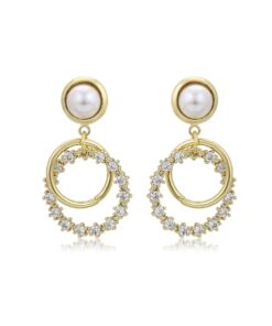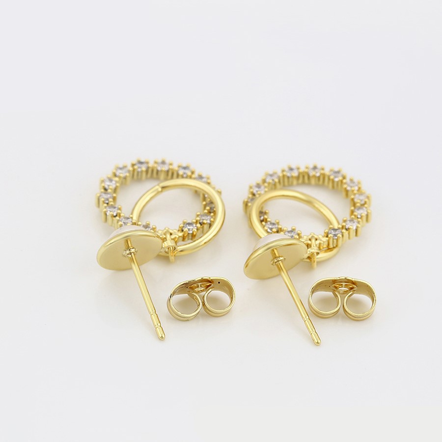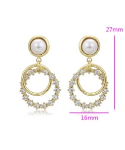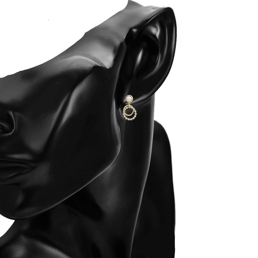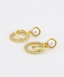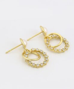 Lindos y elegantes aretes elaborado en acero quirúrgico 316L, con doble baño de oro de 18k, con media perla checa, e incrustación de cristales swarovski.