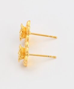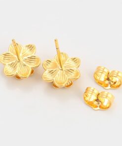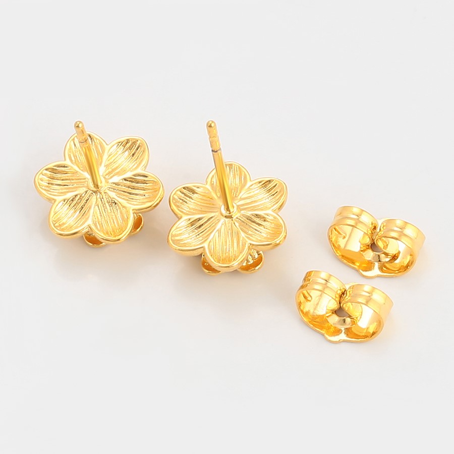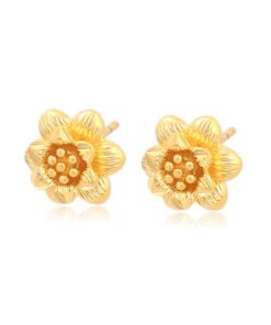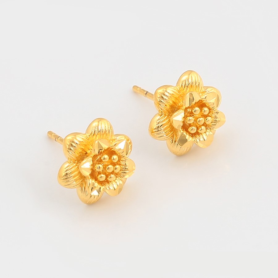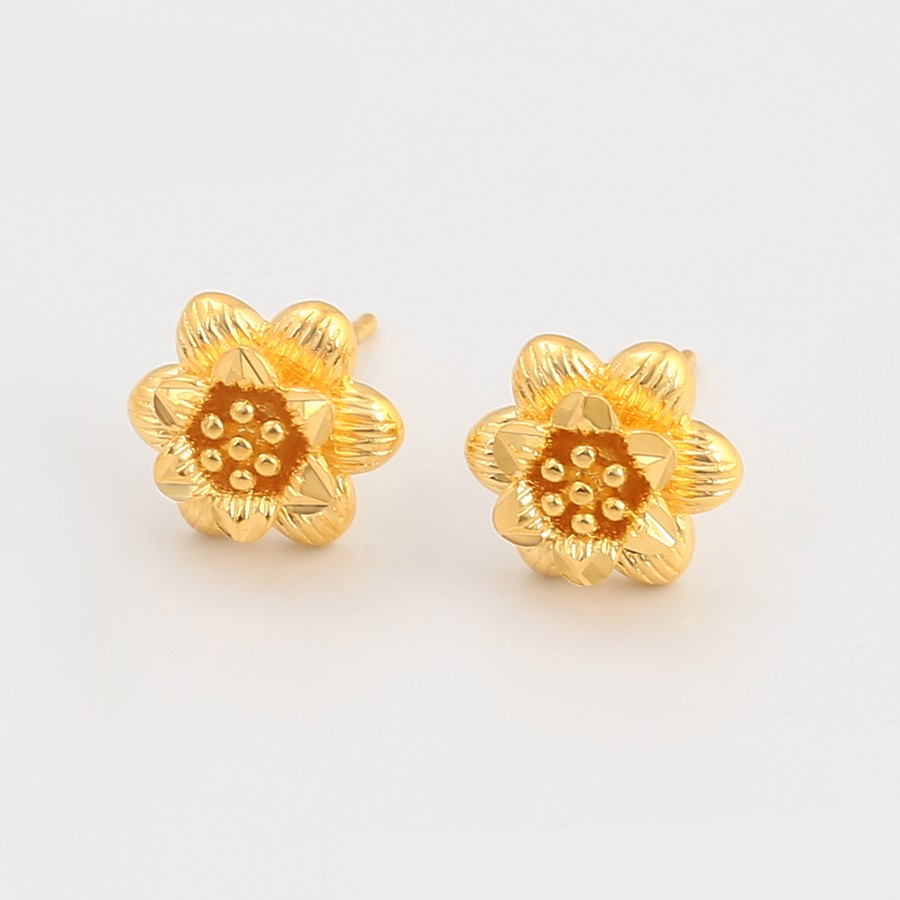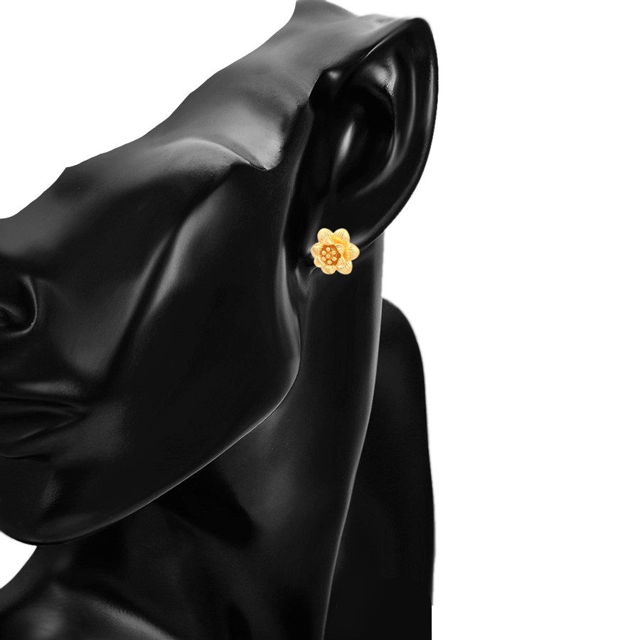 Lindos, delicados y finos aretes elaborado en acero, con doble enchape de oro de 18k, modelo de flor en 3D.