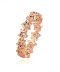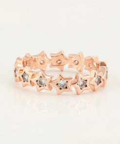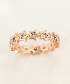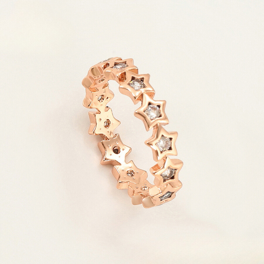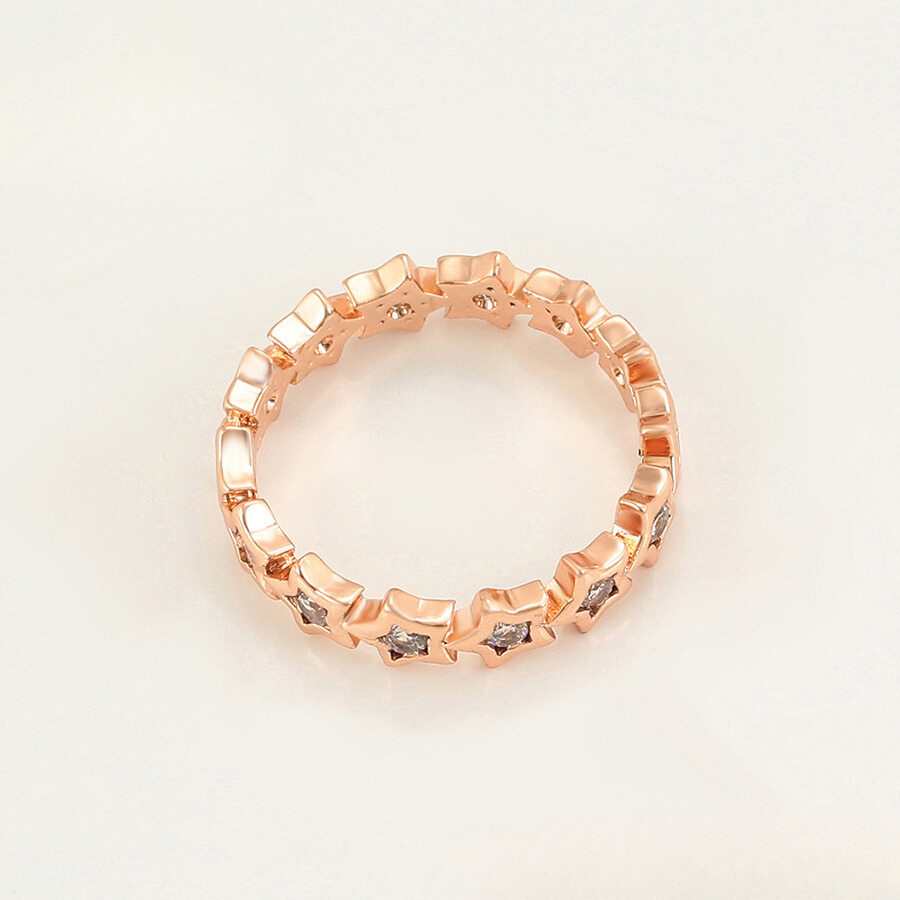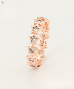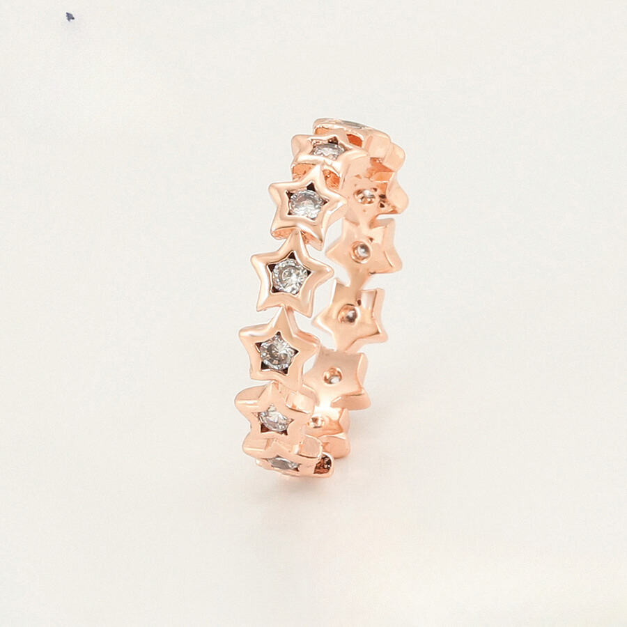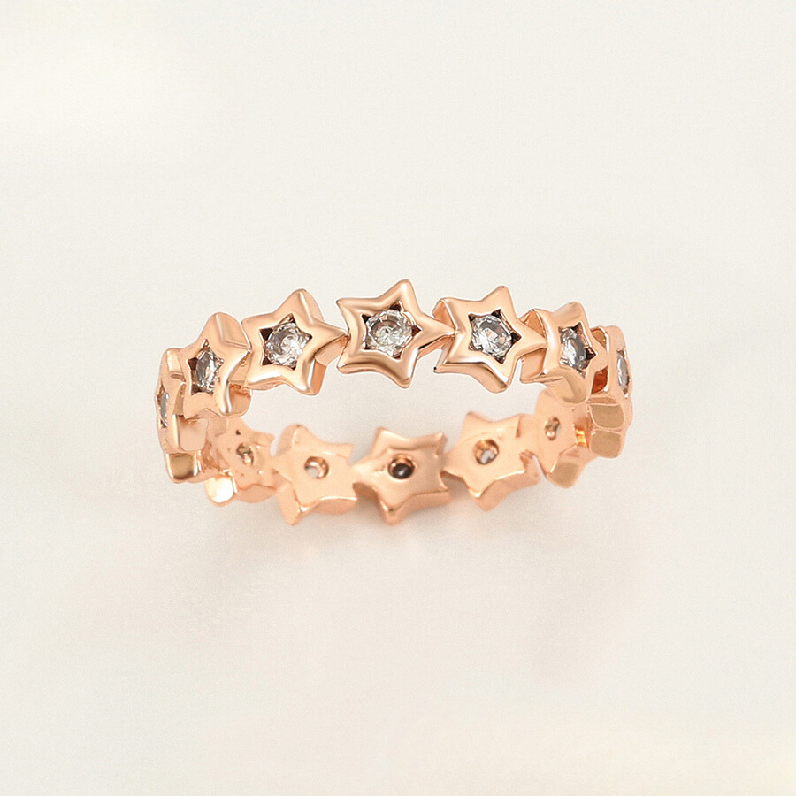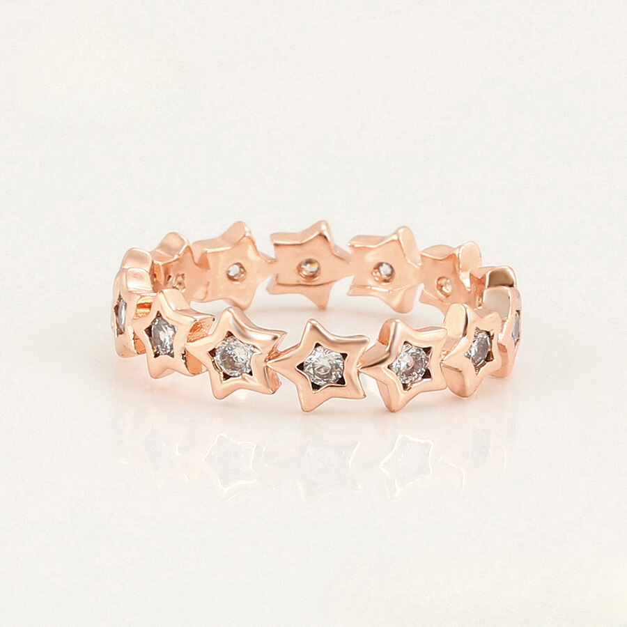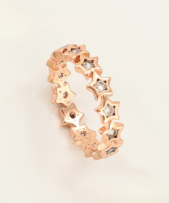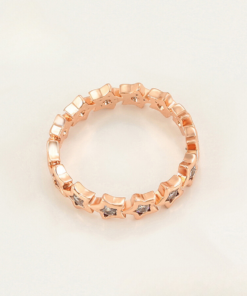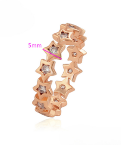 Elegante anillo, elaborado en acero quirúrgico inoxidable, con doble enchape de oro rosé de 18k, e incrustación de cristal.
