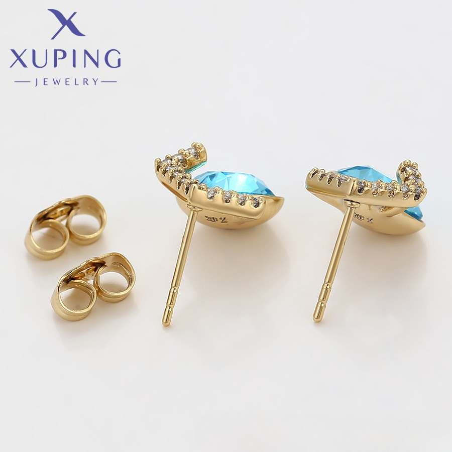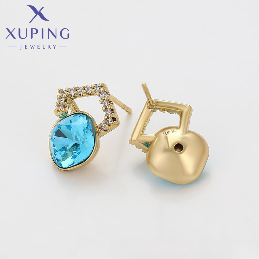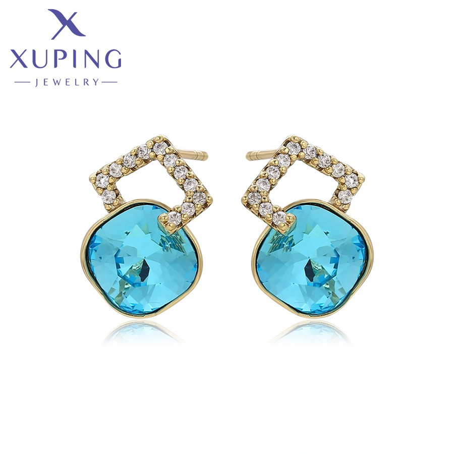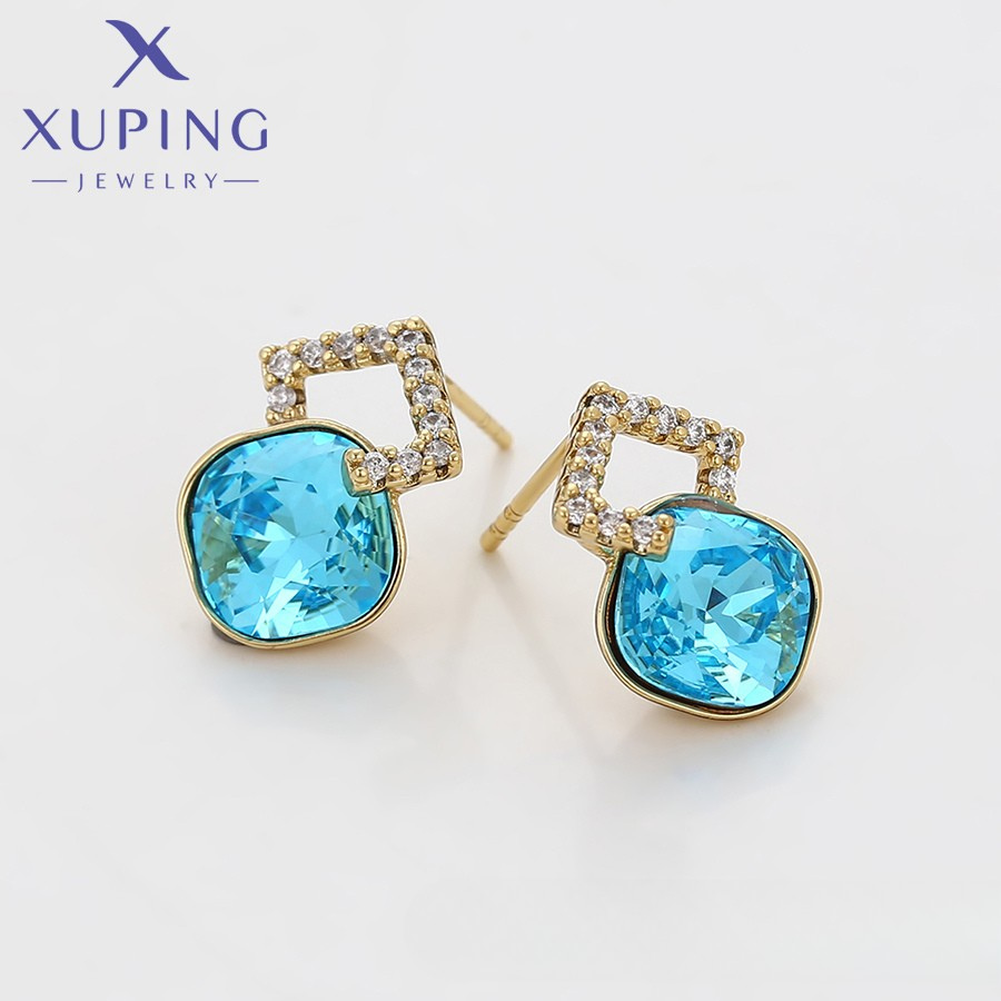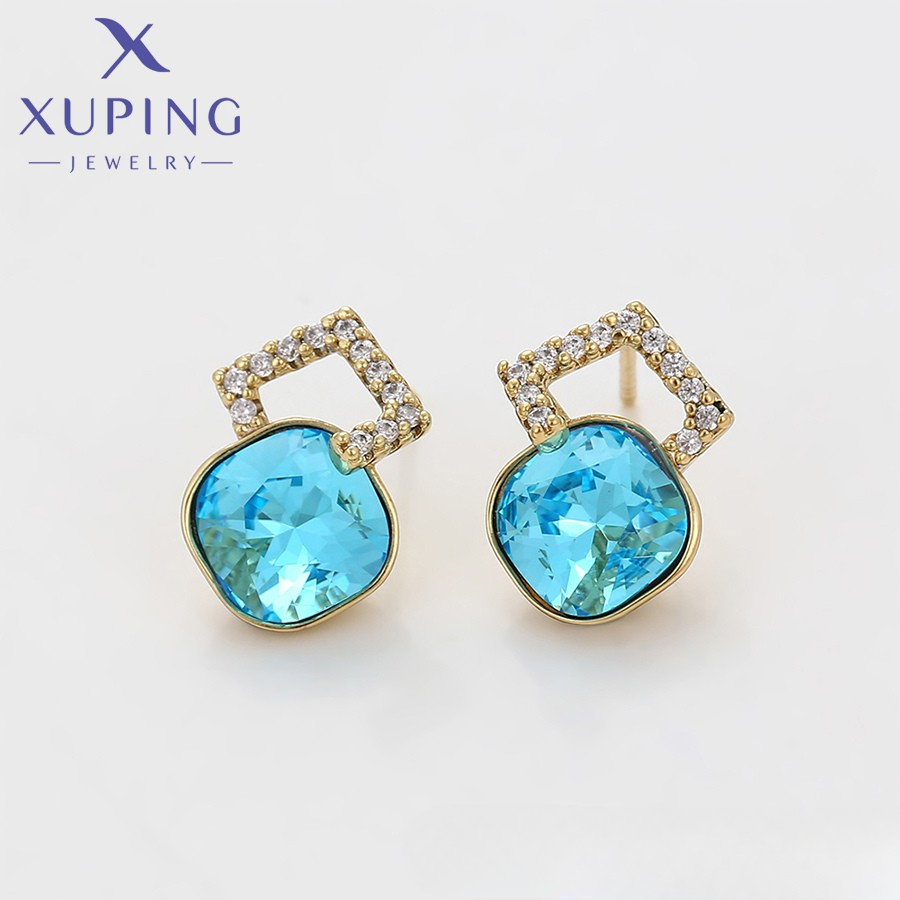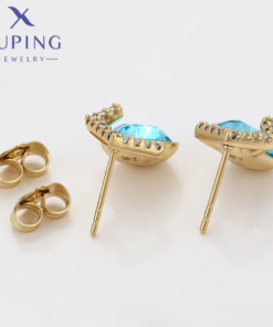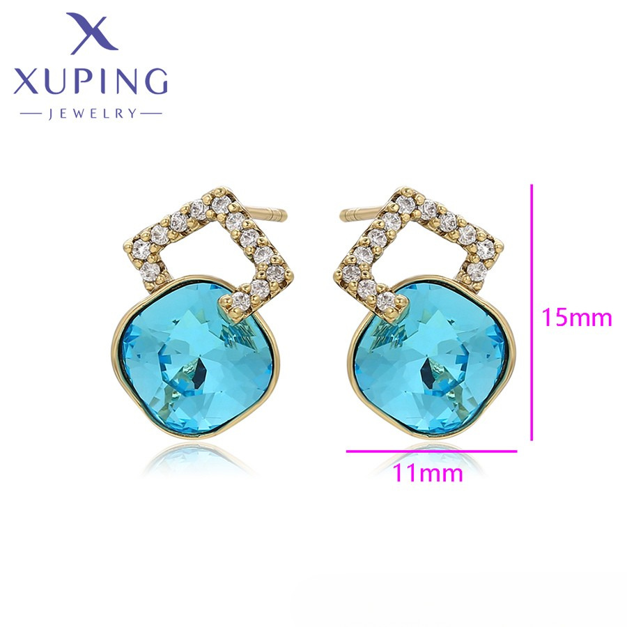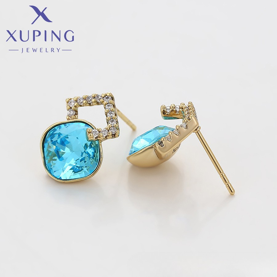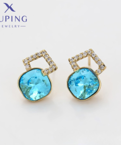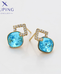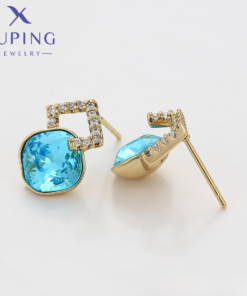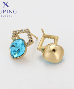 Bellos aretes cristal elaborado en aleación de cobre con doble enchapado de oro dorado de 24k, e incrustación de cristal.