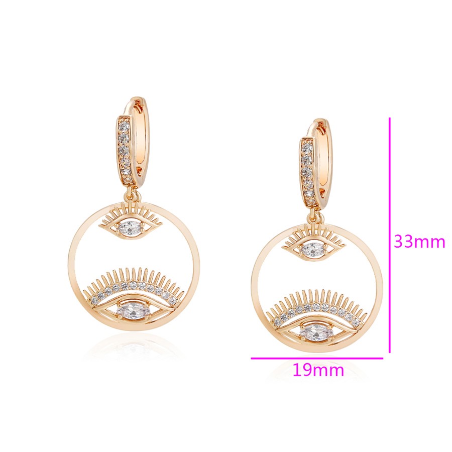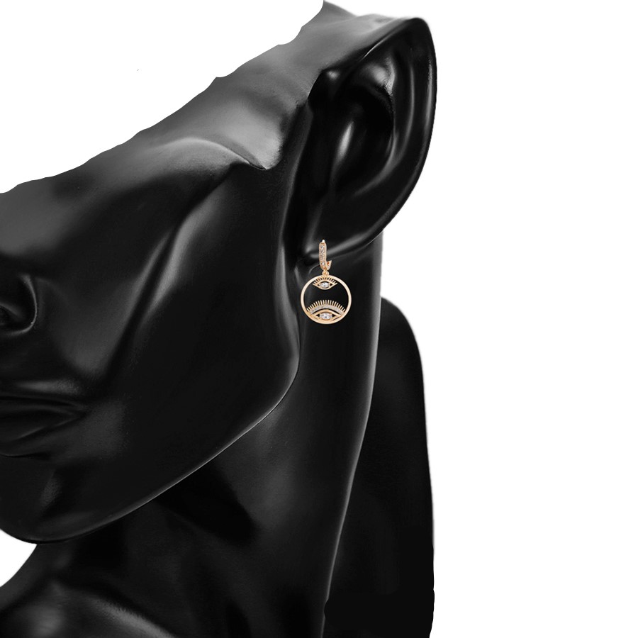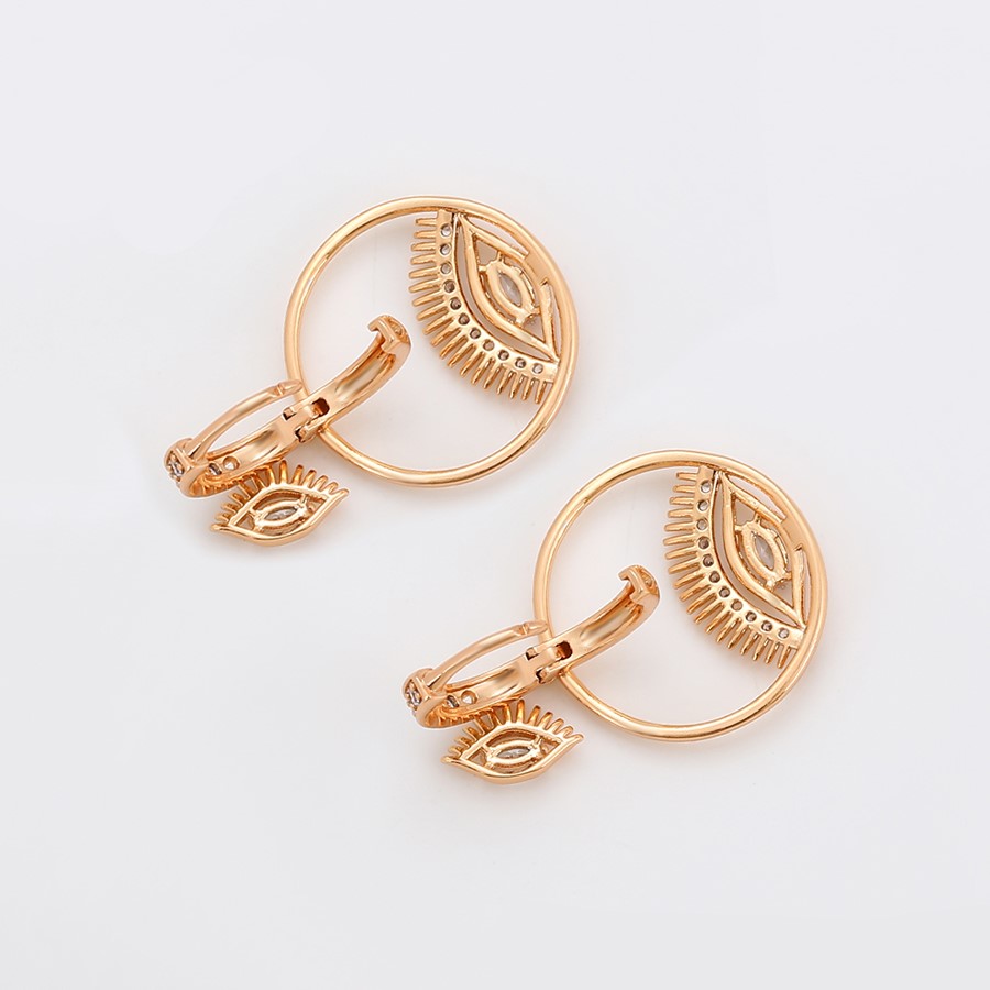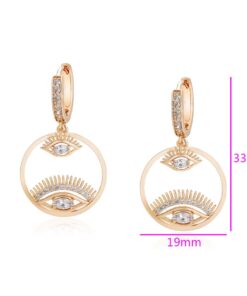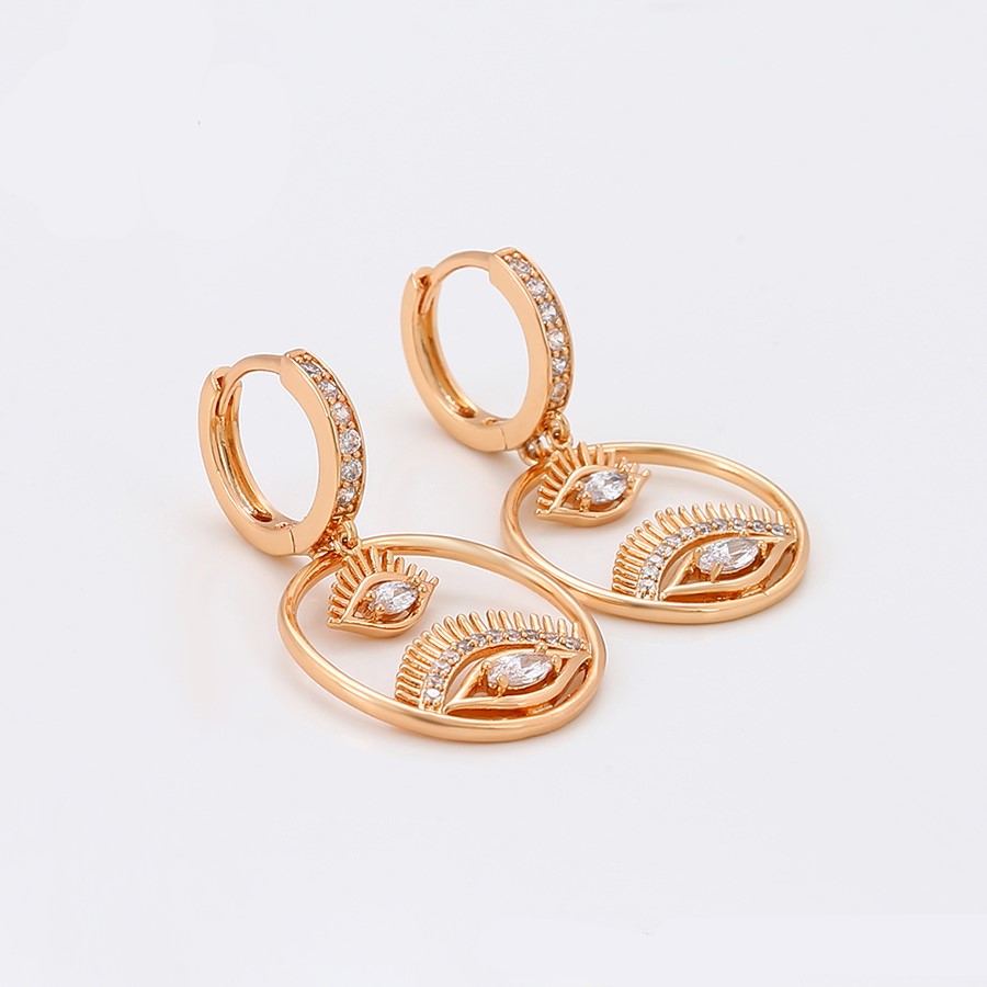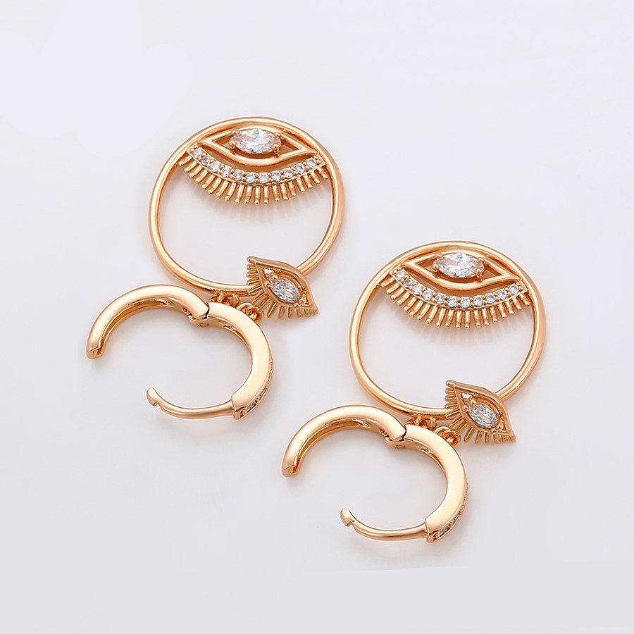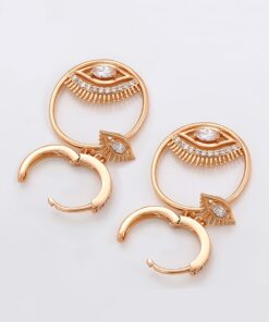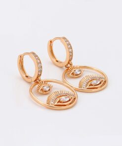 Lindos aretes de acero quirúrgico con doble enchape de oro rosé de 18k, e incrustación de cristal swarovski, con bellos ojos turcos, modelo único y exclusivo.