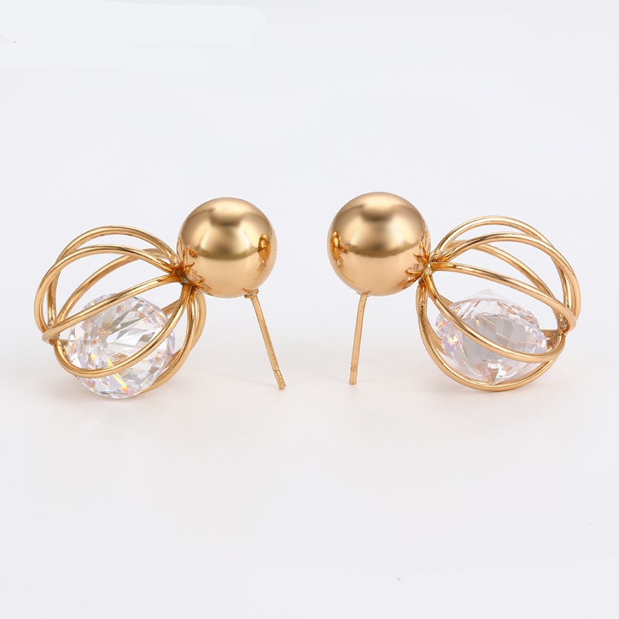 Bellísimos aretes de lujo elaborado en Acero, con doble enchape de Oro Rosé de 18k, tiene dos bellísimos cristales swarovski tornasolados refractarios.