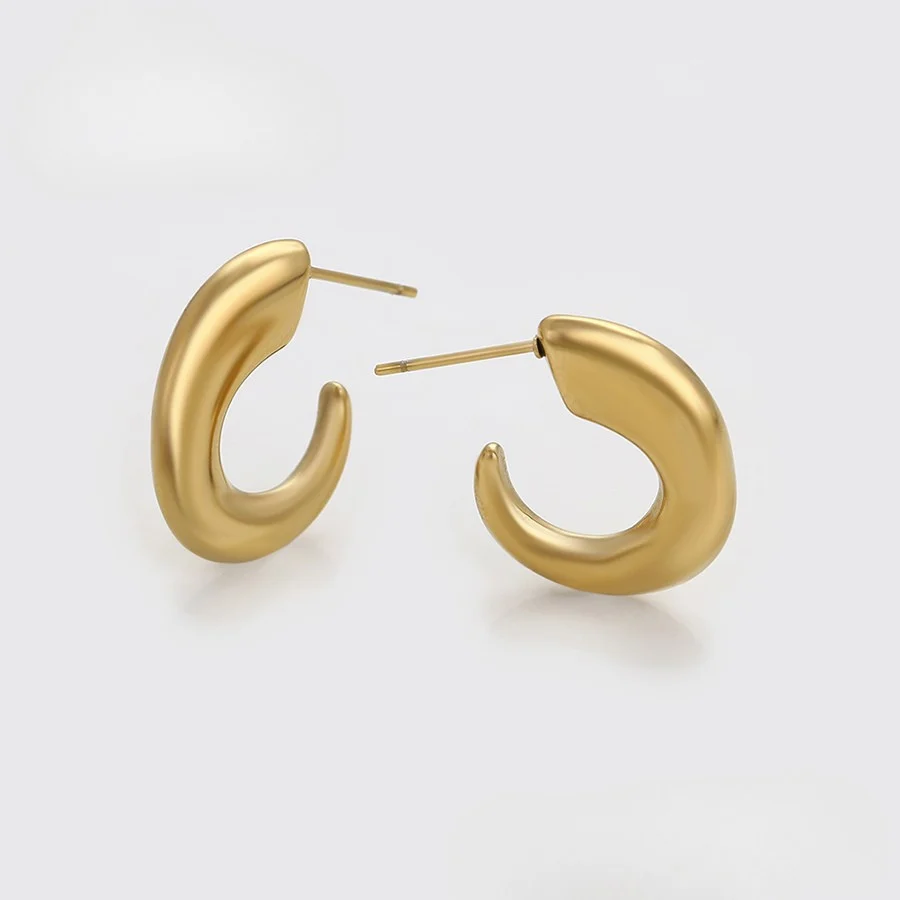 Hermosos aretes elaborado en aleación con doble enchapado de oro de 24k, modelo chunky.