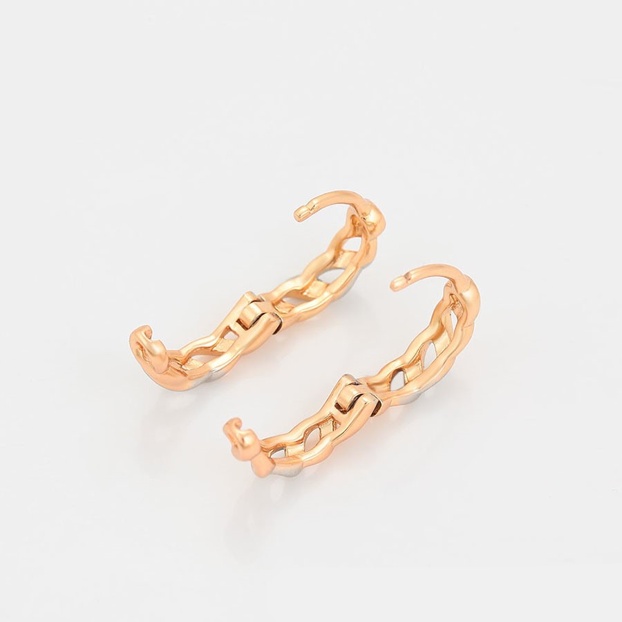 Hermosos, elegantes y finos aretes elaborado en acero, con doble enchape de oro rosé, diseño único y exclusivo.