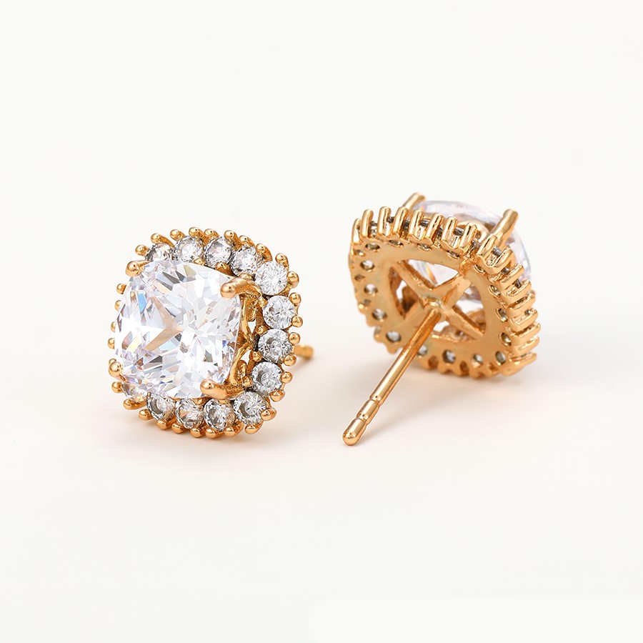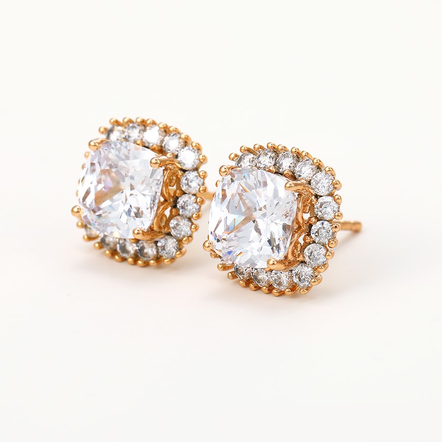 Hermosos aretes elaborado en auténtico acero, con doble enchape de oro rosé de 18k, e incrustación de cristal.
