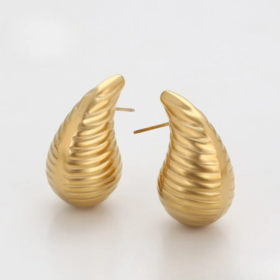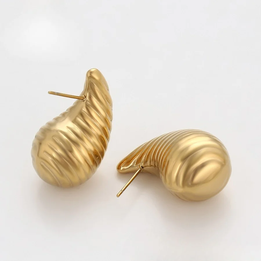 Hermosos aretes elaborado en acero quirúrgico 316l, con doble enchape de oro 18k, modelo chunky.
