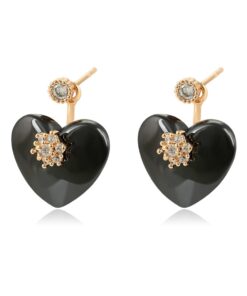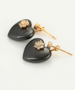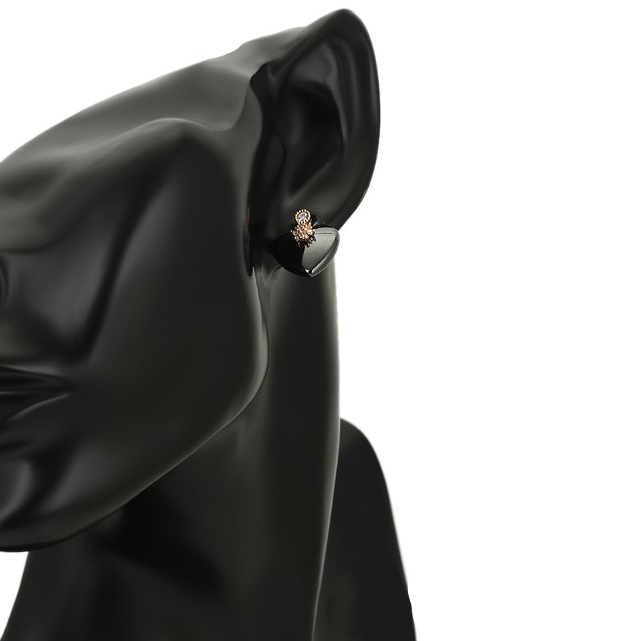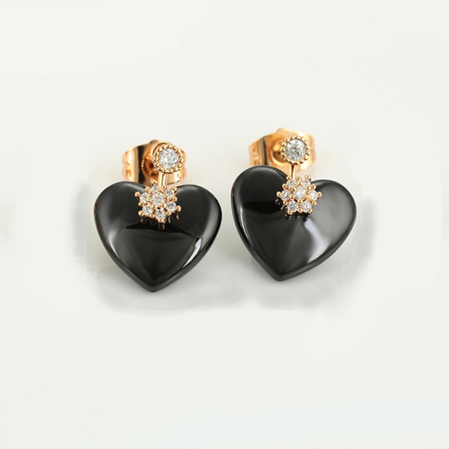 Elegantes y bellos aretes elaborado en acero quirúrgico 316L, con doble baño de oro de 18k, material cerámica color negro, e incrustación de cristales swarovski.