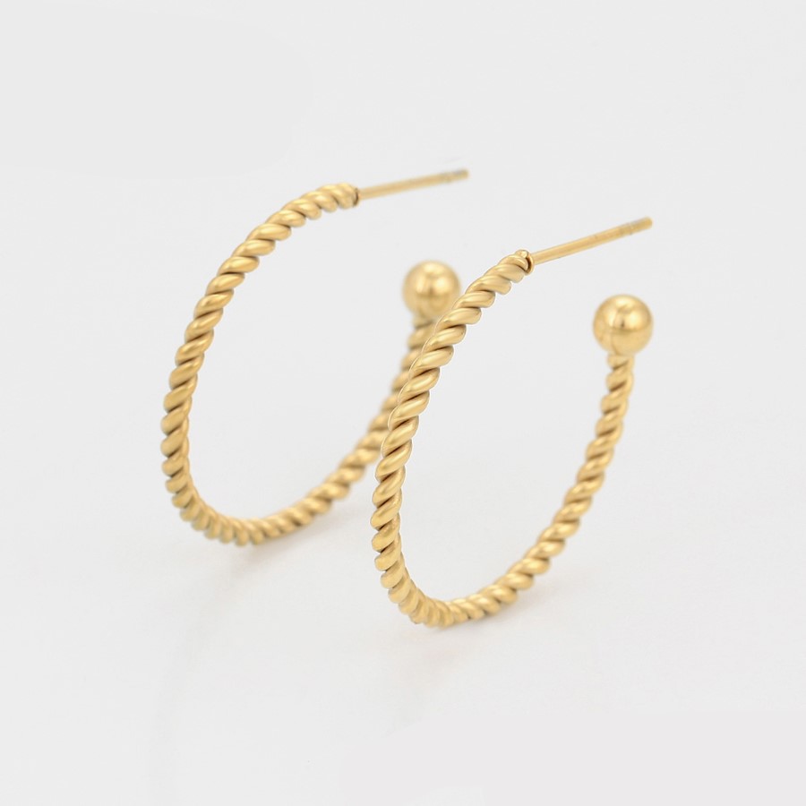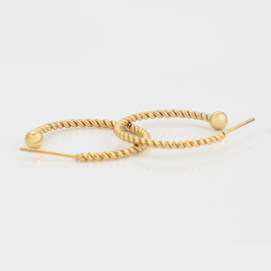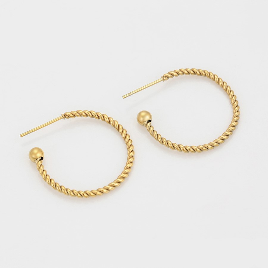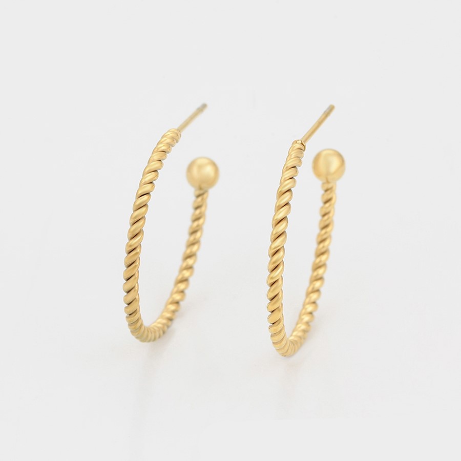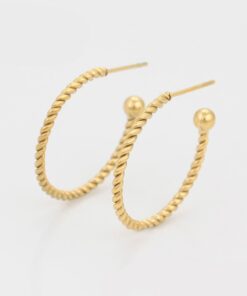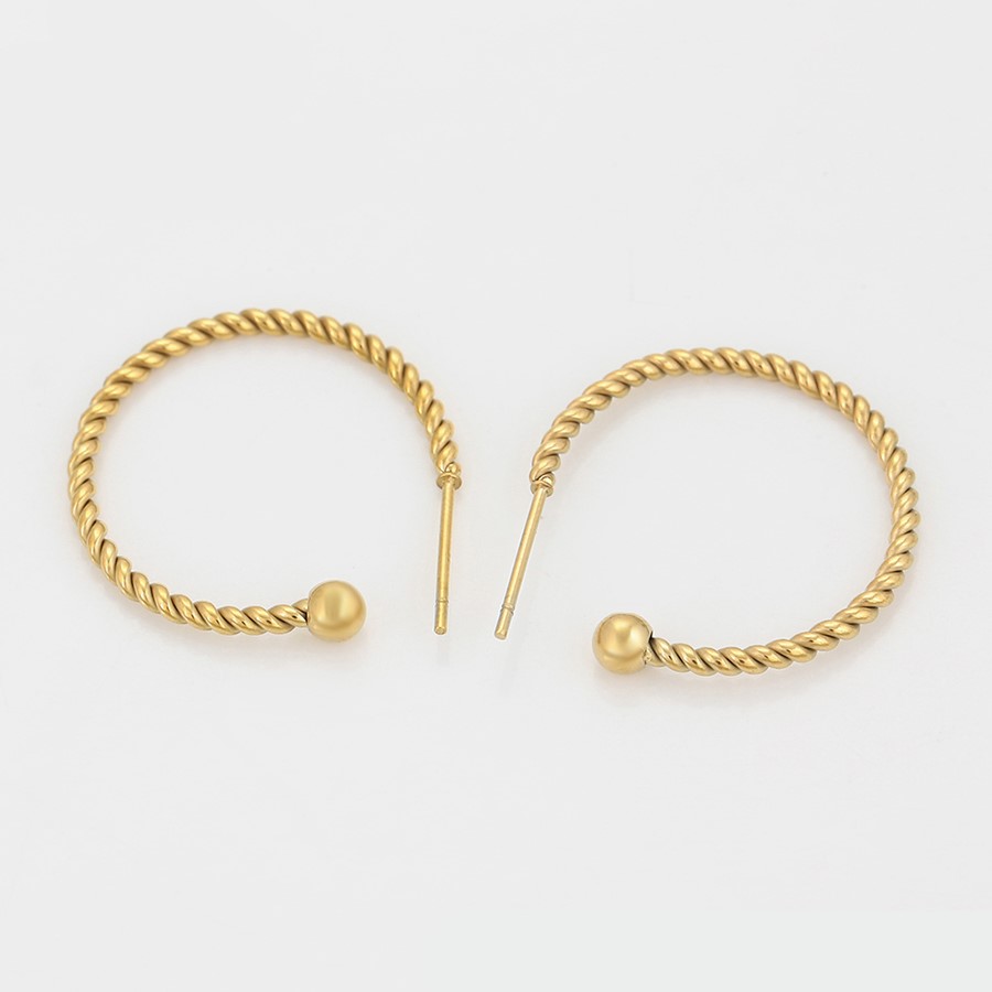 Hermosos aretes elaborado en acero quirúrgico 316l, con doble baño de oro de 18k, diseño entorchado, modelo exclusivo.