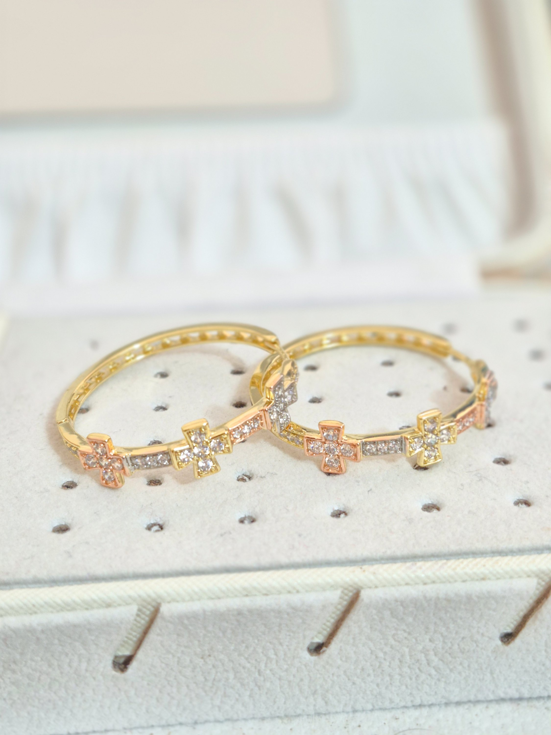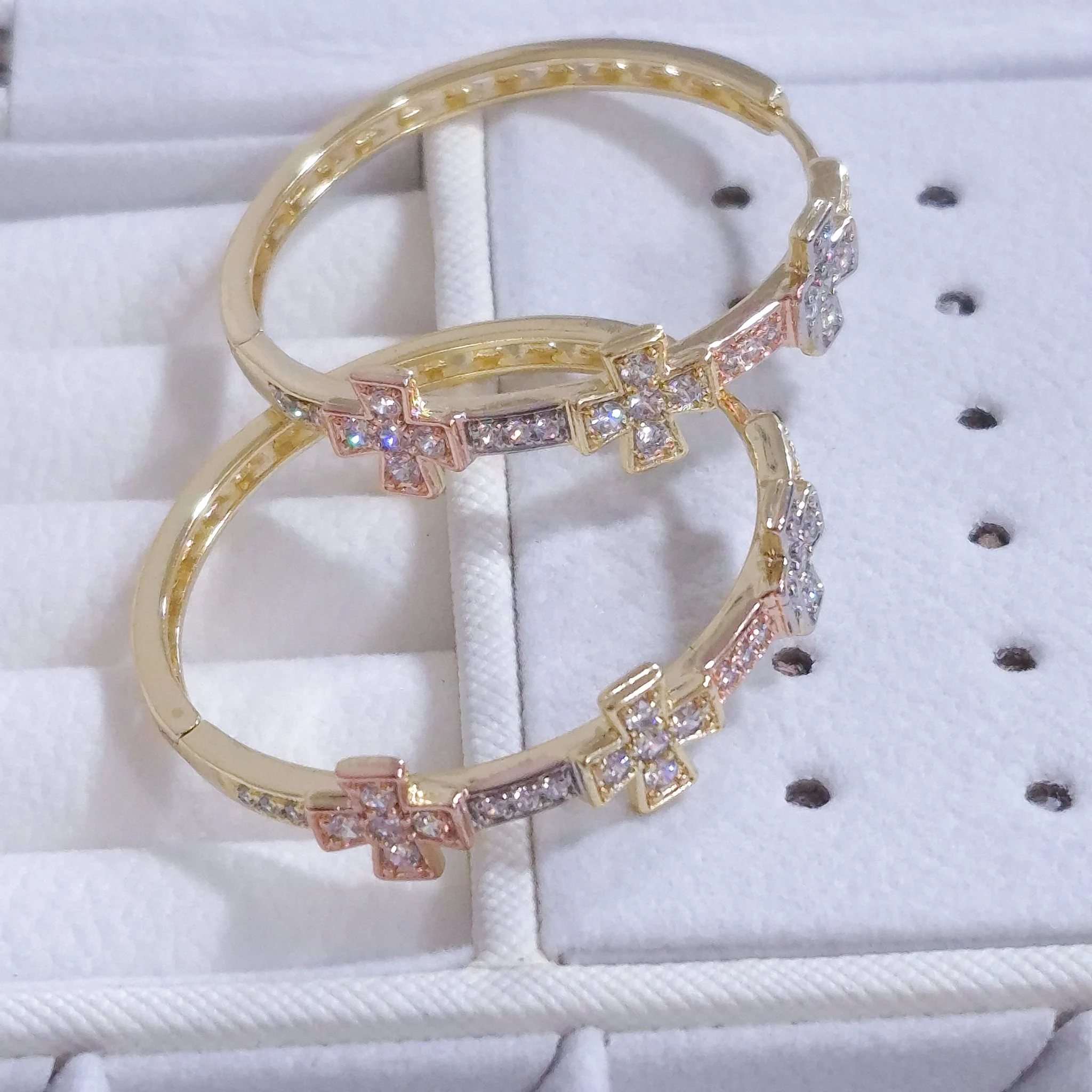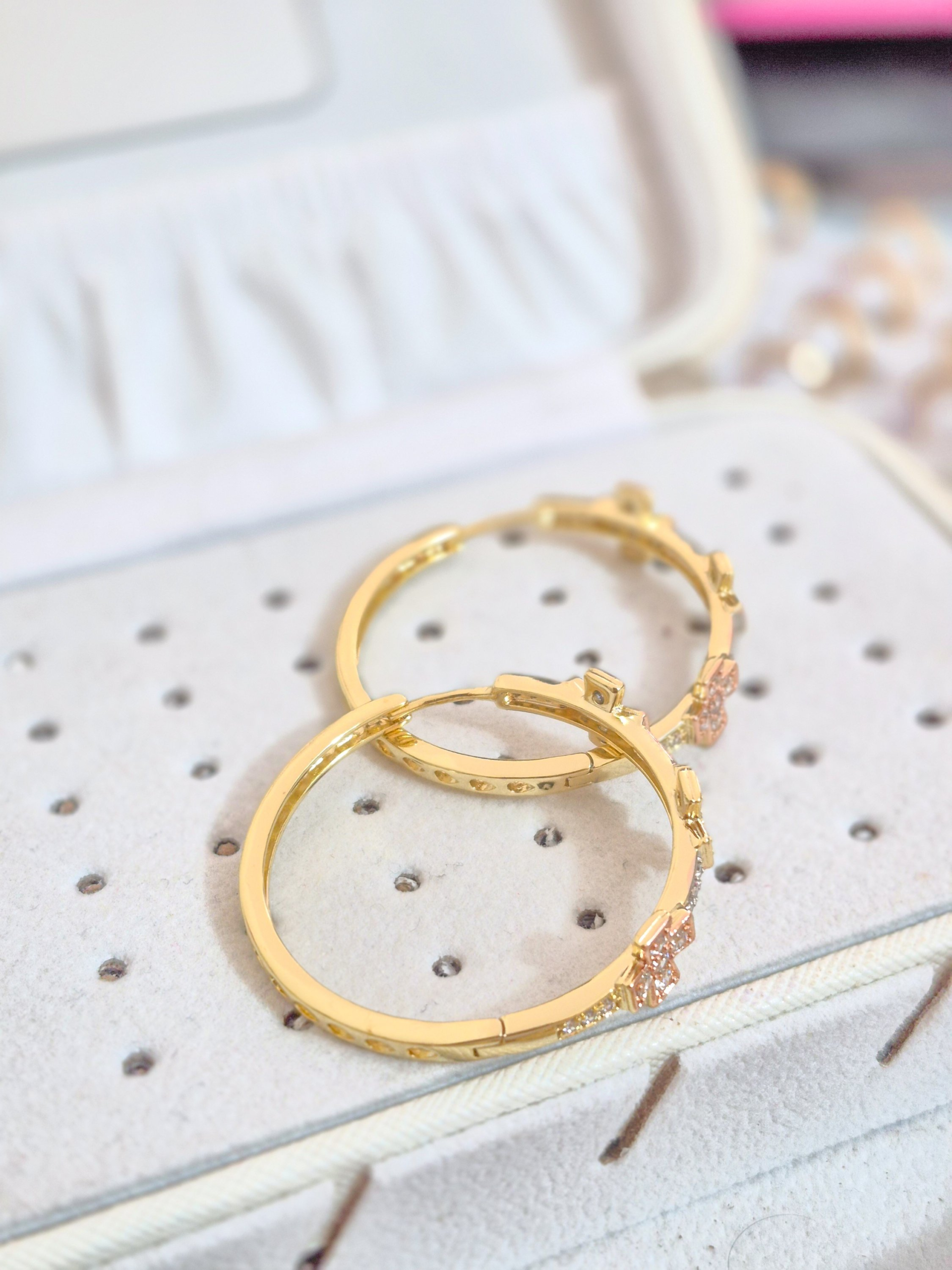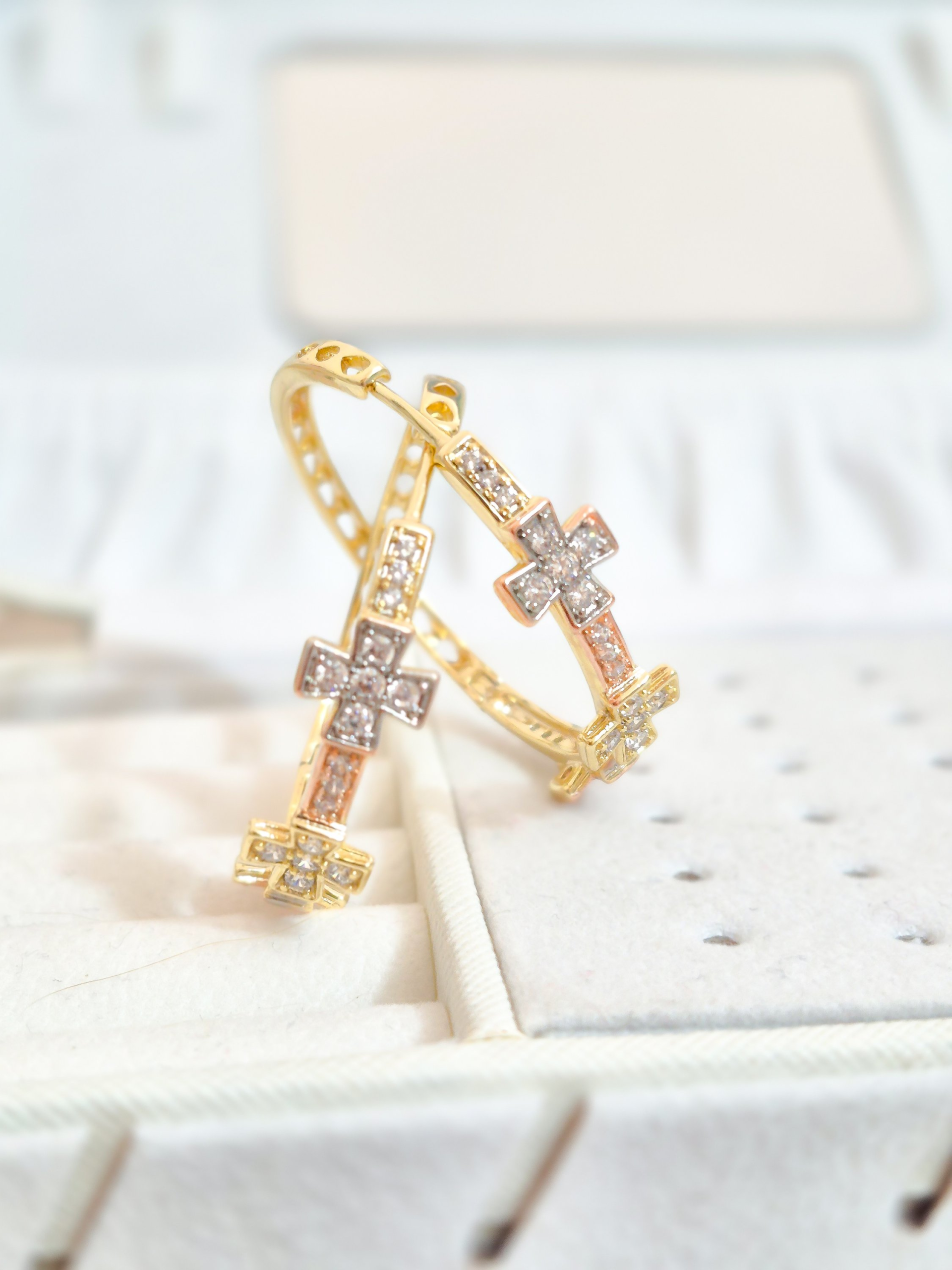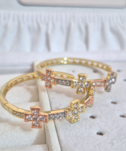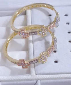 Lindas argollas elaborada en acero quirúrgico 316l con enchape de oro dorado de 24k e incrustación de cristal swarovski.