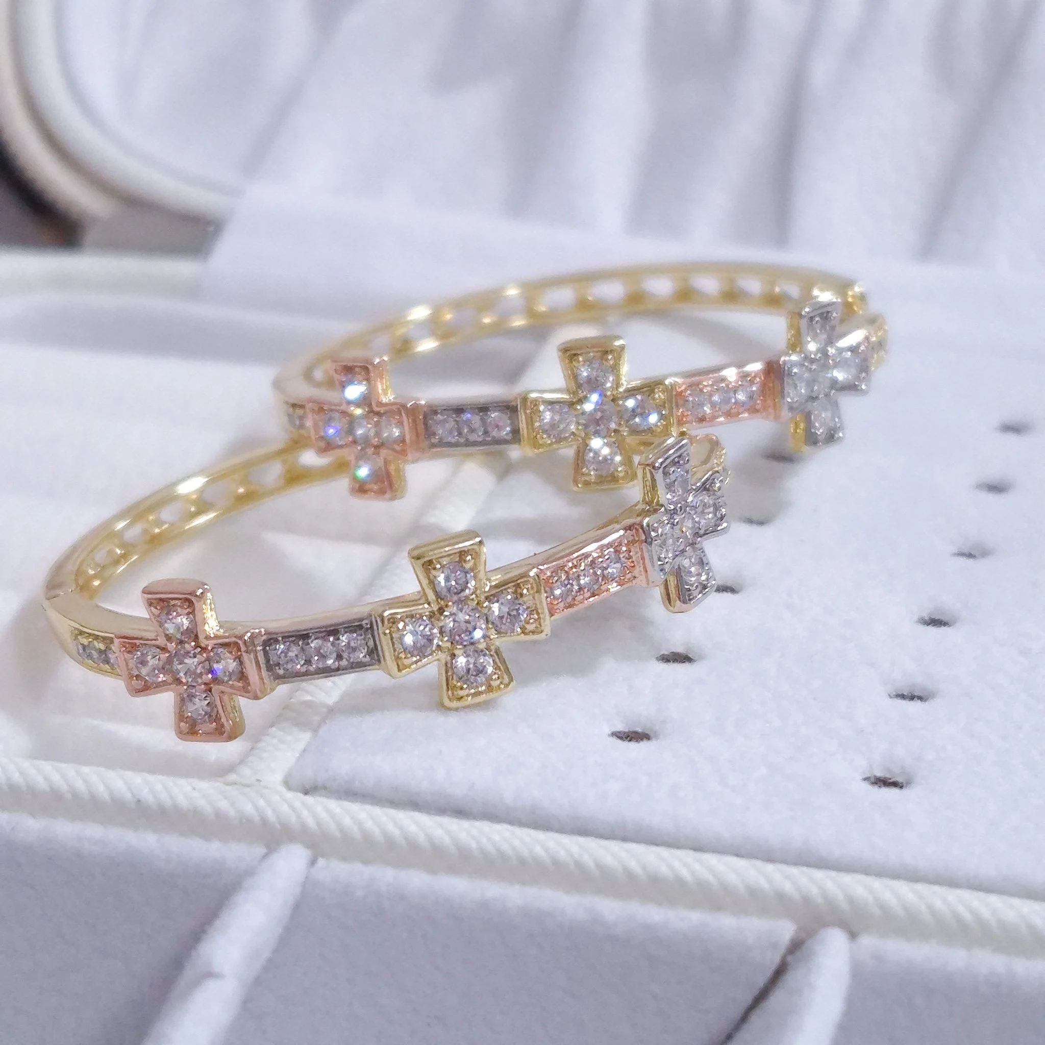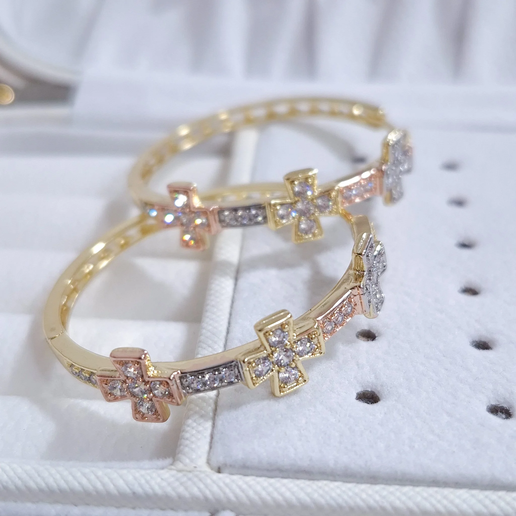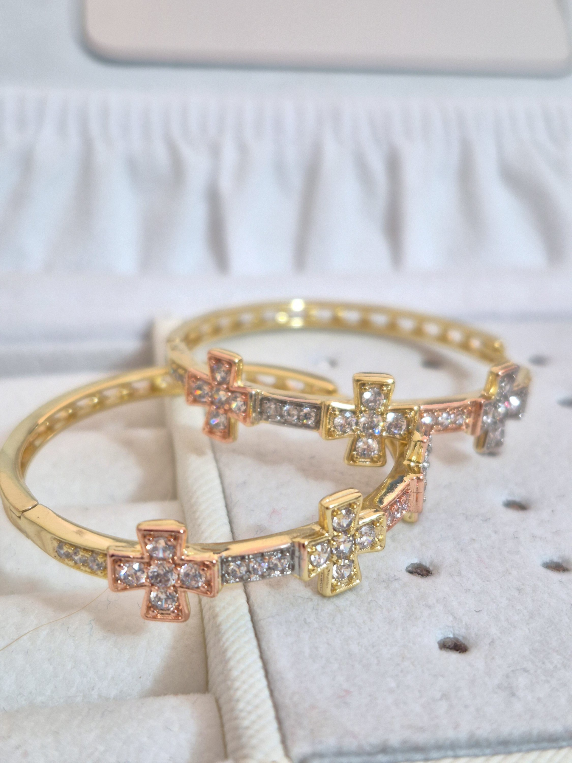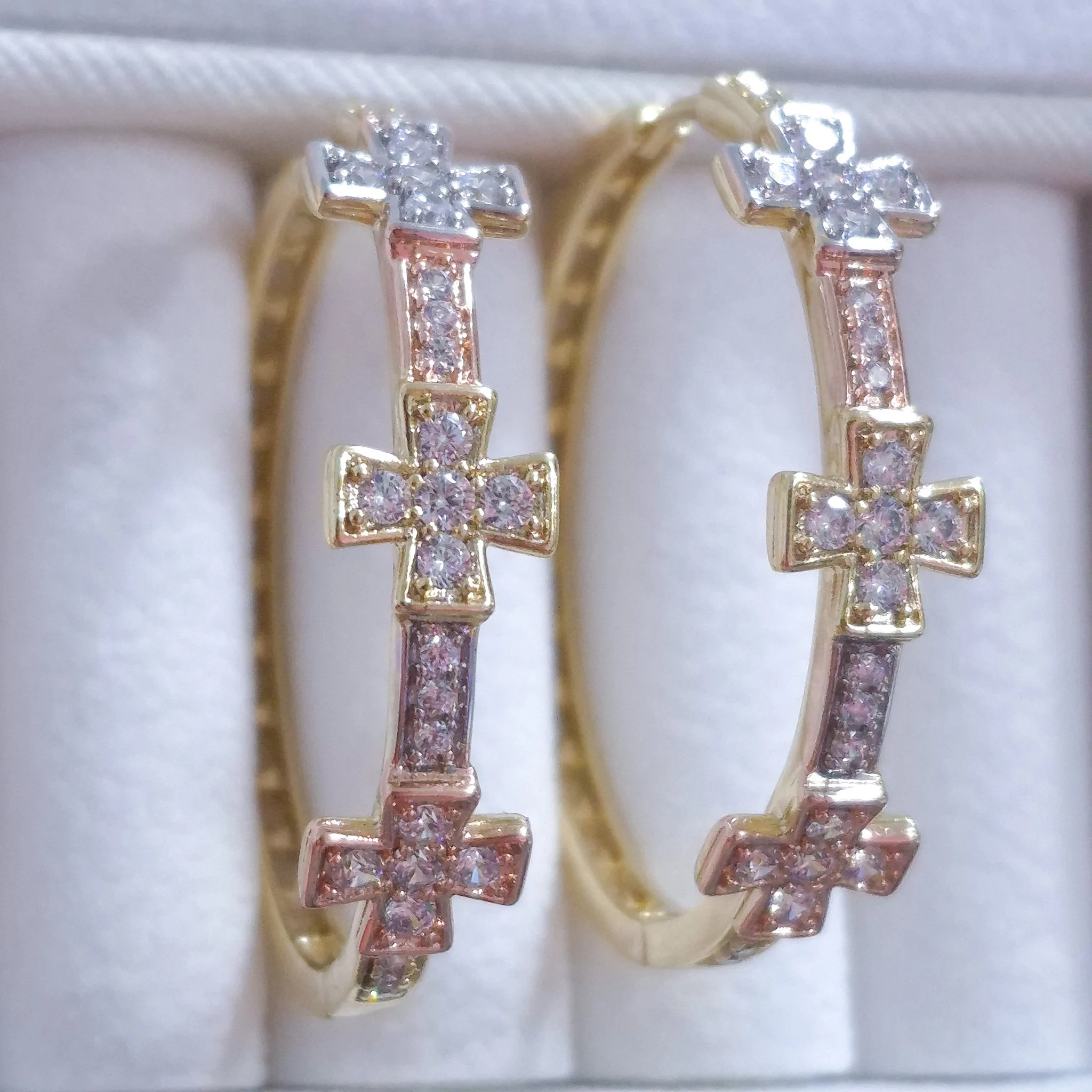 Lindas argollas elaborada en acero quirúrgico 316l con enchape de oro dorado de 24k e incrustación de cristal swarovski.