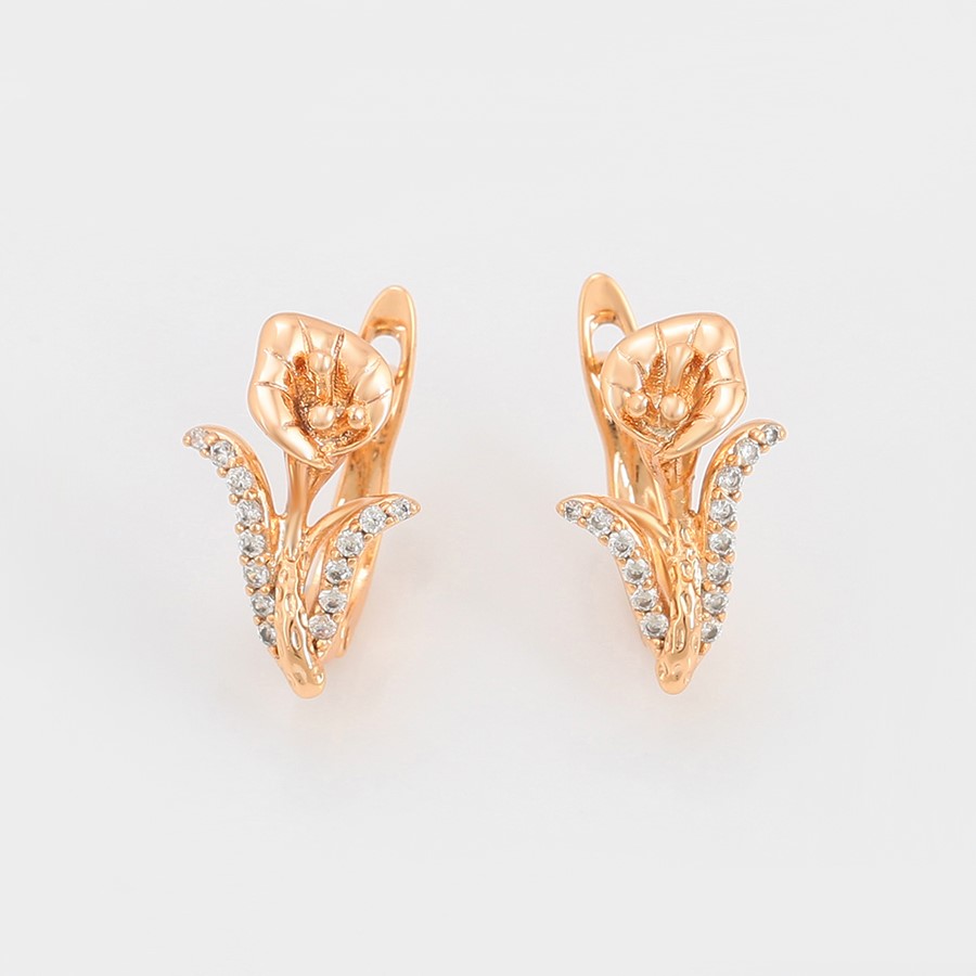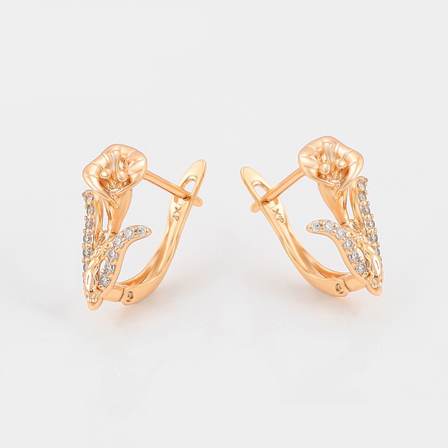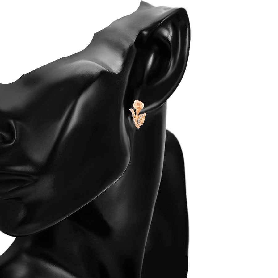 Hermosos aretes elaborado en acero, con doble enchape de oro rosé de 18k, e incrustación de cristal.