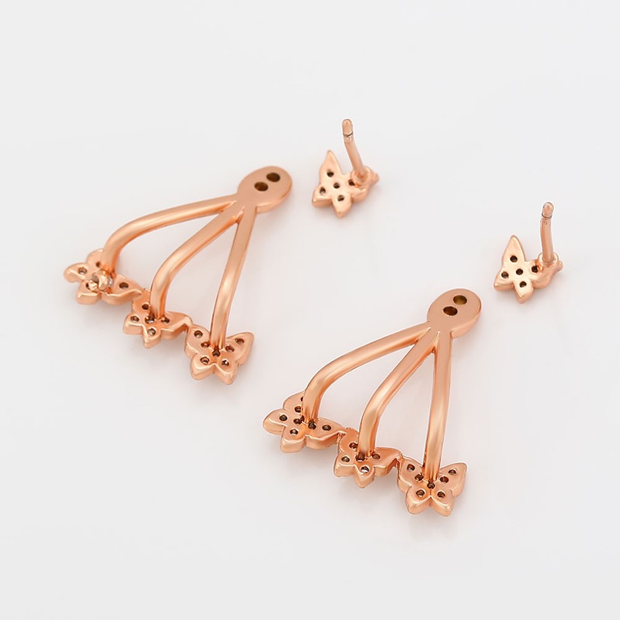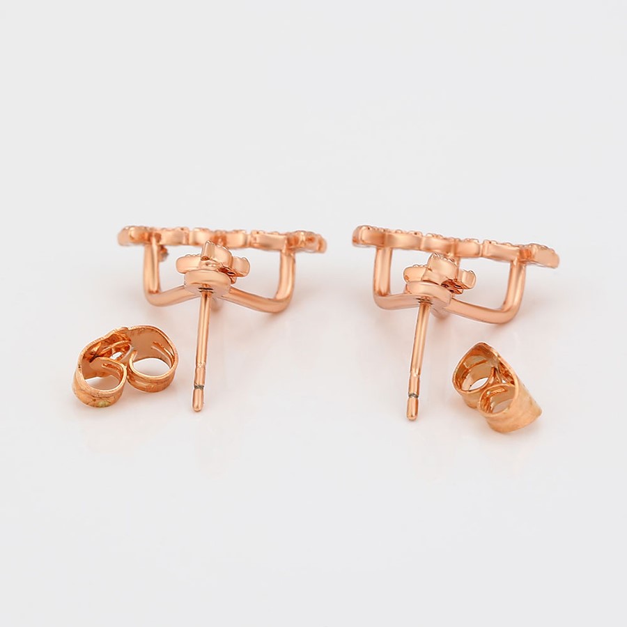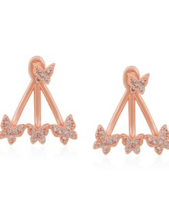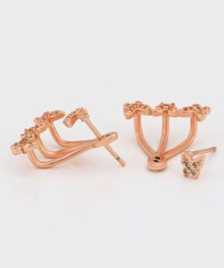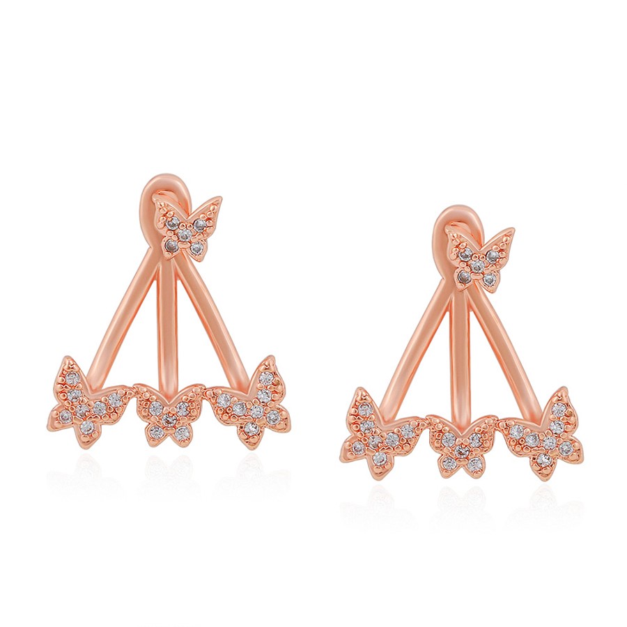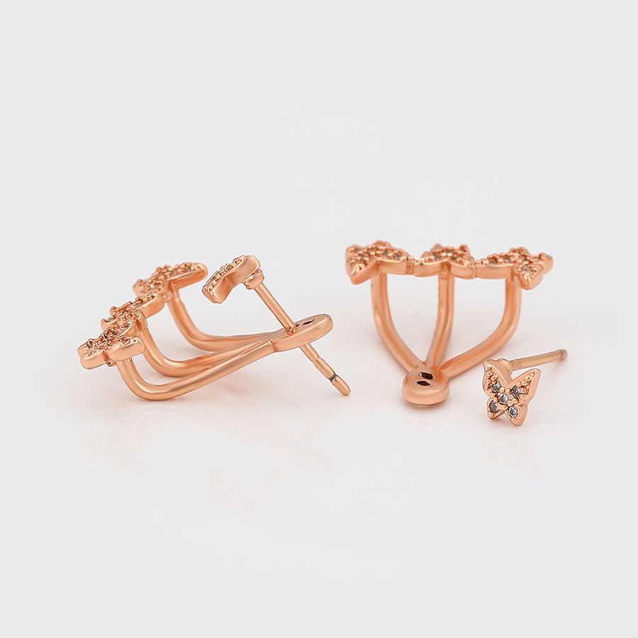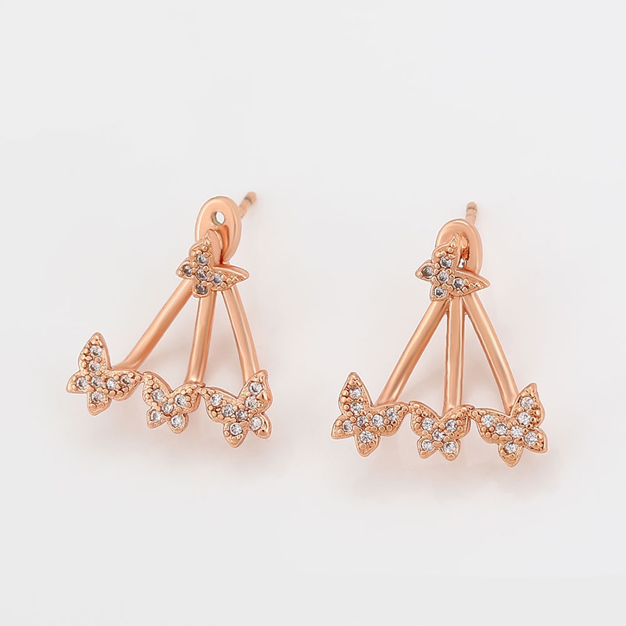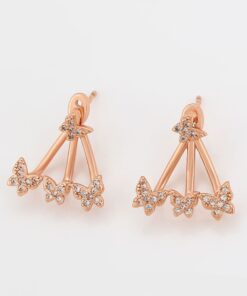Bellísimos aretes compuestos elaborado en Acero 316L, con doble baño de Oro Rosa de 18K, e incrustaciones de cristal swarovski, diseño de maripositas.
