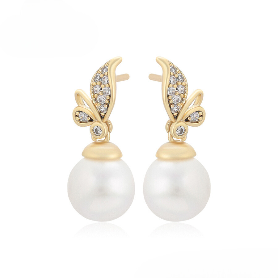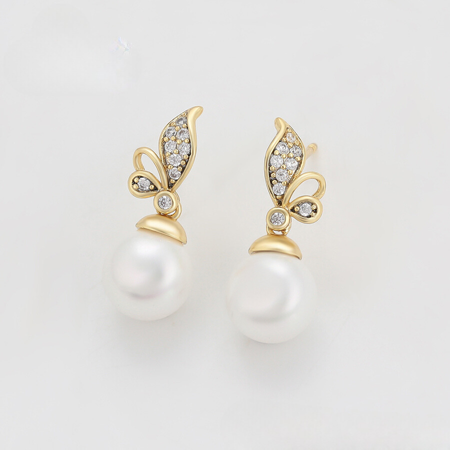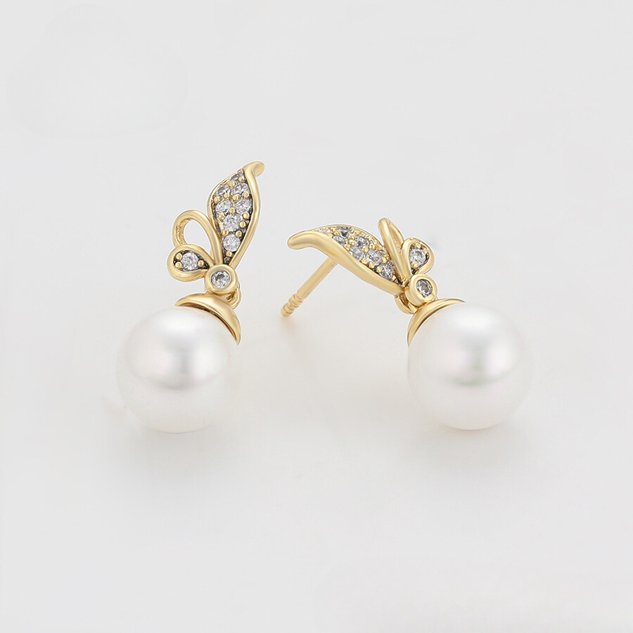 Hermosos aretes elaborado en acero con doble enchape de oro dorado de 18k, e incrustación de cristal.