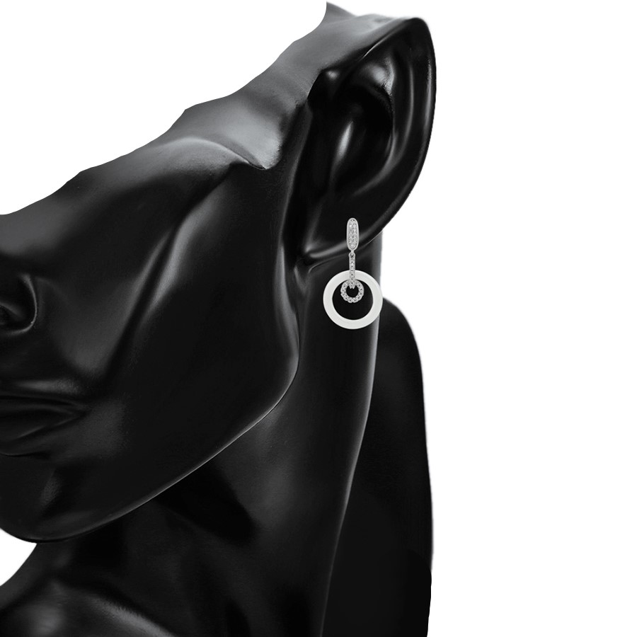 Bellísimos aretes elaborado en Acero, con doble enchapede plata 925, e incrustación de cristal.