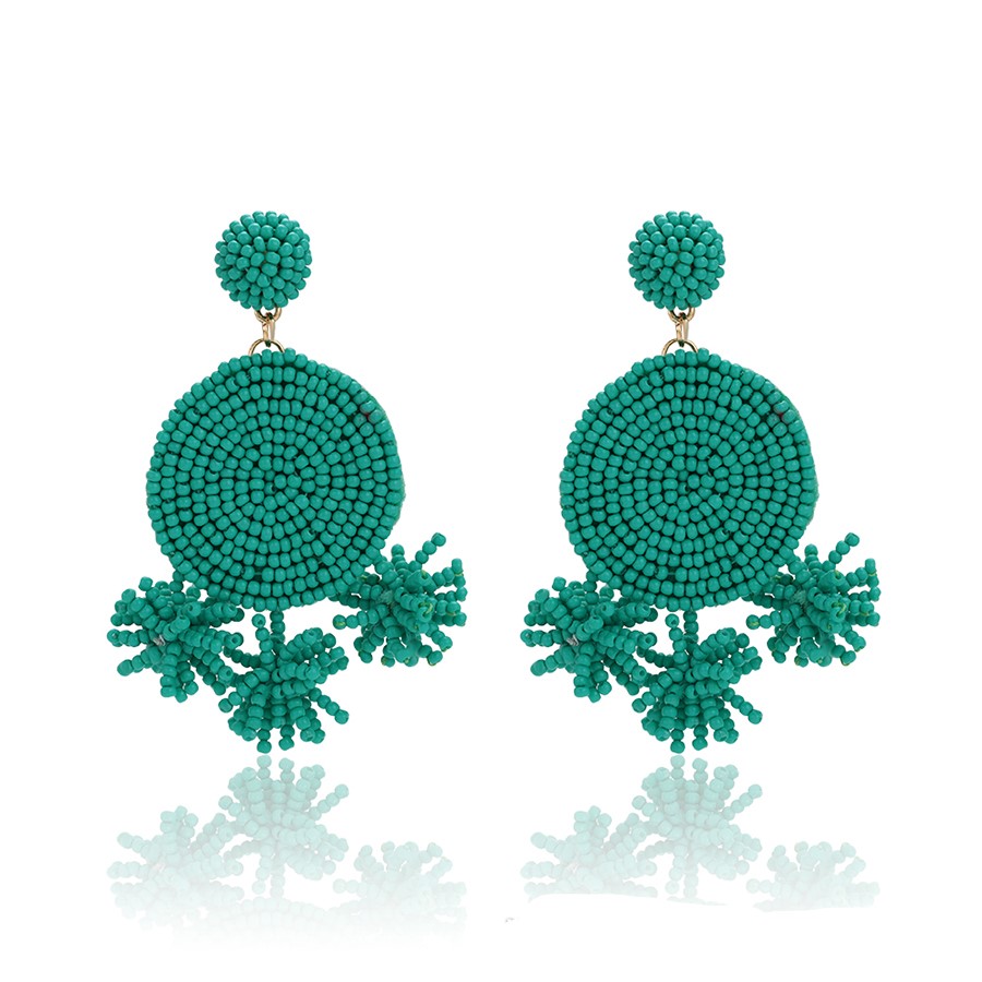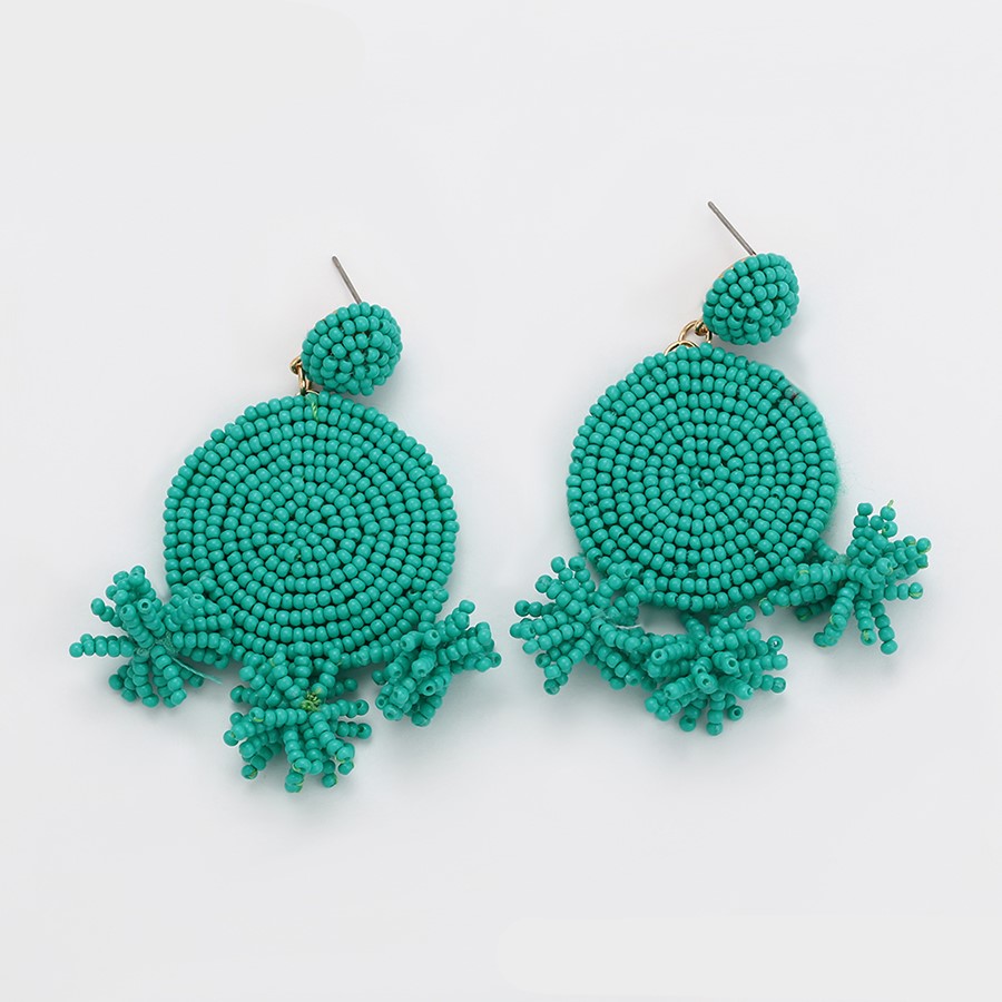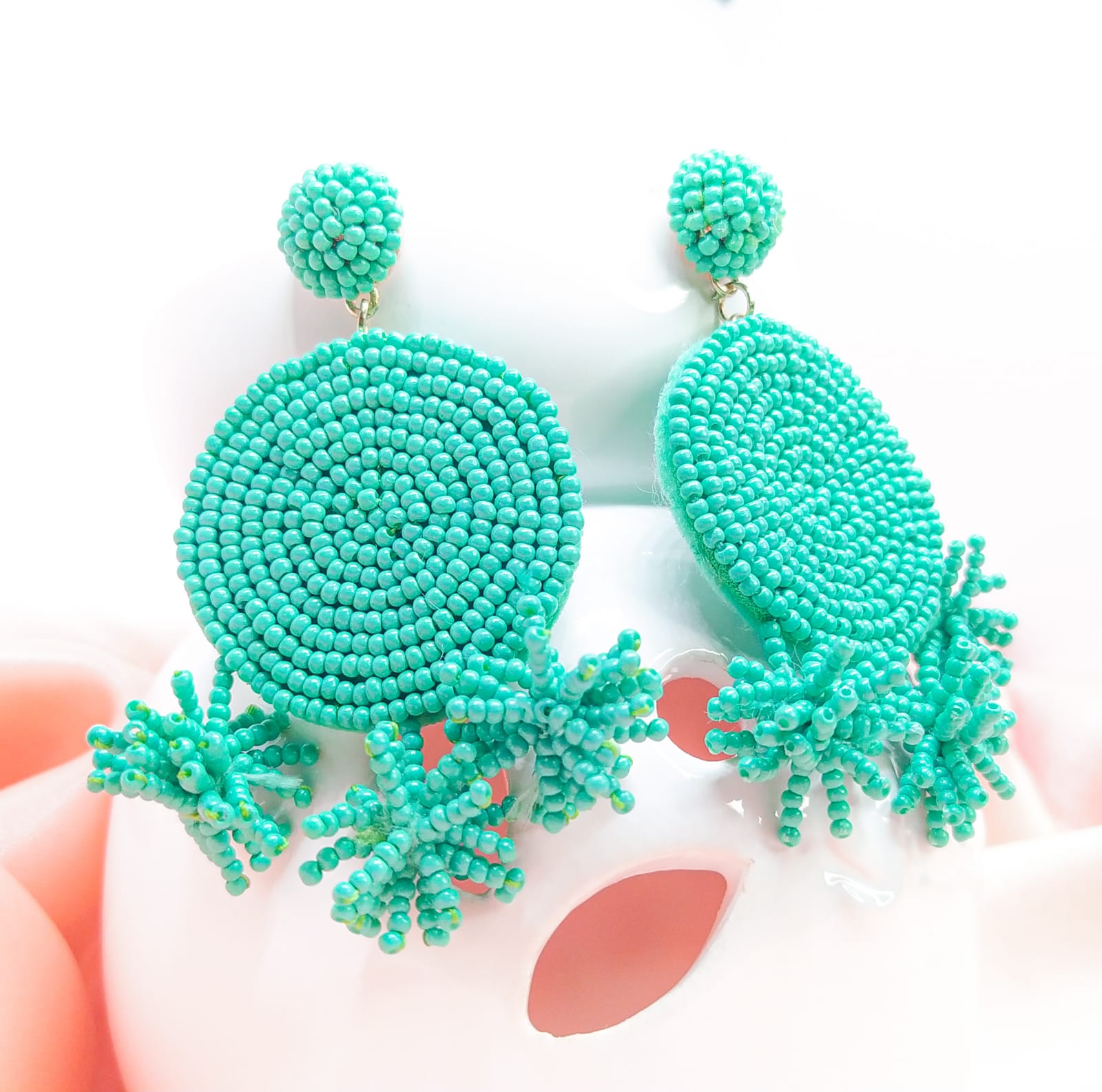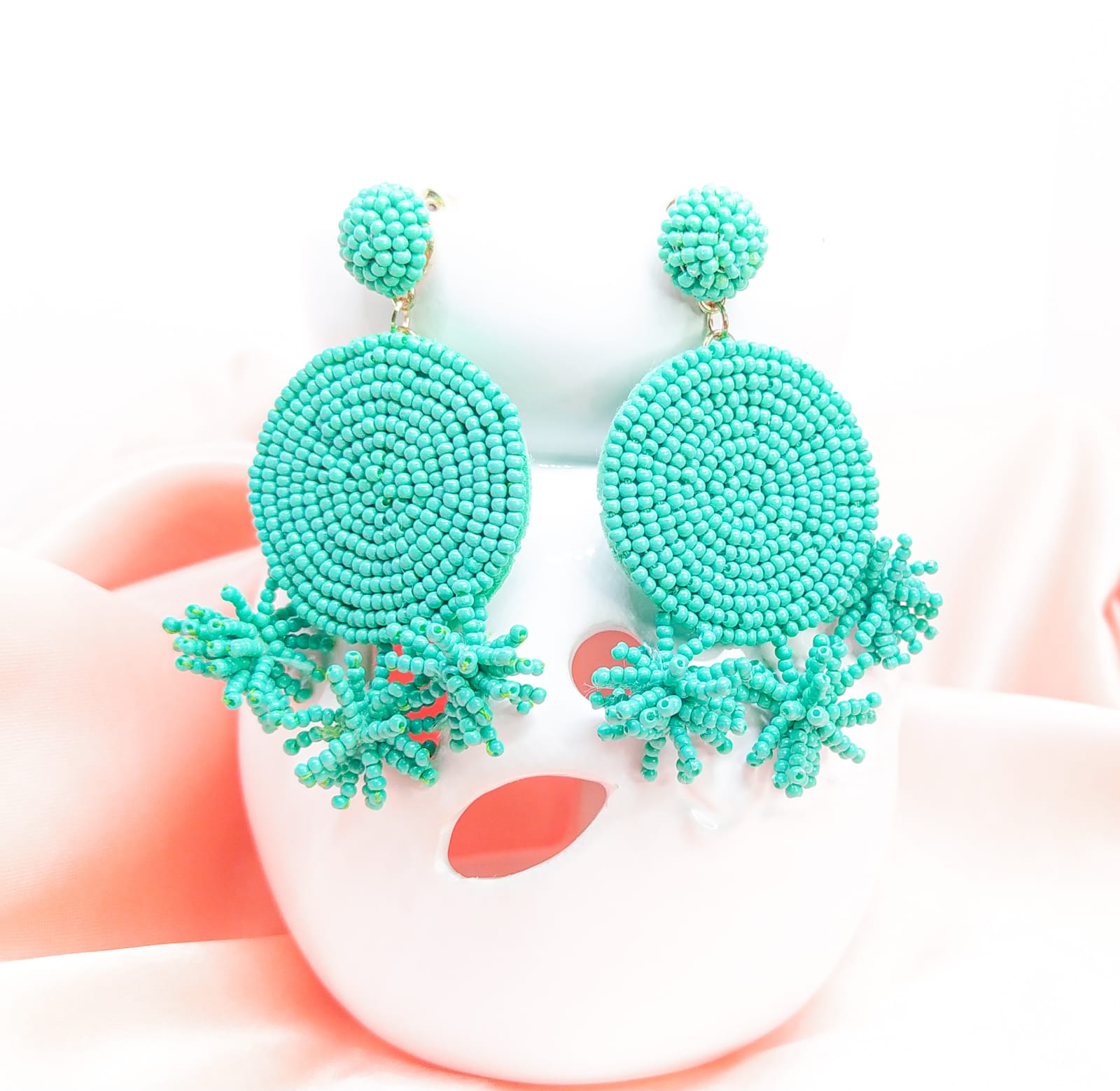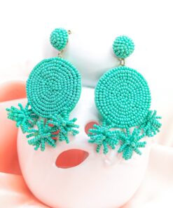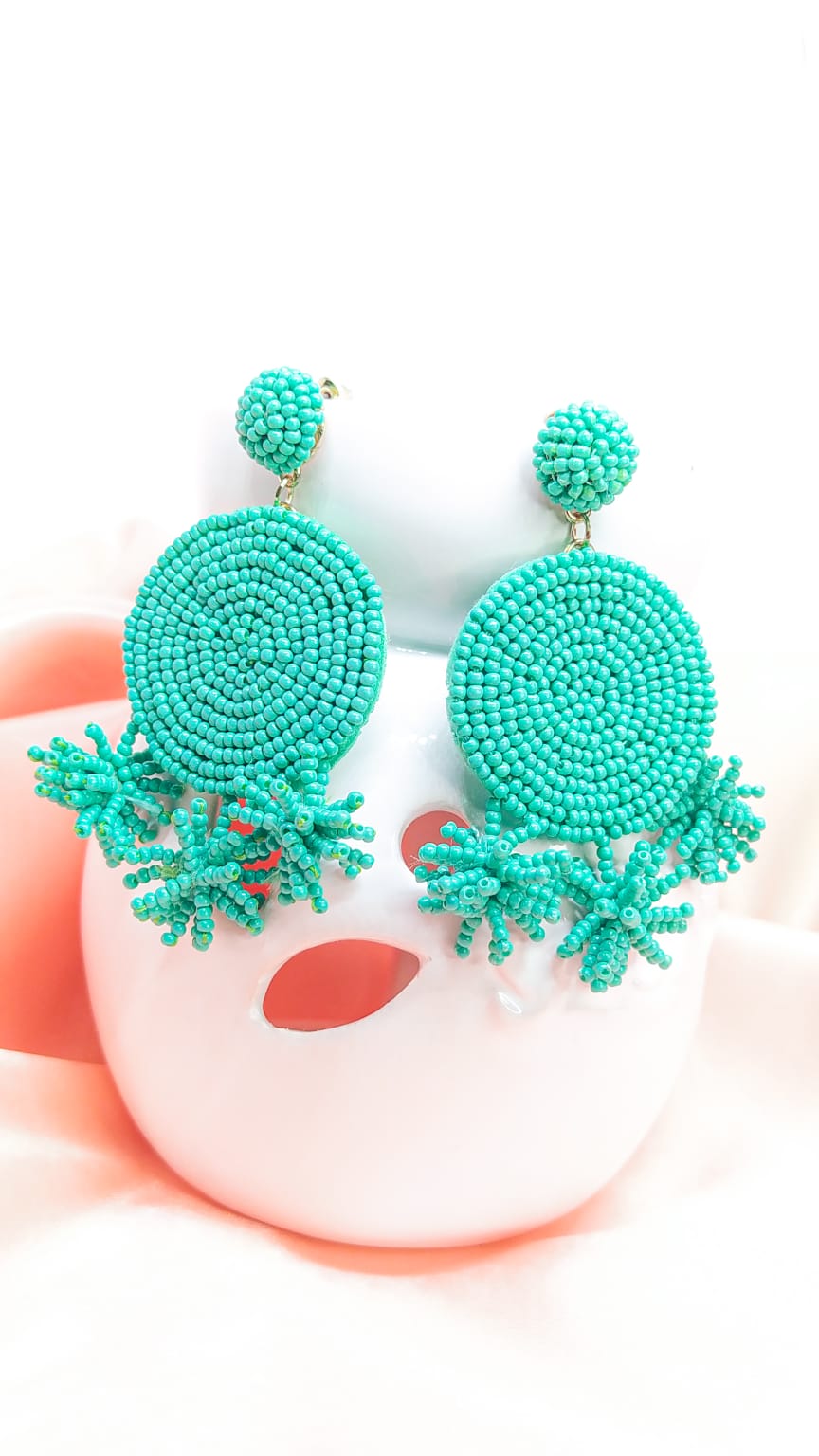 Hermosos aretes elaborado en auténtico acero quirúrgico 316l y doble baño en oro de 18k, con mostacillas venecianas en todo el cuerpo del arete, exclusivo diseño.