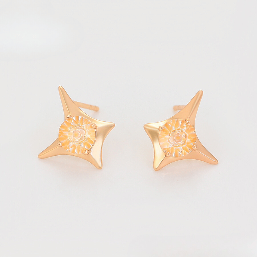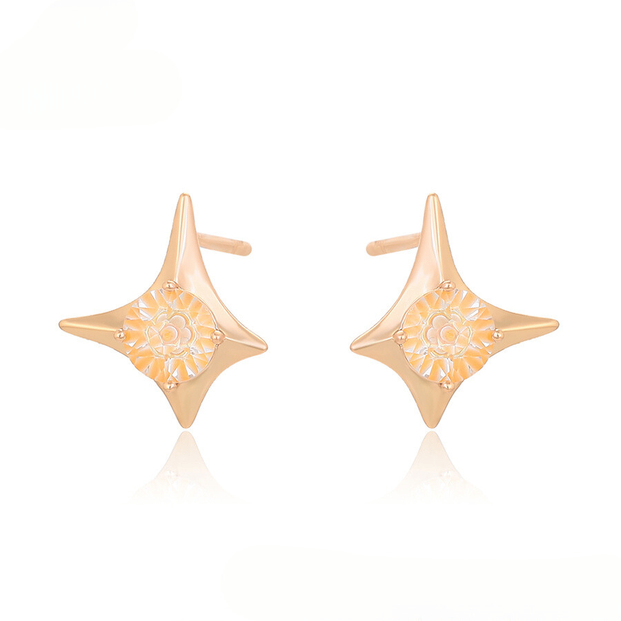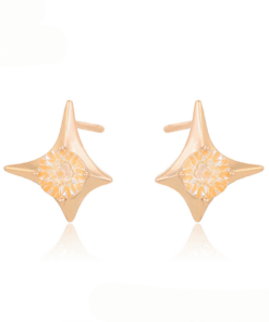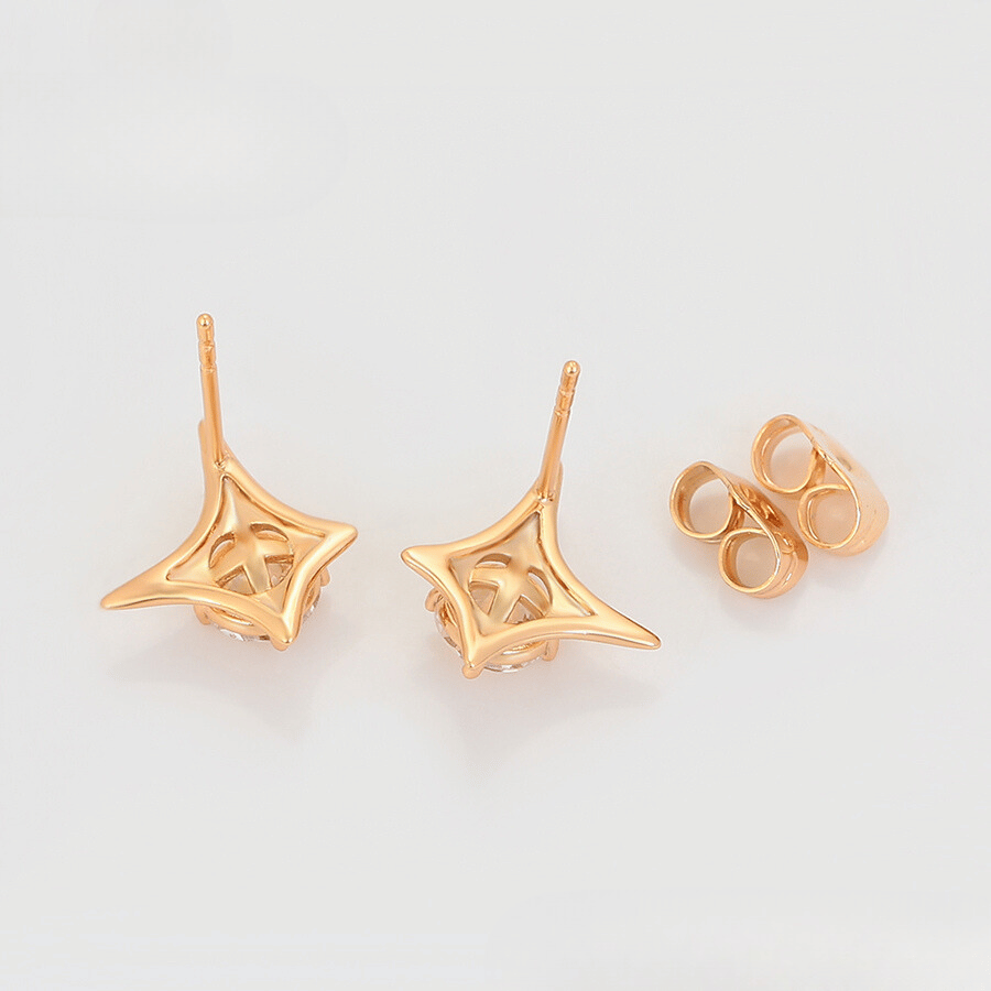 Lindos aretes elaborado en acero quirúrgico, con doble enchape en oro rosé de 18k, e incrustación de cristal.
