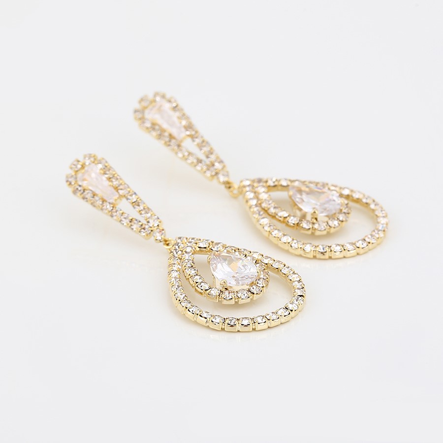 Elegantes y delicados aretes de lujo, elaborado en Acero 316L, con doble baño de oro de 18k, full incrustaciones de cristal swarovski, alrededor de todo el cuerpo del dije, bellísimos!.