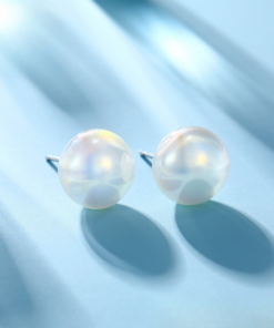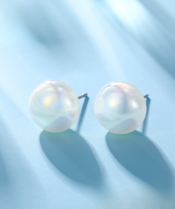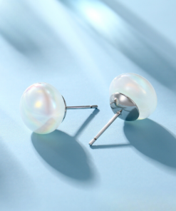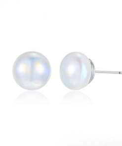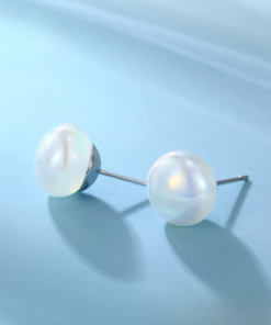 Lindos aretes elaborado en acero quirúrgico 316l, con doble baño de plata 925, con perla botón tornasolado de perla de río cultivada natural, estilo elegante.