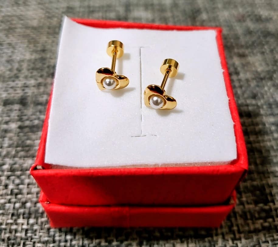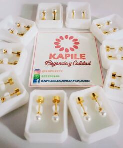 Hermosos aretes elaborado en acero quirúrgico 316l, con enchape de oro de 18k, estilo de seguro tornillo.