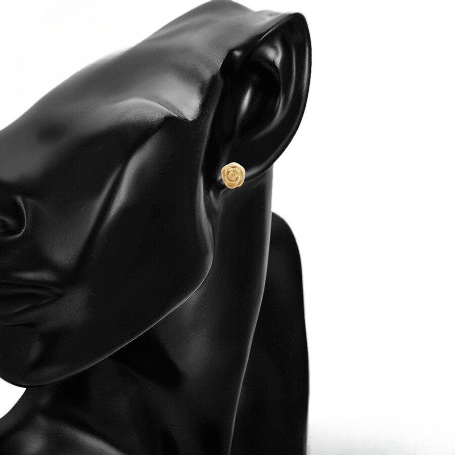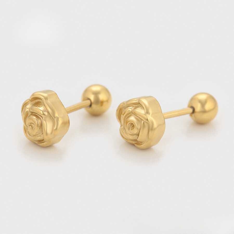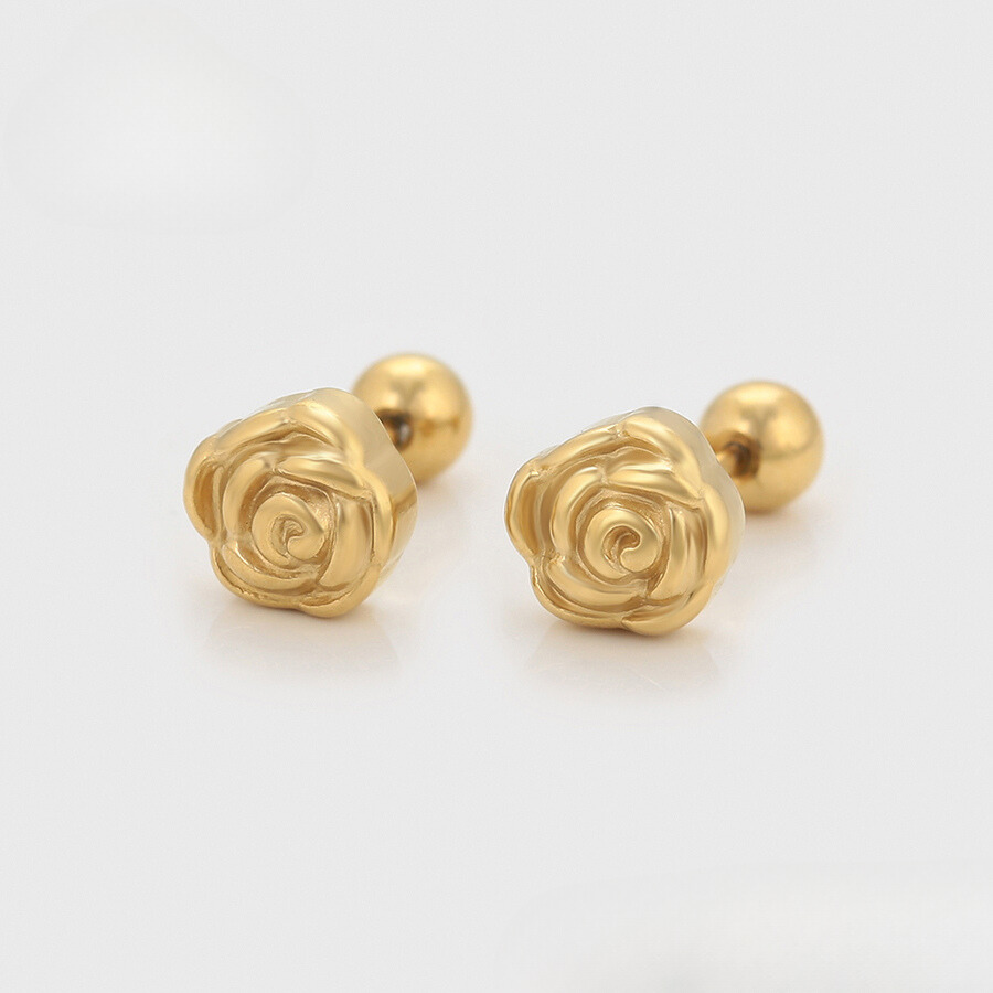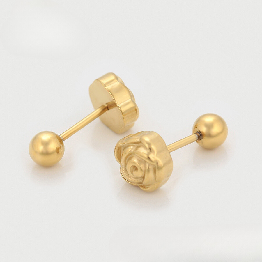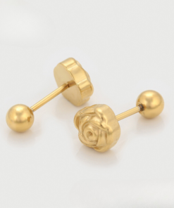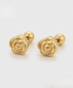 Hermosos aretes elaborado en acero dorado, con doble enchape de oro dorado de 24k, codelo tallado.