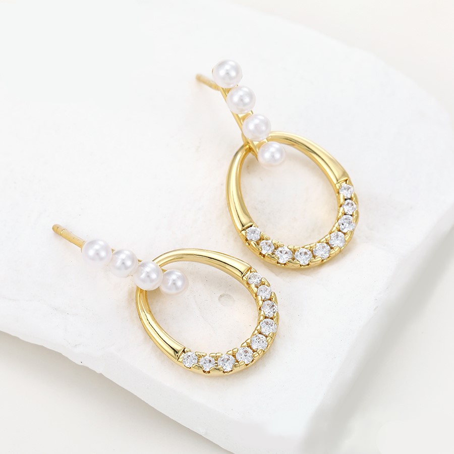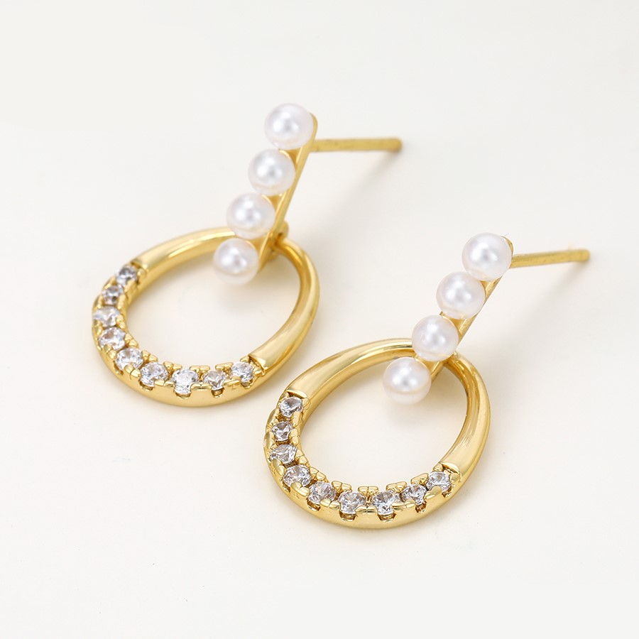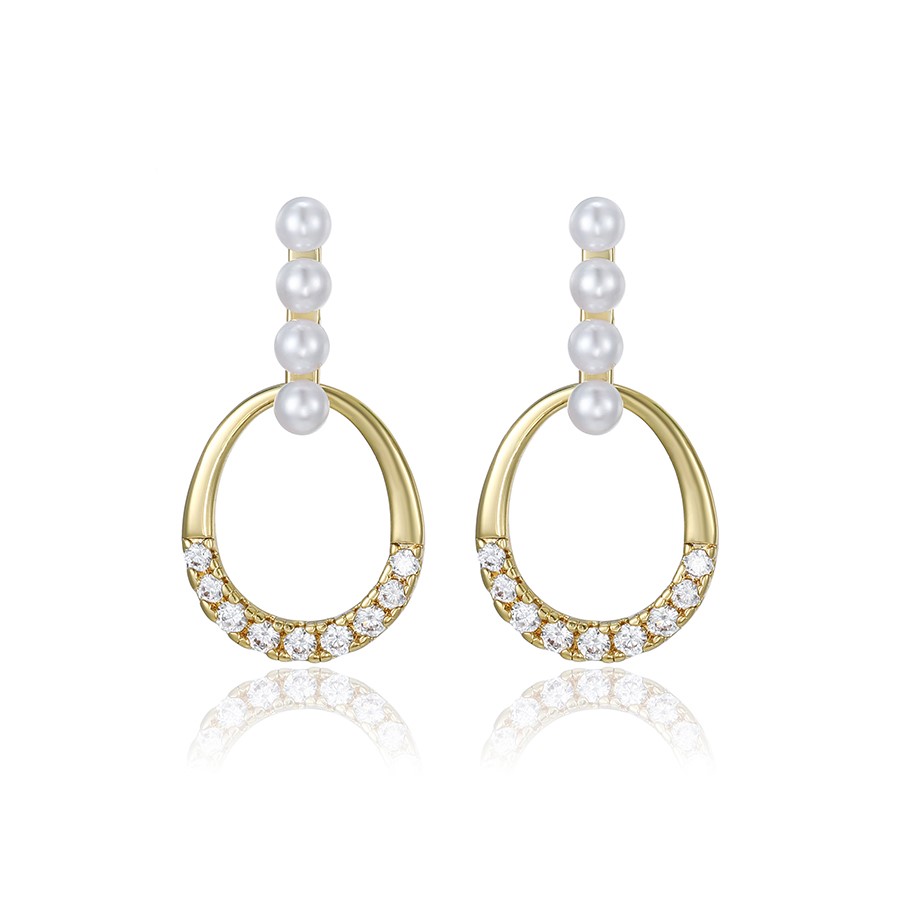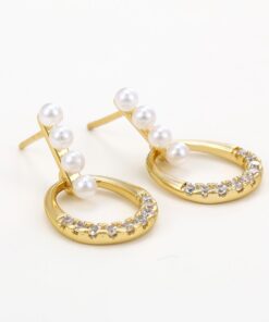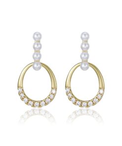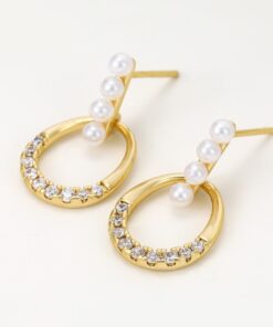 Hermosos aretes elaborado en acero quirúrgico 316l, con doble baño de oro de 18k, e incrustación de cristales y perlas checas.