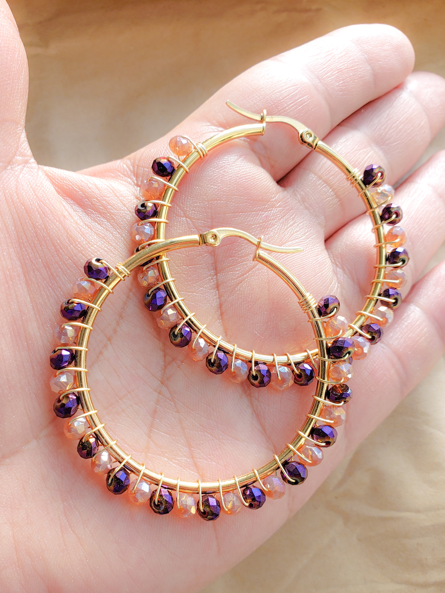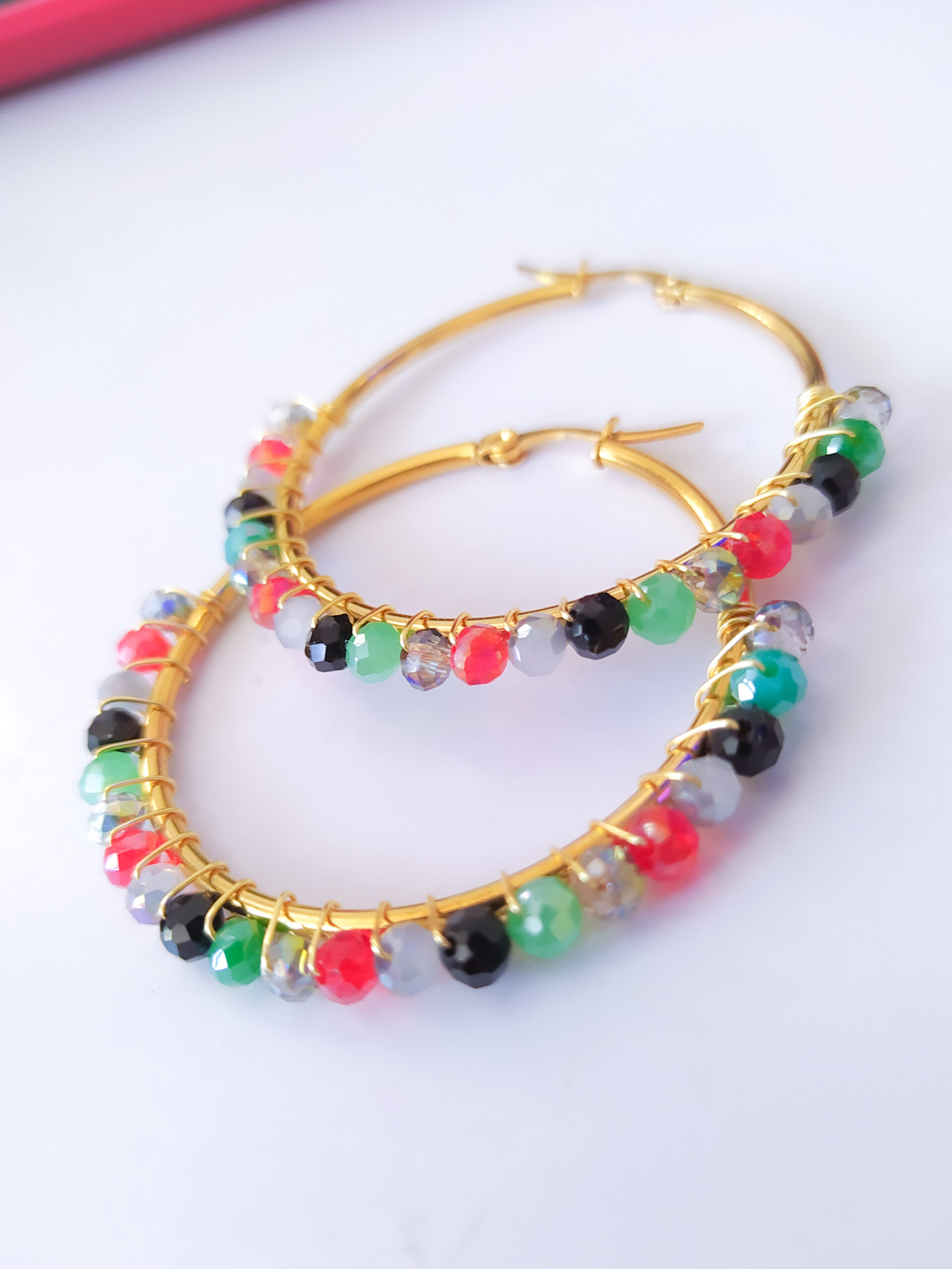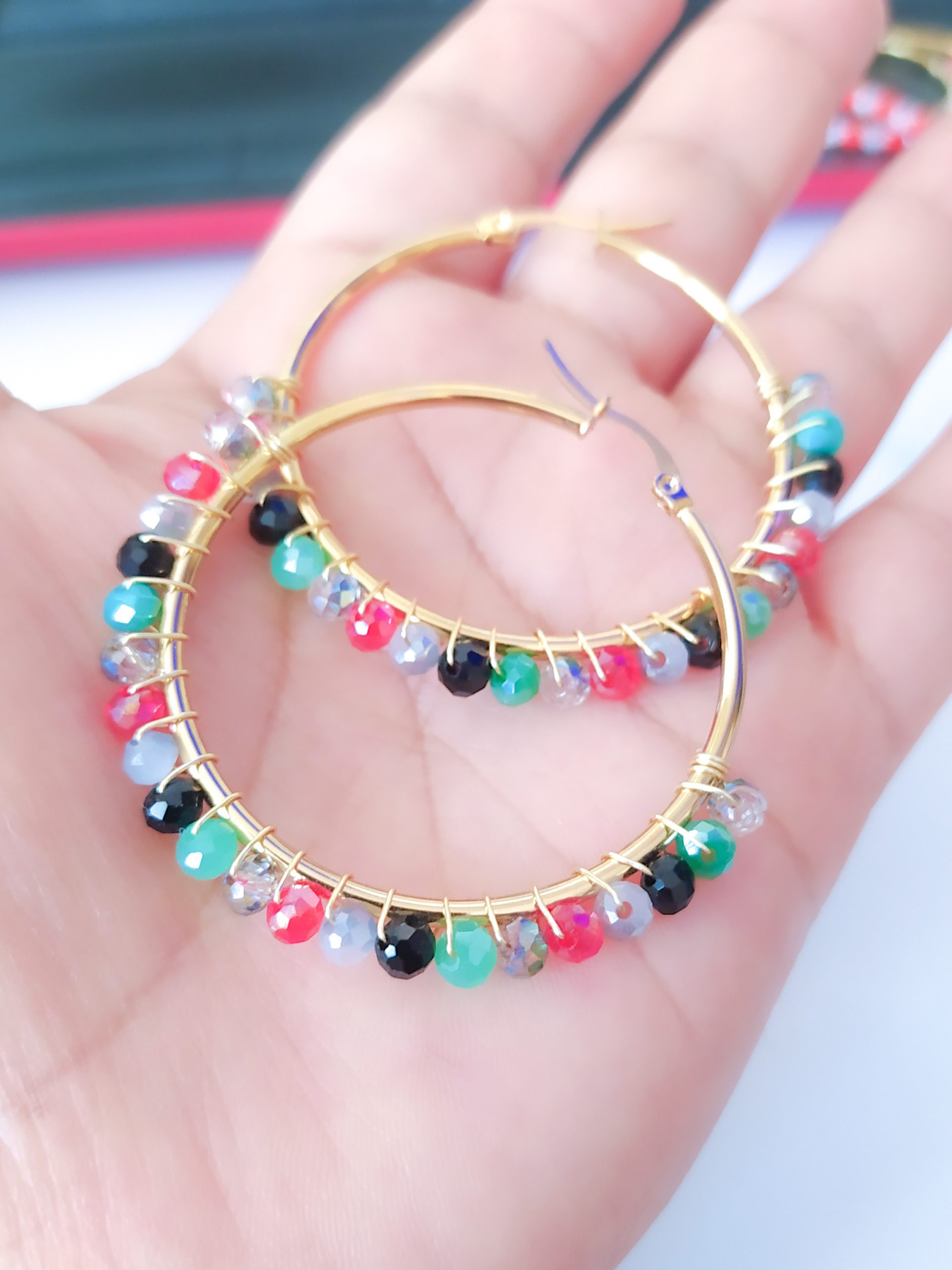 Lindas argollas elaborada en acero quirúrgico 304, tejidos en hilos bañado en oro, de larga duracion waterproof.