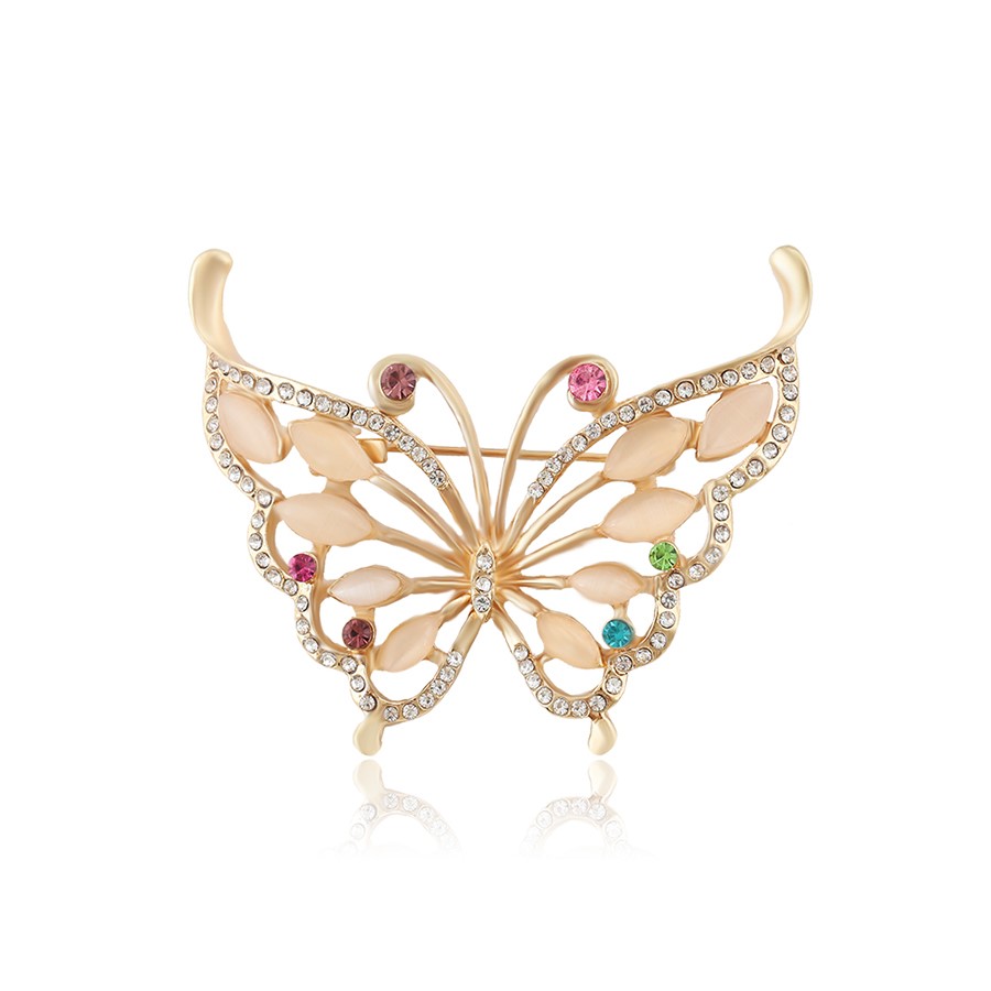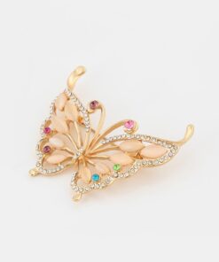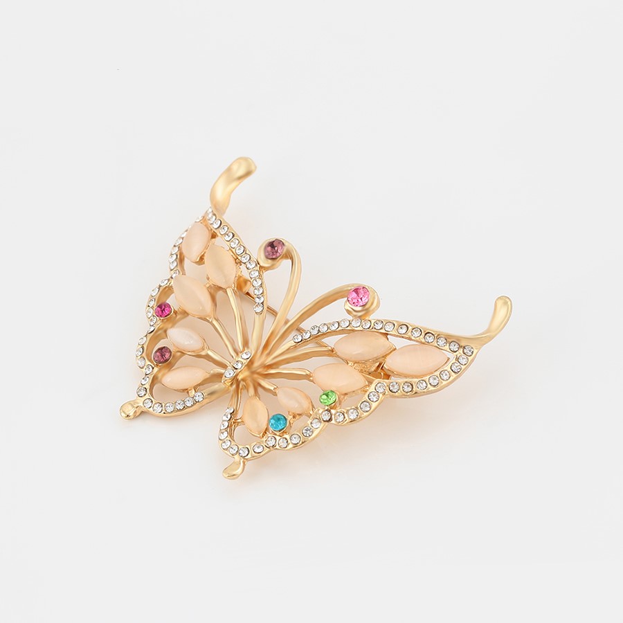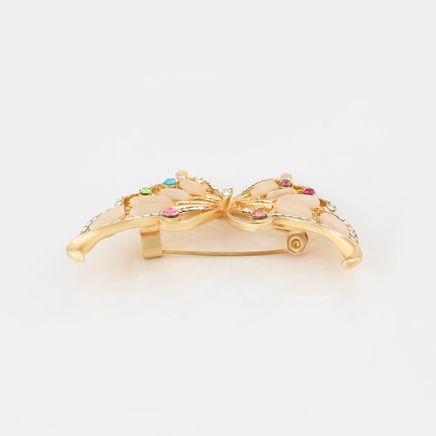 Elegante, fino y bellísimo broche modelo TENDENCIA, elaborado en acero con doble baño de oro rosé de 18k, e incrustación de cristal.